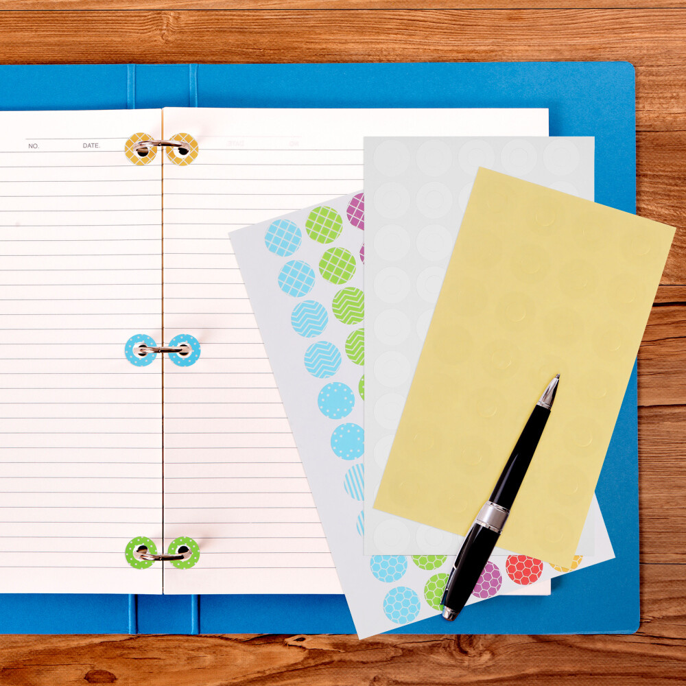 15 Colorful Hole Reinforcer Labels for Office Paper