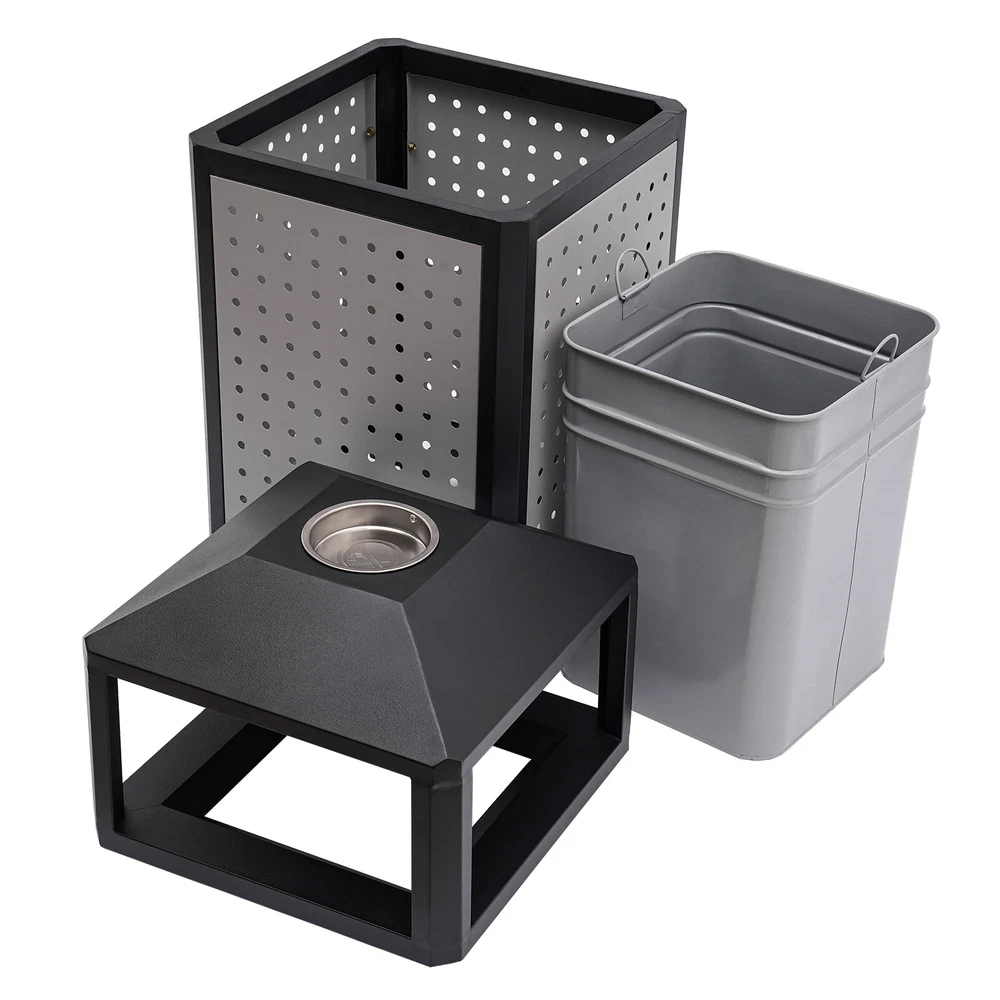 15 Gal Commercial Waste Container Outdoor Trash Can Garbage Enclosure Gray NEW Description The industrial waste container is made of high-quality galvanized sheet material with a smooth, rust-resistant surface for long-lasting durability. Its 15-gallon large capacity design can store more garbage, effectively reducing the pollution of garbage, and is more convenient for garbage cleaning and management. Its modern style and generous appearance design make it blend into the surrounding environment, which is not only practical but also beautiful. It is an indispensable item in modern life and an excellent waste disposal solution for you! Key Features Premium Material: It is made of galvanized board and stainless steel featuring high hardness, high strength, and resistance to rust, corrosion, and heat. Besides, its high-temperature plastic spray and bake paint processes provide extra protection to its surface, greatly extending its service life. Exquisite Appearance: Its modern style appearance will show you the beauty of simplicity and neatness, making it also a good view on the street or in your backyard garden. Large Capacity: Its 15-gallon capacity can hold more trash and greatly reduces the number of times you have to clean out your trash, which helps you save time and be more productive. Easy to Install: Its most parts are well assembled, you just need to put the inner barrel in and install the lid and fix it on the ground with four expansion bolts, which will not cost you much time. Ventilate Design: The great number of ventilated holes and grid-style bottom provide it with a wonderful ventilation condition to dispel the odor generated by garbage and reduce bacterial growth. Convenient to Use: Its four-sided wide-opened mouth(10.5*6.5 inches) can swallow your garbage from each side you throw, which is very convenient. Easy to Clean: Its smooth surface, detachable lid and inner barrel make the clean work easy and labor-saving with water flushing or wiping it with a damp cloth. Customer Service: We aim to provide quality products and services. If you have any problems, please feel free to contact us. We will reply and solve the problem for you as soon as possible. Details Build-in Ashtray: The stainless steel ashtray is on the top of the lid and is strong, durable, and fireproof. It well meets the needs of the smoking crowd and also reduces the occurrence of fire accidents. Top Cover: It helps to protect against rain and snow, thus preventing odors from being aggravated by wet garbage and reducing sweeping pressure. Inner Barrel with Handle: With two handle rings, you can easily lift it out for cleaning or dumping garbage. Elevated Base: It separates the inner barrel from floors, pests, and dust and reduces the abrasion that can occur when in contact with hard surfaces. Application It can be used in conference rooms, banquet halls, restaurants, hotel lobbies, outdoor patios, cafes, recreation and picnic areas, corporate and college campuses, boardwalks, tourist attractions, and other high-traffic outdoor and indoor locations. Specifications Color: Grey Material: Galvanized Board, Stainless Steel Surface Treatment: High-Temperature Plastics Spray, Bake Paint Recommended Uses For Product: Outdoor Shape: Square Mount Type: Screw Mounted Assembly Required: Yes Capacity: 56.78L/15gal Product Size(W*H): 40.64*84.46cm/16*33.25inch Side Opening Size: 26.67*16.51cm/10.5*6.5inch Packaging Size: 86*41*41.5cm/33.86*16.14*16.34inch Gross Weight: 12kg/26.46lbs Net Weight: 11kg/24.25lbs Package Included 1* Industrial Waste Container 4* Expansion Bolts Notes 1.Please check the size carefully before ordering. 2.It is normal that the expansion screw will blow up after the force is applied. 3.Please allow the slight color difference caused by the shooting light and 1-3cm error due to manual measurement, and make sure you do not mind before you order.
