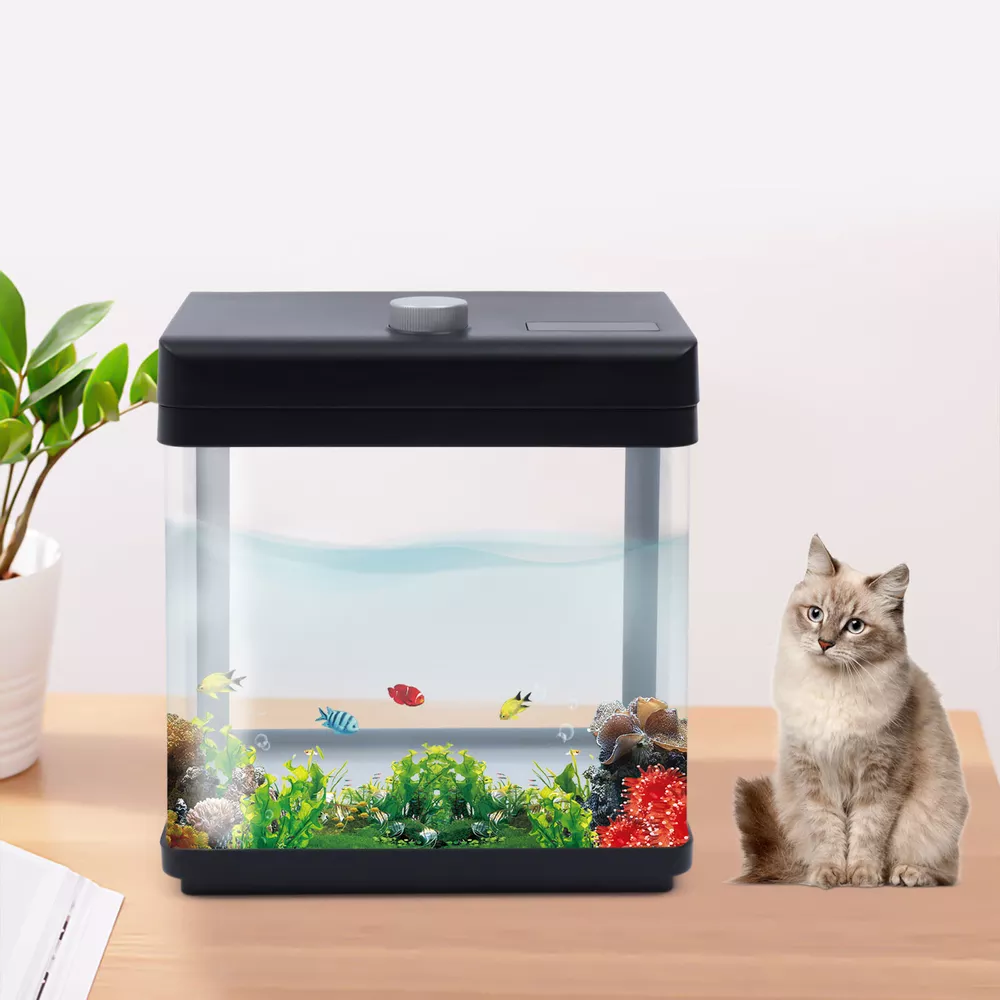 1.5 Gallon Aquarium Kit Fish Tank Black Low Noise Bedroom Desktop Fish Tank 5V 1.5 Gallon Fish Tank Mini Aquarium Kit W/High Efficiency Filter Desktop Fish Tank 1.5 Gallon/Mini Aquarium/Fish Tank /Fish Tank Kit/Black Rectangular 7 Dimmer LED Lights Upper Circulation Filtration System--High-efficiency Filtration ABS Material-- Non-toxic and Harmless /Good Light Transmission Water Temperature Display--Sensitive Temp Probe Submersible Pump--Low Noise Removable Sponge--Easy to Clean Living Room, Corridor, Entrance Hall, Study, Dining Room, Bookstore Multiple Lighting Options: This small fish tank is equipped with LED, with seven different light colors for you to choose from. You can rotate the button to adjust the color according to the needs of the scene, which is nice and convenient. Energy-saving: Since this small fish tank comes with power-saving, high-brightness LED lights, it will bring you visual enjoyment while not consuming electricity. High-efficiency Filtration: Wide and deep filtering sink can accommodate more filter materials, helps increase the filter area, and achieve efficient filtration. About this item T his is a small fish tank with an upper circulation filtration system and a variable seven kinds of LED lights. It is made of high-quality ABS material, which is hard and durable with long service life. The glass has a good light transmission and beautiful curvature to extend your visual enjoyment. This small fish tank is ideal for home use or as a gift for a friend! Key Features Good Material: This small fish tank is made of high-quality ABS material, which has strong impact resistance and corrosion res istance . And it has good light transmission, and environmental protection , and is non-toxic and harmless to fish. Bringing Visual Pleasure: The small fish tank is made of high-quality clear glass, which provides an excellent viewing experience with panoramic viewing to capture fish dynamics. Ideal Gift: This small fish tank is delicate, adding a sense of sophistication and happiness to life. You can send it to your kids, classmates, friends, colleagues, and family for festival days or birthday parties. Customer Service: We aim to provide quality products and services. If you have any problems, please feel free to contact us. We will reply and solve the problem for you as soon as possible. Specifications Removable Sponge : There is a filter layer design in the top layer of the small fish tank. If the sponge layer is dirty, you can take it out and clean it directly. It can be used for recycling. Adding Liveliness: The fish is alive and comes from nature. With a welcoming fish tank in your home, it can add vigour to your home as if your home is nature. LED Lights : LED lights are installed inside the small fish tank, with high brightness and low energy consumption, illuminating the wonderful water world. Rain Shower Water Outlet : The rain shower water outlet helps with reducing the sound of water flow, contacting the filter material evenly, and cultivating bacteria effectively. Dimmer Button : You can rotate the button to adjust the brightness of the light and change seven colors to get a beautiful light effect . Water Temperature Display : The top of the small fish tank has a water temperature display, you can keep an eye on the dynamics of the fish tank. If the temperature is too high you can change the water in time to protect the ecological health of the fish tank. Sensitive Temp Probe : Sensitive temp probe can accurately sense the water temperature in the fish tank. Submersible Pump : It adopts a high-efficiency and energy-saving submersible pump with low noise when energized, providing you with a comfortable and quiet environment. Specification Material: ABS, Glass Color: Black Capacity: 1.5 Gallon Water Pump: 110-220v Power Supply: 5V Light Source: LED Shape: Rectangular Gross Weight: 2.25kg/4/96lbs Net Weight: 1.4kg/3.09lbs Package Size: 28*19.5*33cm/11.02*7.68*13inch Product Size: 22*14.5*24.5cm/8.7*5.7*9.6inch Package Included 1 *Small Fish Tank 1 *Submersible Pump Kit 1 *Cotton Filter Cartridge 1 *Charging Adapter Notes Please note that the metal probe must be submerged in the water. We suggest you replace the filter cartridge every 3-4 weeks. Please allow the slight color difference caused by the shooting light and 1-3 cm error due to manual measurement, and make sure you do not mind before ordering. Payment Delivery details Terms of sales About us Contact us Payment We accept ebay payment 。 Fees such as import duties, taxes are not included in the item price or shipping costs. These charges are the buyer's responsibility. Delivery details Shipping: 2-9 working days to: USA Terms of sales We maintain high standards of excellence and strive for hundred percent customer satisfaction. Feedback is very important to us. We hope that you contact us immediately before you give neutral or negative feedback, so that we can address your concerns. It is impossible to address issues if we do not know about them! About us Your satis faction is our ultimate goal. We work hard to earn your trust and future business. Our certified technicians have tested each item before shipping. The unit comes with 1 year limited warranty on all manufacturing defects. a) If you receive a defective item, you may return it or ask for a discount. Please contact us within 14 days after you receive the package. b) What you returned must be intact and in its original packaging as re? u. Customer is responsible for shipping costs of the returned item. c) We will cover the cost of shipping back t with the shipping rate indicated in the registration page. We will send you a new unit or refund the full payment you paid. Thank you. Contact us Business Hour Business Hour: Monday To Friday: 8:30 AM to 5:00 PM (Beijing China time) Due to time zones, our reply to your questions may not be immediately. But within above working time, we will reply your email within 24 hours. If it's non-workdays, please kin