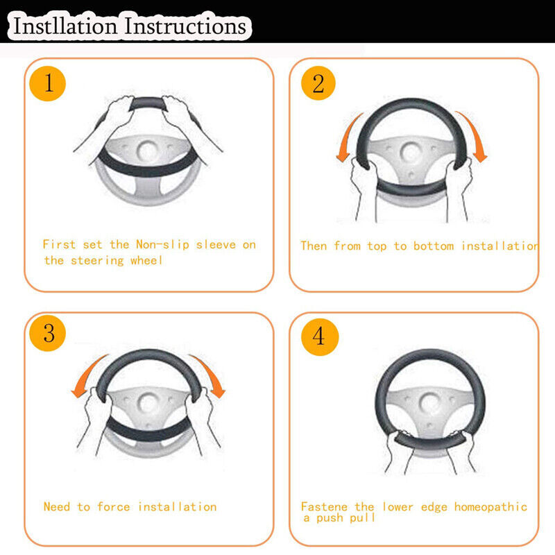 Descriptions: Material: Carbon Fiber, Leather Universal Fit: 14.5-15"& 37-38cm Round steering wheel Color: Black Feature: Anti-slip cover make you feel good when driving, protect your steering wheel from damage. Package included: 1x Steering wheel cover