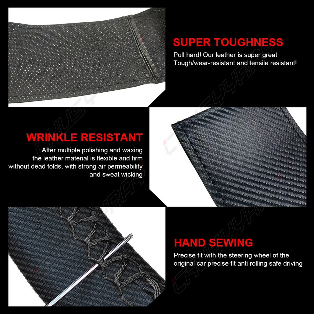 Specification 100% brand new Hand Sewing Steering Wheel Cover Style: Four Seasons Soft, anti-slip, comfortable feeling Material: High Quality Genuine Leather Size: fit 37-38cm Color: Black Fit Compatible:Almost 90% car models with 37-38CM outside diameter steering wheel Note: We can't not 100% sure if this item can fit your car, so, please kindly measure the diameter of your car steering wheel. If it is 37-38cm, this item can fit it. Features 1.Sewing it by yourself with thread and needle, enjoy DIY pleasure! 2.Provide extra comfortable feeling all round steering wheel. 3.Offer unique decoration for your car 4.No unpleasant smell. 5.No quarantine/customs problem. Included 1x Steering wheel cover 1x Thread and needle tool set Contact us: If the product is not suitable or there is a quality problem, please contact our customer service directly to solve the problem. We will give you a satisfact. On Feb 25, 2025 at 00:58:34 PST, seller added the following information: