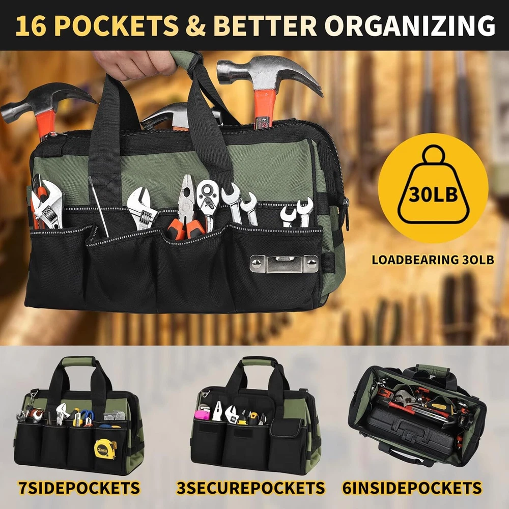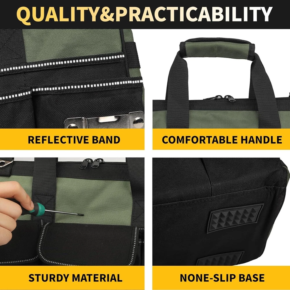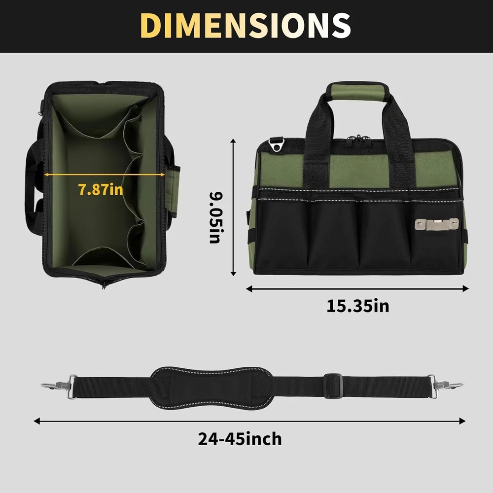 High-Quality Oxford Cloth: The tool bag is made of two double high-quality Oxford cloth which provides toughness, strength, resistance to dirt, and long-lasting durability.The stitching of the tool kit is even and dense, make the tool storage sturdiness and rock-solid, deduct the risk of coming apart during regular use or when stuffed with heavy tools.The zippers glide easily, without any hitches or jams, the pull tabs are firmly attached, ensuring smooth access you open or close the bags. Tool Bag,15"Heavy Duty Tool Storage Bag w/25-Pocket,Wide Mouth Tool Tote w/Soft High-Quality Oxford Cloth: The tool bag is made of two double high-quality Oxford cloth which provides toughness, strength, resistance to dirt, and long-lasting durability.The stitching of the tool kit is even and dense, make the tool storage sturdiness and rock-solid, deduct the risk of coming apart during regular use or when stuffed with heavy tools.The zippers glide easily, without any hitches or jams, the pull tabs are firmly attached, ensuring smooth access you open or close the bags. Storage Capacity: This tool bag is a treasure for tools. It has 25 pockets of various sizes, fitting tools from screwdrivers to large power drill bits or heavy wrenches.The pockets are positioned out and in the tool bag to ensure tools staying in place and can be identified soon. With the magnetic wristband together, Whether you're doing a electrical repair, woodworking, or plumbing fix, the right tool is always within reach, good storage potential, make it an essential for any job site. Special Designs??This tool bags have sturdy apex handle that provides a comfortable grip, with an adjustable 45-inch shoulder strap to fit men of various heights. The bottom of the bag features four rubber non-slip feet to enhance stability and prevent movement at various work sites, including construction sites, electrical work, plumbing jobs, HVAC services etc.Tactical reflective stripes make it easy to locate in low-light, enhancing your safety and reducing the risk of mishaps. Widely Use: our tool bags are loved by different people, from carpenters, electricians, wire strippers, plumbers, mechanics to DIY enthusiasts. Also, it??s a must for diverse sites, like construction sites, home renovation, auto repair garages, plumbing work areas, electrical installation sites, woodworking places, telecommunication equipment rooms, gardening workplaces, shipyards, railway maintenance sites,art studios, HVAC installation, power equipment service, furniture manufacturing etc Practical Gift: This tool storage organizer is a best practical gift for carpenters, electricians, plumbers, and mechanics, new dads assembling baby essentials, as well as retired elders into gardening and home repairs, would all cherish it. It's perfect for presenting on Father??s Day to show gratitude to dads, Labor Day to honor hardworking workers, Christmas for DIY-loving friends, when friends or family move into new houses, or on birthdays of those with a knack for hands-on projects. High-Quality Oxford Cloth: The tool bag is made of two double high-quality Oxford cloth which provides toughness, strength, resistance to dirt, and long-lasting durability.The stitching of the tool kit is even and dense, make the tool storage sturdiness and rock-solid, deduct the risk of coming apart during regular use or when stuffed with heavy tools.The zippers glide easily, without any hitches or jams, the pull tabs are firmly attached, ensuring smooth access you open or close the bags. Storage Capacity: This tool bag is a treasure for tools. It has 25 pockets of various sizes, fitting tools from screwdrivers to large power drill bits or heavy wrenches.The pockets are positioned out and in the tool bag to ensure tools staying in place and can be identified soon. With the magnetic wristband together, Whether you're doing a electrical repair, woodworking, or plumbing fix, the right tool is always within reach, good storage potential, make it an essential for any job site. Special Designs??This tool bags have sturdy apex handle that provides a comfortable grip, with an adjustable 45-inch shoulder strap to fit men of various heights. The bottom of the bag features four rubber non-slip feet to enhance stability and prevent movement at various work sites, including construction sites, electrical work, plumbing jobs, HVAC services etc.Tactical reflective stripes make it easy to locate in low-light, enhancing your safety and reducing the risk of mishaps. Widely Use: our tool bags are loved by different people, from carpenters, electricians, wire strippers, plumbers, mechanics to DIY enthusiasts. Also, it??s a must for diverse sites, like construction sites, home renovation, auto repair garages, plumbing work areas, electrical installation sites, woodworking places, telecommunication equipment rooms, gardening workplaces, shipyards, railway maintenance sites,art studios, HVAC installation, power equipment service, furniture manufacturing etc Item Specifics Type Tool Bags Brand SIUTCO Item Weight 2.5 Pounds About us Dear buyer, Thank you for visiting my store! Our warehouses are located in many regions around the United States. According to the customer's delivery address. Use USPS/UPS/DHL logistics transportation service. Prioritize the best quality logistics solutions to transport packages. Ensure package delivery time, At the same time. Have any after-sales problems, Feel free to contact us. At your service Payment PayPal is our preferred method of payments it's the quickest, easiest and most secure way to pay for your goods or services online. PayPal offers buyer and seller protection should there be a problem. If you do not have a PayPal account, to get started and buy your first item with us is very easy. Simply click on the 'Buy It Now' button and follow the eBay checkout steps. Select PayPal as the payment method you then will be given the chance to enter your card details in to PayPal's secure checkout in 