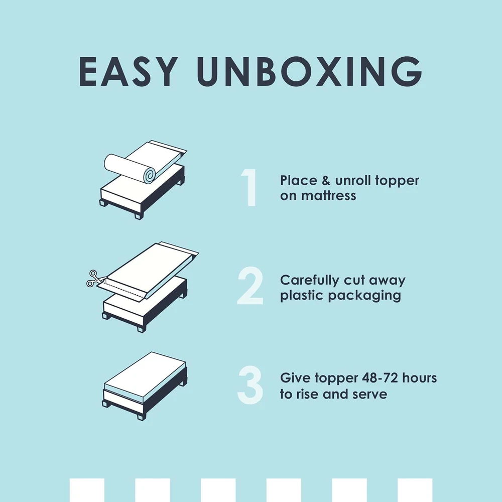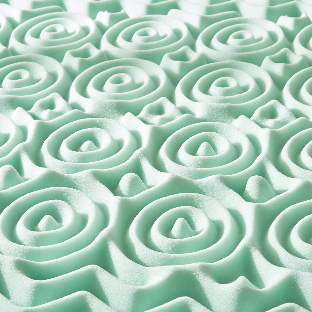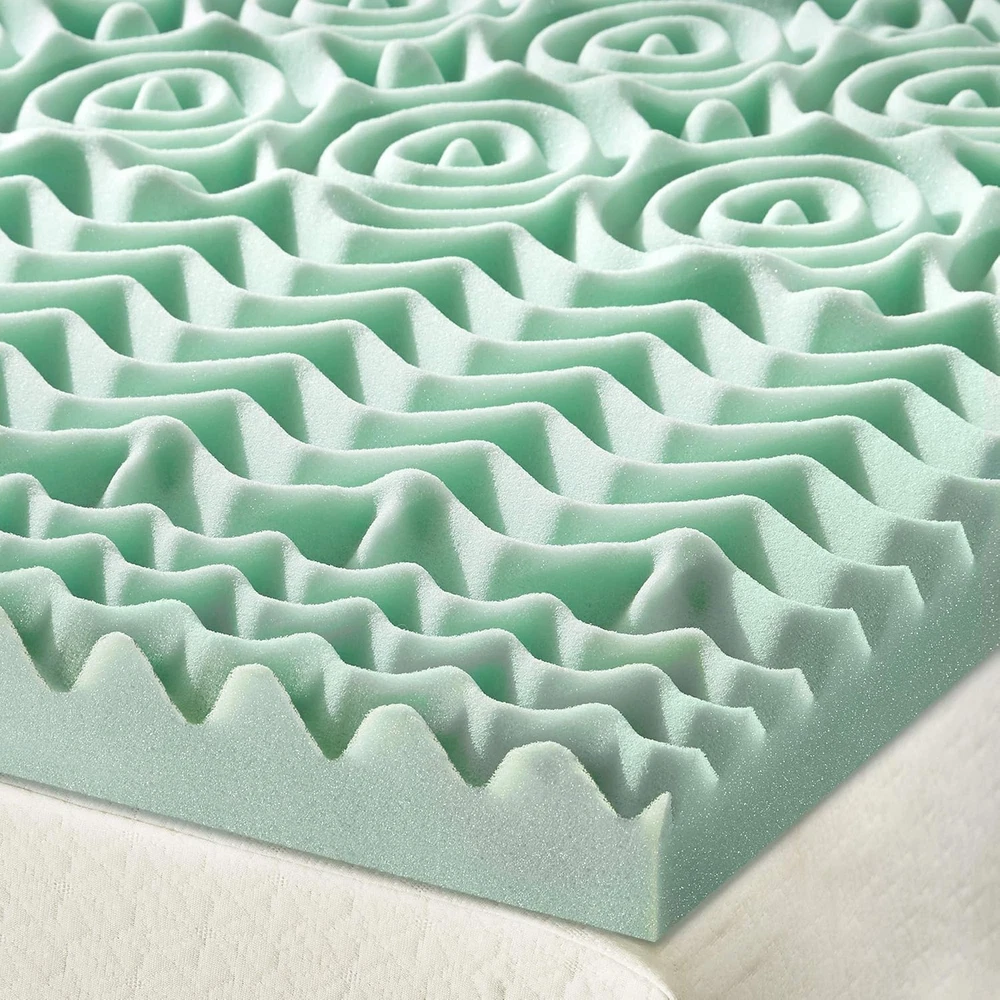 Memory Foam 1.5 Inch Breathable Memory Foam Pad with 5 Body Zone Layer for Maximum Comfort Multiple Points of Contact Prevent Tossing and Turning for Enhanced Sleep Quality Aloe-vera Infused Memory Foam Layer Promotes Calming and Relaxing Sleep Made with Premium Quality CertiPUR-US Certified Memory Foam Product Dimension: (L) 79 inches x (W) 59 inches x (H) 1.5 inches (3 year manufacturer warranty) Best Price Mattress' New 5-zone Aloe Vera bed topper is a 1. 5 inch CertiPUR-US certified, premium memory foam mattress topper instantly revamps old mattress for maximum comfort and better sleep. Product features a 5 Body zone with different points of contact to prevent tossing and turning. Its breathable memory foam layer is also infused Aloe Vera for caming and relaxing sleep while helping to keep mattress fresher.