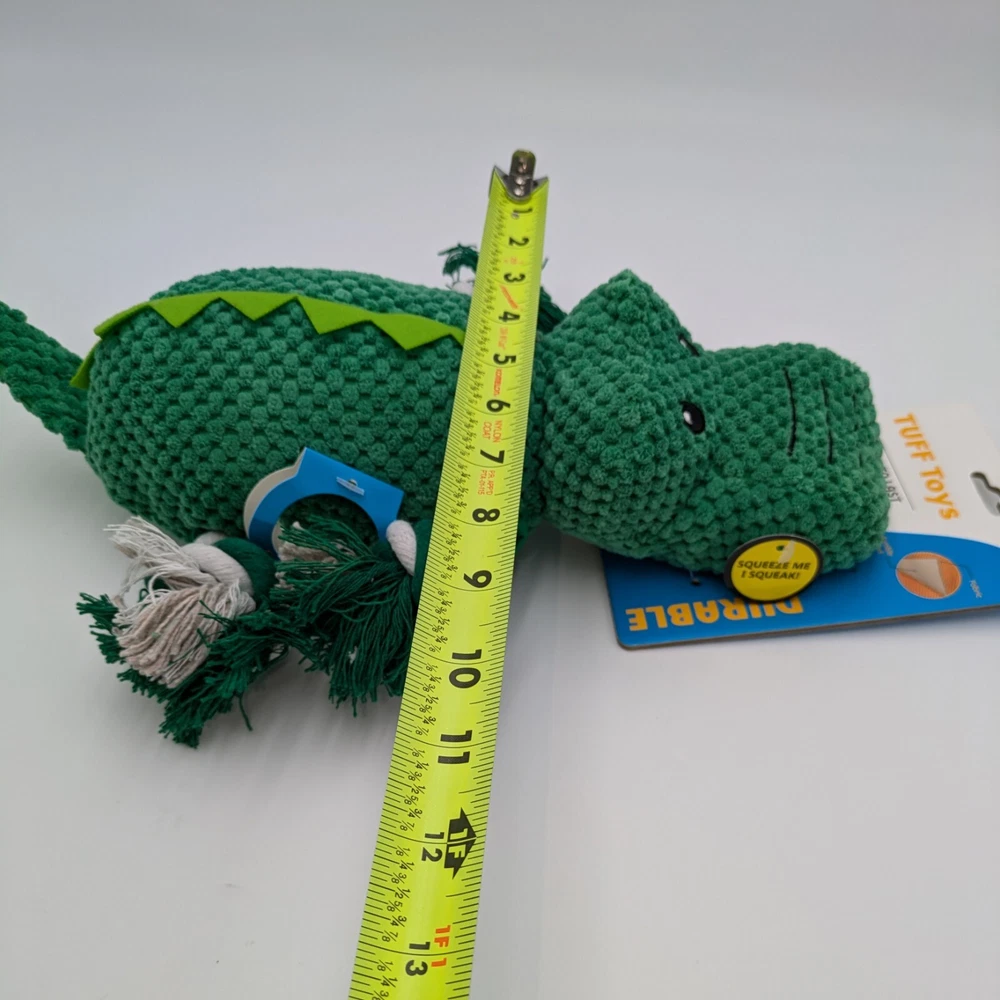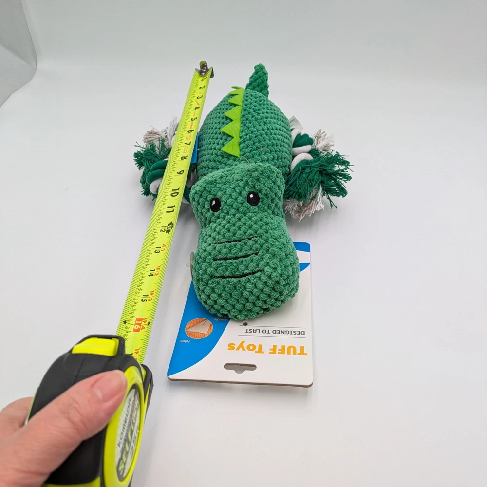 This 15-inch alligator dog toy is perfect for interactive play with your furry friend. Made with durable rope material, it is designed for large and medium-sized dogs. The toy comes with tug ropes for added fun and is brand new. The alligator design is sure to catch your dog's attention and provide hours of entertainment. Made in China, this interactive toy is a great addition to your dog's toy collection. Ideal for playing with your supervision this toy is sure to keep your dog happy and healthy.