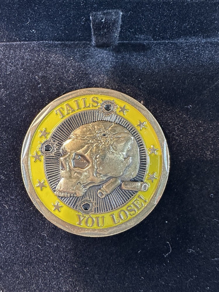 This Army challenge coin measures 1.5 inches and features the phrase "Heads We Win; Tails You Loose." It is an original item and falls under the category of militaria collectibles. The coin is in excellent shape and is a great addition to any collection.