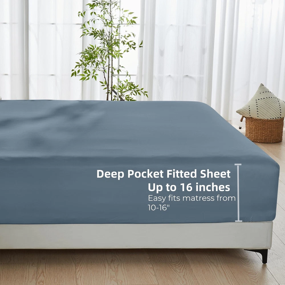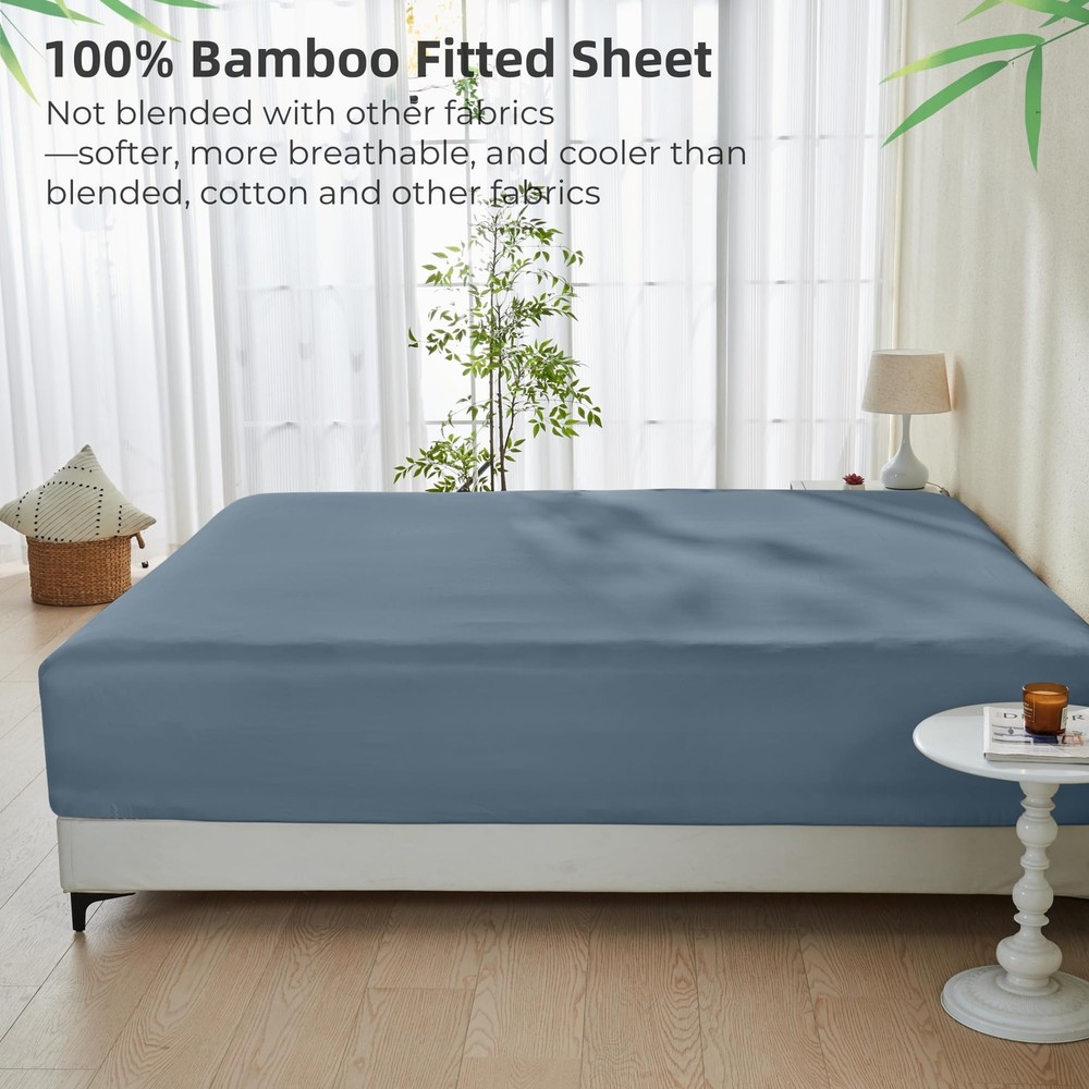Fitted Sheet Only - 15 Inch Pocket Bamboo Rayon Fitted Sheet, Super Soft and Cooling Bottom Sheet with 4 Elastic Corner Straps(Blue, Twin Size) Imported 100% Rayon Derived from Bamboo REDEFINE YOUR SLEEP - Experience the comfort and cooling with our fitted sheet only. Super soft, silky and breathable, it supports a peaceful night's sleep like no other STAY IN PLACE - Soft fitted sheet is designed with 4 elastic corner straps and 360 degrees elastic strap which will perfectly stay in place. 4 elastic bands are made with a combination of polyester and spandex UPDATE YOUR LIFESTYLE – Fitted sheet crafted with precision, it boasts a high 300 thread count and exceptional moisture-wicking properties. Perfect for health-conscious and hot sleepers