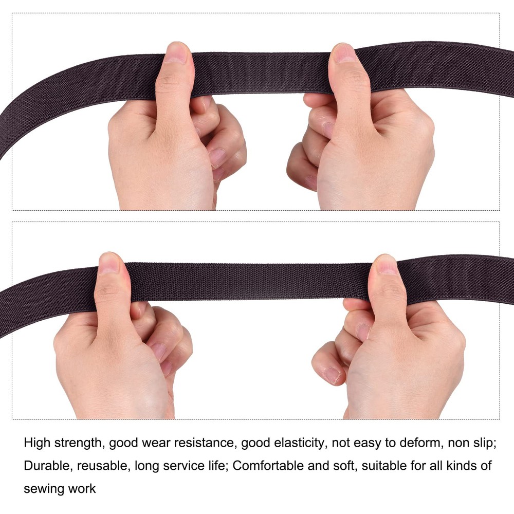 Elastic band, with good elasticity, is mainly used for various sewing, such as sewing pants, T-shirt, skirts, dresses, etc. It can also be used for headbands, wigs, waistband, etc. Elastic band, is in size of : 38mm/1.5-inch width, 4 yards total length, 2mm/0.08-inch thickness High strength, good wear resistance, good elasticity, not easy to deform, non slip; Durable, reusable, long service life; Comfortable and soft, suitable for all kinds of sewing work Steps of installation: 1. Select the elastic band with appropriate size; 2. Cut to the desired length; 3. Used for various sewing and craft DIY projects Please pay attention to the proper size of the elastic band, especially the width of the elastic band