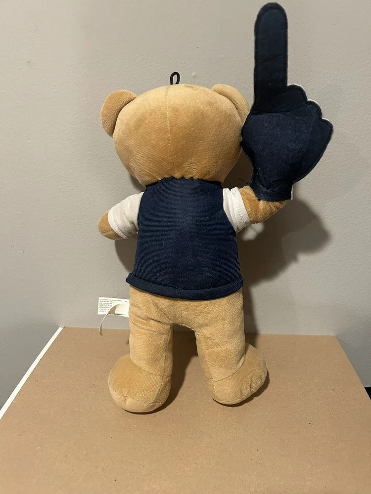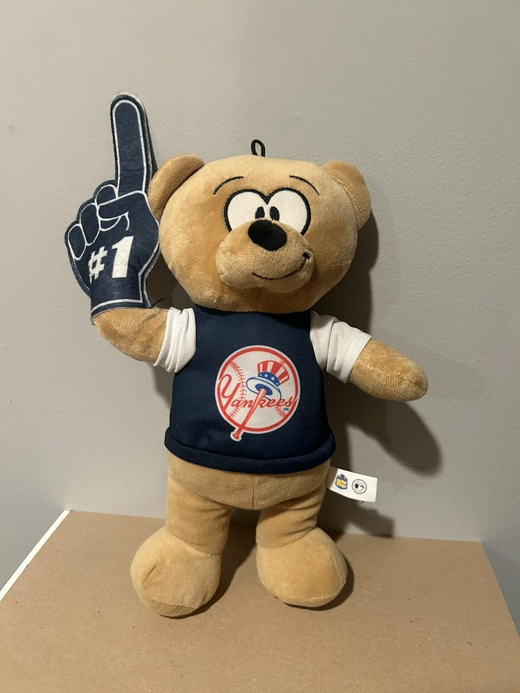 Show your support for the New York Yankees with this 15" plush figure. The bear is dressed in a Yankees uniform and comes with a foam finger to cheer them on. This officially licensed product is perfect for any fan of the team, and makes a great addition to any sports memorabilia collection. The bear is made by Good Stuff and is of high quality. It is suitable for one size and is designed in the team's colors of blue. This plush figure is a must-have for any fan of the New York Yankees, and is sure to be a hit with fans of all ages.