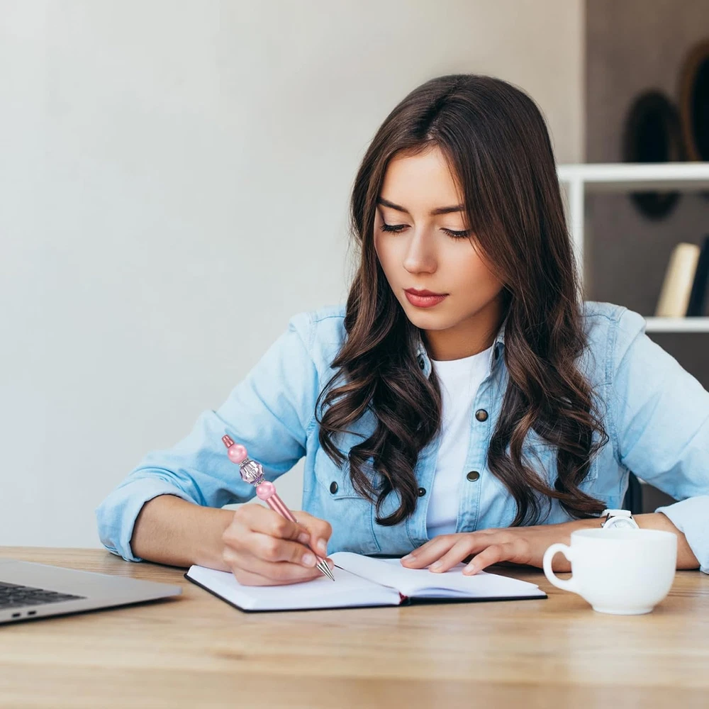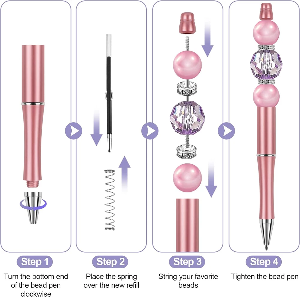 🖌️SET OF 15 BEADABLE PENS BULK: You will receive 15 pcs pearlescent ballpoint pens in different colors, each bead pens comes with matching black ink refills. The beaded pens come in various vibrant colors to meet your daily replacement needs, and you can also share them with your family and friends. Beadable pens bulk colors are blue, black, coffee, red, green, silver, purple, light blue, pink, gold, glacier silver, blush pink, bright blue, rose gold, and lake blue (Warm tips: our beading pen does not include beads.). ✏️HIGH-QUALITY MATERIAL: The shell material of these pens is high-quality plastic, the pen body is about 5.63in long, lightweight and sturdy, easy to carry around, and you can put it in your pocket, purse, or bag. The penholder is smooth to the touch, colorfast, and durable. Our beadable pens write smoothly, the ink is even and quick-drying, won't stain paper or hands, perfect for writing, signing, taking notes, etc., and can be used in schools, offices, and business receptions. 🖍️DIY CREATIVE PEN: This colorful beadable pens bulk has a stainless steel medium rod, about 2.09in long and 0.07in diameter, and fits most bead holes. The ends of the stainless steel medium rod are connected with threaded swivel connections for easy DIY creation. You can use your imagination to string your favorite beads for pens, DIY a unique shape to show your personality and have a signing pen that is different from others. 🖋️EASY TO USE: Beadable pens are designed to open and close the pen by rotating the pen body left and right, which is easy to use and allows you to get rid of the worry of losing the pen cap. When you need to replace the refill in daily use, you only need to rotate the bottom to take out the refill, and then reverse the rotation after replacing the new refill. Simple and fast operation, men and women, young and old, adults and children can use. 🖉HANDMADE GIFTS WITH NEW IDEAS: These cute and cool bend pens are beautiful in appearance and practical in performance, you can make them into crafts and give them to friends, teachers, family members, classmates, coworkers, and so on as gifts for weddings, birthdays, anniversaries, business events, graduations, festivals and so on, which will be very special and handmade gifts with new ideas. Product Description HIGH-QUALITY MATERIAL: The shell material of these pens is high-quality plastic, lightweight and sturdy, easy to carry, and you can put it in your pocket, purse, or bag. The penholder is smooth to the touch, colorfast, and durable. beadable pens write smoothly, the ink is even and quick-drying, won't stain paper or hands, perfect for writing, signing, taking notes, etc., and can be used in schools, offices, and business receptions. EASY TO USE: Beads for pens are designed to open and close the pen by rotating the pen body left and right, which is easy to use and allows you to get rid of the worry of losing the pen cap. When you need to replace the refill in daily use, you only need to rotate the bottom to take out the refill, and then reverse the rotation after replacing the new refill. Simple and fast operation, men and women, adults and children can use. Beadable pens write smoothly, the ink is even and quick-drying, won't stain paper or hands, is perfect for writing, signing, taking notes, etc., and can be used in schools, offices, and business receptions. These cute and cool bend pens are beautiful in appearance and practical in performance, you can make them into crafts and give them to friends, teachers, family members, classmates, coworkers, and so on as gifts for weddings, birthdays, anniversaries, business events, graduations, festivals and so on, which will be very special and handmade gifts with new ideas.
