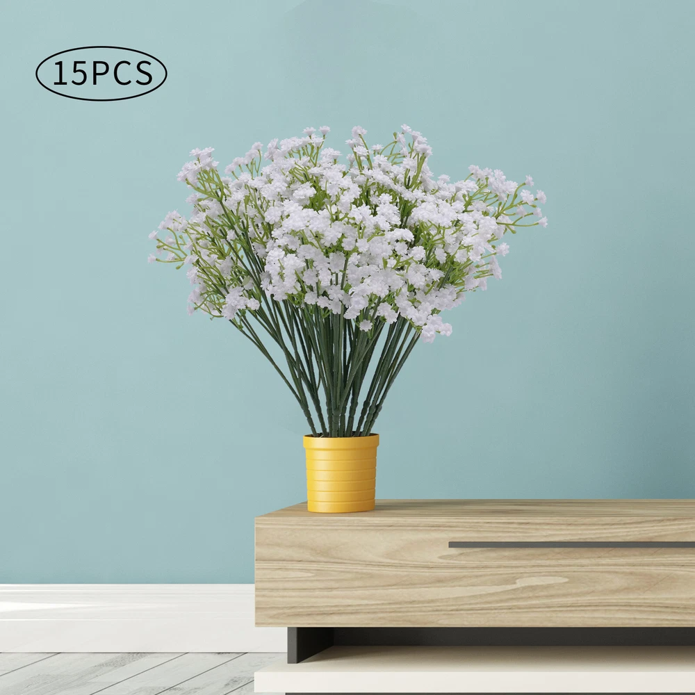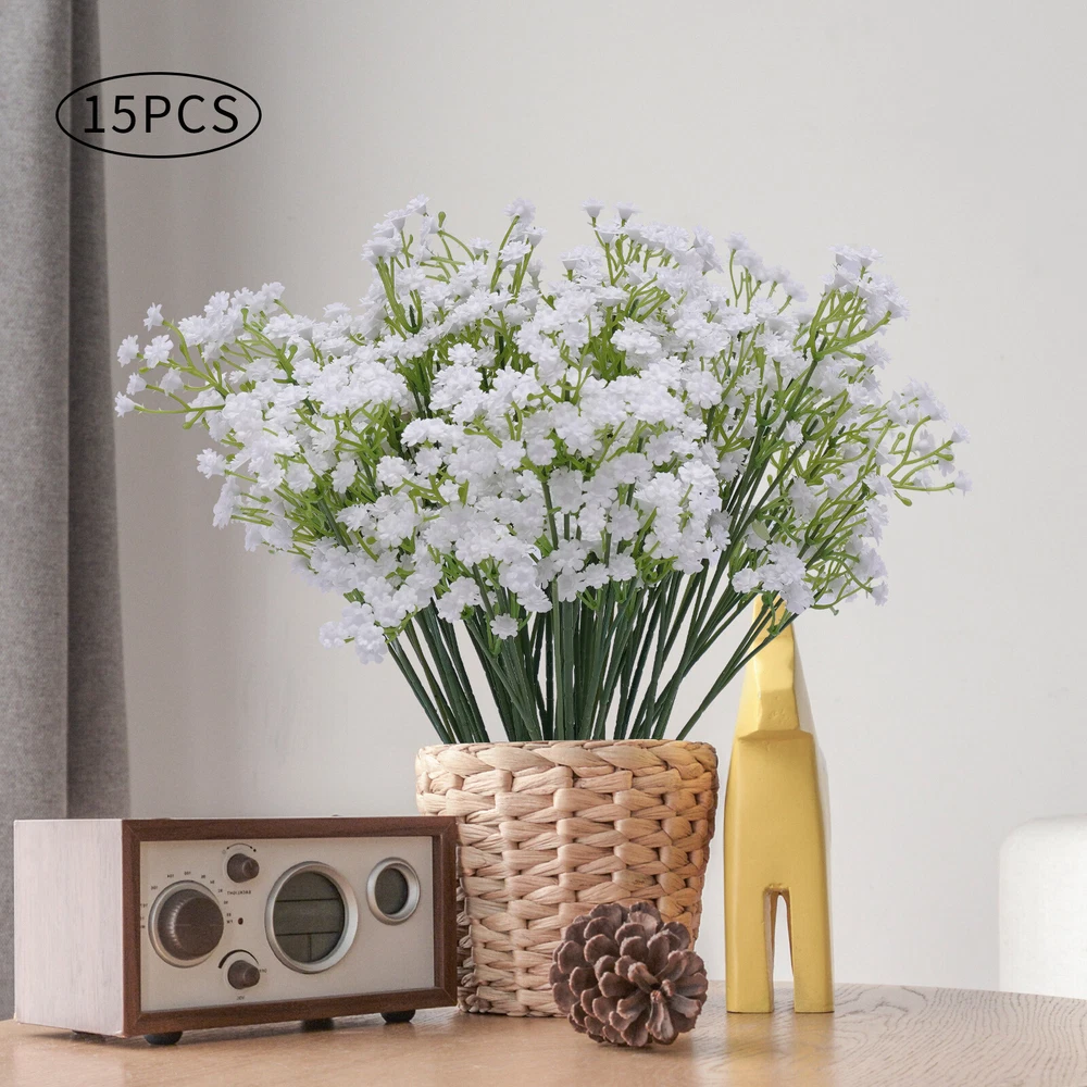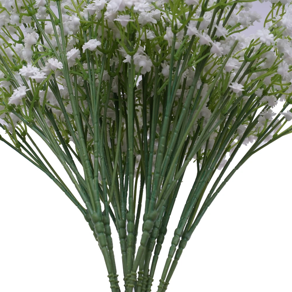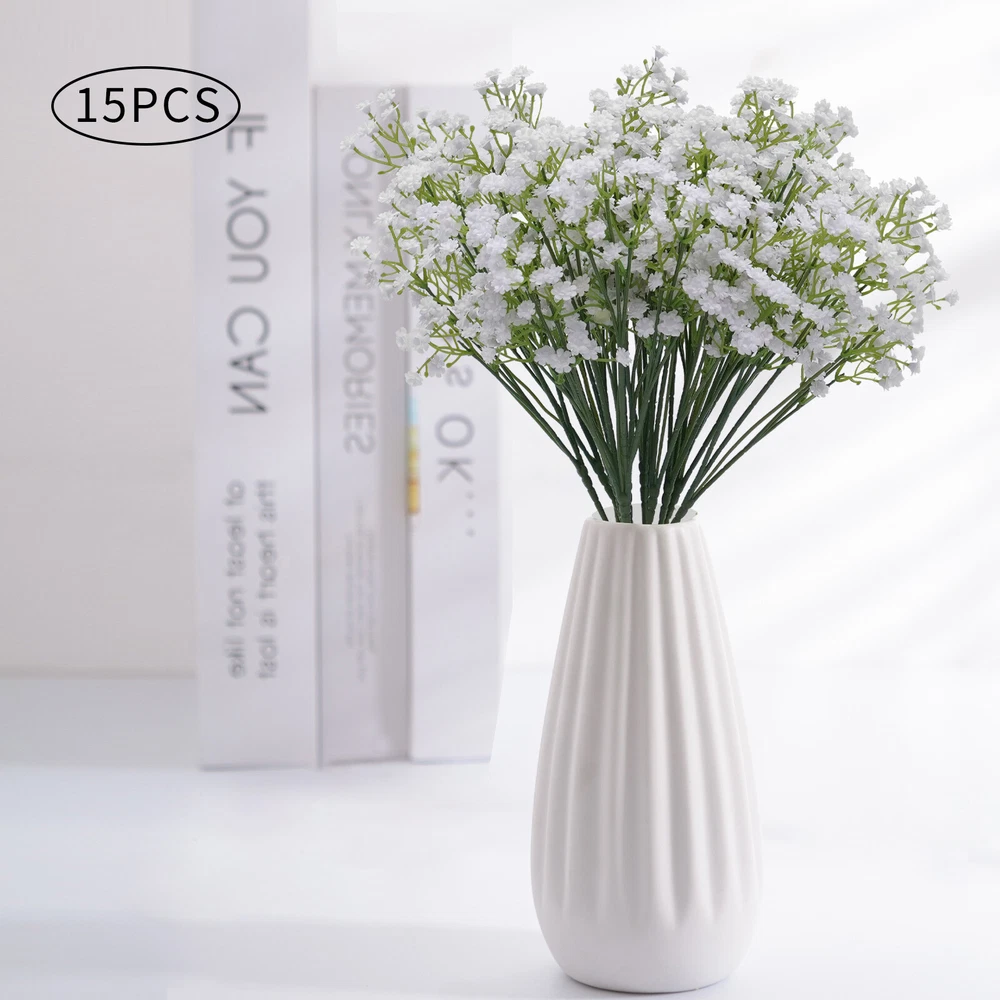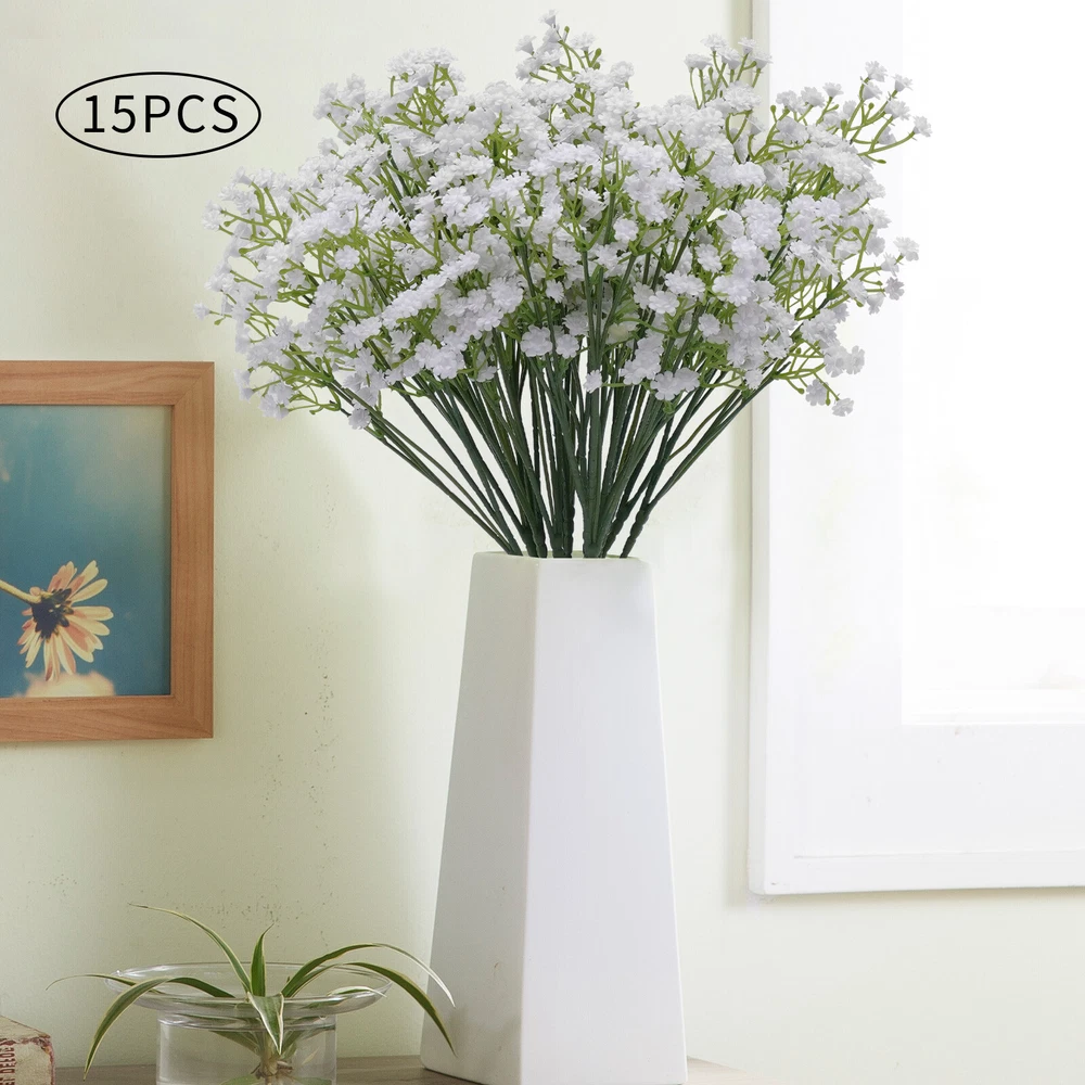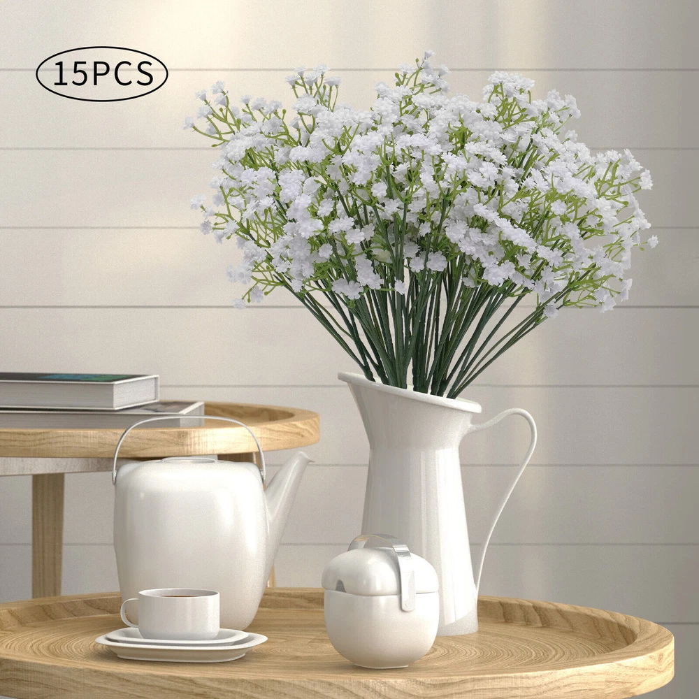 Specification Material: PP Color: White Plant Product Type: Baby's Breath Number of Pieces: 15 Specific Uses For Product: Party Decor, Wedding Decor, Home Decor Gross Weight: 0.45kg/0.99lbs Package Size: 53x8x8cm/20.86x3.14x3.14in Single Plant Size: 54x12.7cm/21.2x5in Package Included 15xArtificial Baby's Breath Flowers 15 PCS White Party Festival Wedding Wreath Decor Artificial Baby Breath Flowers Description If you want to add a little life to your living room or balcony, then this realistic, beautiful, and pure artificial baby's breath flower will be a good choice for you. Its free stretching posture and irregular texture sense make it realistic and beautiful. Whether it is a romantic wedding or a warm family gathering, it will create a beautiful and pleasant atmosphere for you. Key Features Realistic and Beautiful: The artificial baby's breath flower's bright green textured branches show the same vitality as real flowers. The white petals are dynamic and natural to bring you a happy mood. High-quality Materials: The artificial baby's breath flowers are made of high-quality PP, which is very soft and not easy to deformation. The soft material gives you comfortable touching. Romantic Decorations: Realistic artificial baby's breath flowers present a free stretching posture. Beautiful and romantic artificial flowers for your bedroom, kitchen and living room add vitality and green. Hair Accessories: Realistic and beautiful artificial flowers are the ideal choice for hair accessories. White flowers and unique braided hair can create a flower fairy look, which is great for parties or photo shoots. Great Symbolism: The white baby's breath flower represents pure, eternal love, which makes it perfect for wedding decorations to give a warm and romantic atmosphere. With its beautiful symbolism, it is also a great gift for confessions, anniversaries, and Valentine's Day. Easy to Maintain: Compared to real flowers, artificial flowers do not need to be watered and trimmed. If it gets dirty, you just need to rinse it with water and dry it naturally, which can save a lot of time and effort. DIY Fun: Small, rustic baby breath flowers are great for pairing with larger flowers like roses, sunflowers, and lilies to create layered, brightly colored bouquets. This not only allows you to harvest beautiful bouquets but also to experience the fun of floral art. Non-allergic: Compared to flowers artificial flowers are safer and more harmless to avoid the possible allergies caused by pollen, which allows everyone to experience the beauty of flowers. Customer Service: We aim to provide quality products and services. If you have any problems, please feel free to contact us. We will reply and solve the problem for you as soon as possible. Details Detachable Flower Heads: The removable flower heads are more convenient to decorate according to demand. Barbs: The flower head is equipped with barbs for easy removal and installation. The barbed design allows the flower head to be attached to the stem more tightly so that it will not fall off easily. One-piece Petals: The petals are designed in one piece so that they do not fall off easily. Application These fake flowers are very suitable for daily home garden decoration, birthdays, holidays, weddings, memorial places, DIY projects, etc. Specification Material: PP Color: White Plant Product Type: Baby's Breath Number of Pieces: 15 Specific Uses For Product: Party Decor, Wedding Decor, Home Decor Gross Weight: 0.45kg/0.99lbs Package Size: 53x8x8cm/20.86x3.14x3.14in Single Plant Size: 54x12.7cm/21.2x5in Package Included 15xArtificial Baby's Breath Flowers Notes 1. It May occur during transportation, flowers and leaves fall off, and other common phenomena. You can insert the flowers and leaves. You can also fix them with hot melt adhesive. 2. Please do not expose the flowers to sunlight for a long time, the color will fade. 3. You can wash it with water, and then just wipe it with a rag. Blow dry with a low-temperature hair dryer. 4. Please allow the slight color difference caused by the shooting light and 1-3cm error due to manual measurement. Please make sure you do not mind before you order. Payment Delivery details Terms of sales About us Contact us Payment We accept ebay payment 。 Fees such as import duties, taxes are not included in the item price or shipping costs. These charges are the buyer's responsibility. Delivery details Shipping: 2-9 working days to: USA Terms of sales We maintain high standards of excellence and strive for hundred percent customer satisfaction. Feedback is very important to us. We hope that you contact us immediately before you give neutral or negative feedback, so that we can address your concerns. It is impossible to address issues if we do not know about them! About us Your satis faction is our ultimate goal. We work hard to earn your trust and future business. Our certified technicians have tested each item before shipping. The unit comes with 1 year limited warranty on all manufacturing defects. a) If you receive a defective item, you may return it or ask for a discount. Please contact us within 14 days after you receive the package. b) What you returned must be intact and in its original packaging as re? u. Customer is responsible for shipping costs of the returned item. c) We will cover the cost of shipping back t with the shipping rate indicated in the registration page. We will send you a new unit or refund the full payment you paid. Thank you. Contact us Business Hour Business Hour: Monday To Friday: 8:30 AM to 5:00 PM (Beijing China time) Due to time zones, our reply to your questions may not be immediately. But within above working time, we will reply your email within 24 hours. If it's non-workdays, please kindly be patient and wait till Monday. Please contact us with ebay message. Please feel free to contact us if you have any questions. Monday To Friday: 8:30 AM to 5:00 PM (Beijing China time) Due to time zones, our reply to