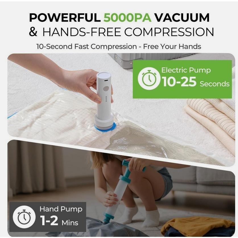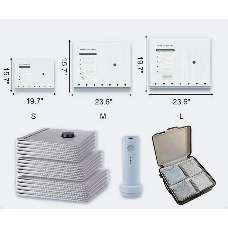 Store Categories Store Categories 15 Pack Vacuum Storage Bags Bedding Clothes Travel Space Saver w/ Electric Pump Product Description Compact Design: This cordless travel vacuum bag set is designed for easy portability, making it perfect for carry-on luggage and guarantee your clothes stay organized during travel. *Efficient Space Saver: Each vacuum bag can compress clothing significantly, allowing you to maximize your packing space and fit more items in your Notice Notice Thank you for your support. Our goal is to provide you with excellent service and ensure you have a pleasant shopping experience with us. If you encounter any of the following issues: • Item not received in time • Damaged items • Dissatisfaction with the item Please feel free to contact us via eBay message. We will do our best to resolve the issue within 12 hours, excluding international holidays. Copyright © 2023 Dianxiaomi