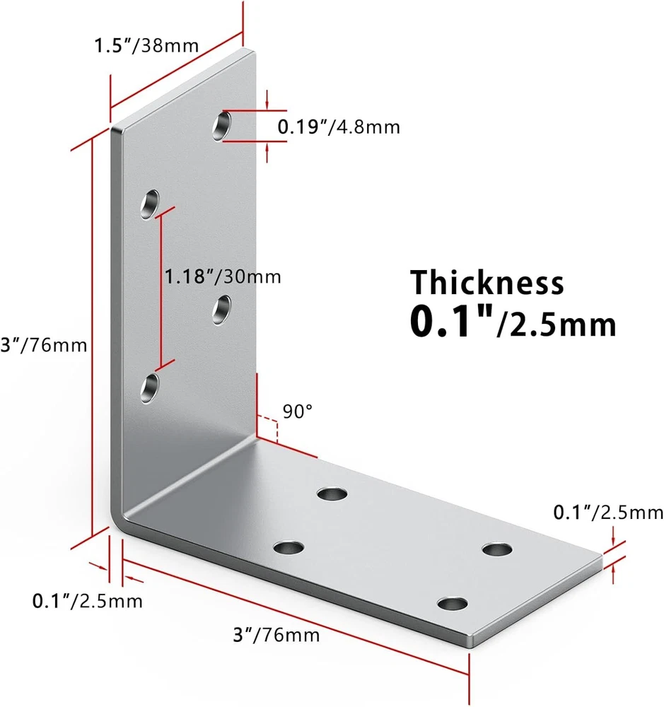 15 Pcs L Brackets Heavy Duty 12-ga Angle Fastener 3"x3" Angle Iron Galvanized... FUNCTION:3''x3"x1.5'' Angle iron Bracket Versatile connector for various 90 degree connections and home repair projects, Help ensure joints are consistently straight and strong, Stronger than angled nailing or screw fastening alone.Made from heavy-duty 12-gauge galvanized steel angle iron, these L brackets can support weights up to 200 lbs each.large Right Angle Bracket Made from 12 gauge steel, Galvanized for extra corrosion resistance. The Metal L shape brackets are made of high quality iron with hardness process which will make sure no broken 4MM thickness design provides great load capacity and is more durable than most corner brackets on the market VERSATILE APPLICATIONS:90 Degree Angle Bracket is Wide Used in Home Diy Project or Outdoor. Corner Bracket provides great load capacity,Ideal for quickly and easily repairing wood furniture, widely used for stabilize and reinforce wooden furniture and to connect furniture joint corner board, such as shelving planks, bookshelf, wooden fence, table, bed, chairs, shelves,office desk and wobbly furniture.Perfect for reinforcing corners on furniture, beds, shelves, cabinets and more. The 90 degree angle fits tightly into corners.Hot-dipped galvanized finish protects the steel from rust and corrosion for years of reliable use. Blends well with wood or metal surfaces FEATURES:4 holes on Galvanized Steel Corner Brace each side for fixing and stabilizing , firmer than 3 screw hole L corner brace, can stand a heavier load with no deform; meant to support a long lasting time. The internal corner brackets are made of high quality Galvanized steel with a brushed finish that is rust and corrosion free and suitable for both indoor and outdoor applications EASY TO INSTALL:You just need to drill the hole, install the screw, use the screwdriver or electric drill to tighten the screw on it. Simple, easy and quick. Heavy Duty Angle Brackets are great for your DIY projects,wood frame furniture or fence repairs,dock bracket,90 Degree Countertop Support or as an additional Metal Joint Support.Simply place the bracket inside corners and tighten to secure pieces at a sturdy 90 degree angle. Fits openings from 2-3/4" to 3-1/4" Shipping We offer FREE shipping on all orders! We ship within Three business days of payment, usually sooner. We use a selection of shipping services such as UPS, FedEx, USPS etc. We only ship to the lower 48 states, no APO/FPO addresses or PO Boxes allowed. Local pickups and combined shipping options are not provided at this time. Return You can return a product for up to 30 days from the date you purchased it. Any product you return must be in the same condition you received it and in the original packaging. Please keep the receipt. Customer satisfaction is very important to us. If you have any problem with your order, please contact us and we will do our best to make you satisfied. Contact Us If you have any queries, please contact us via ebay. We usually respond within 24 hours on weekdays. Please visit our eBay store to check out other items for sale! Thank you for shopping at our store.