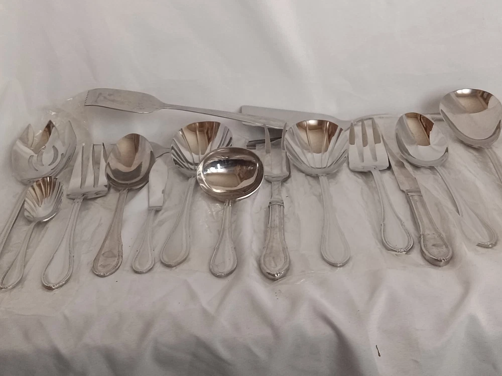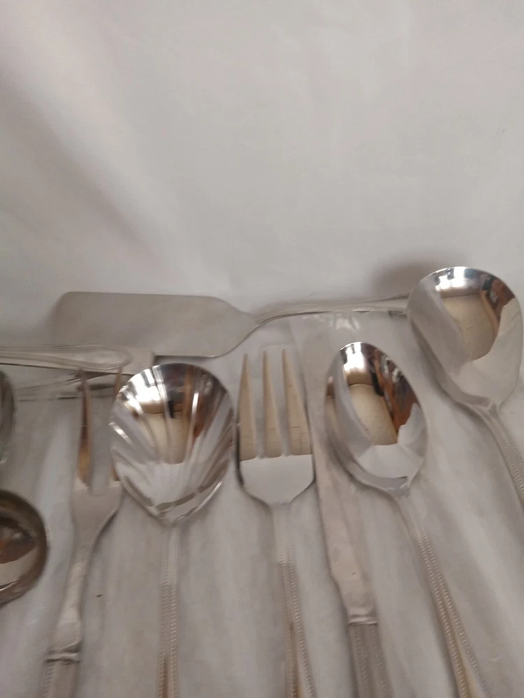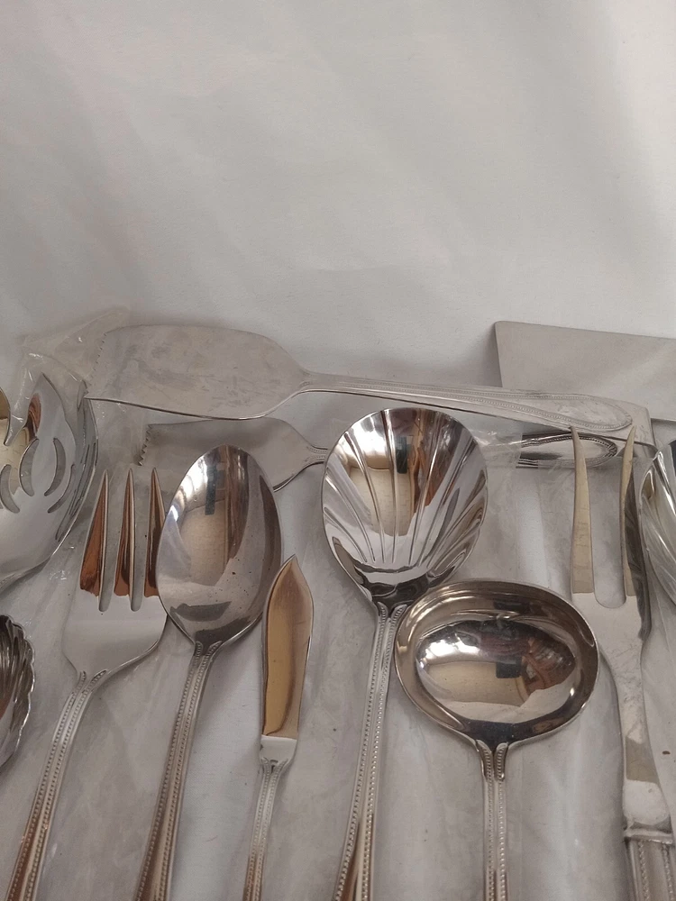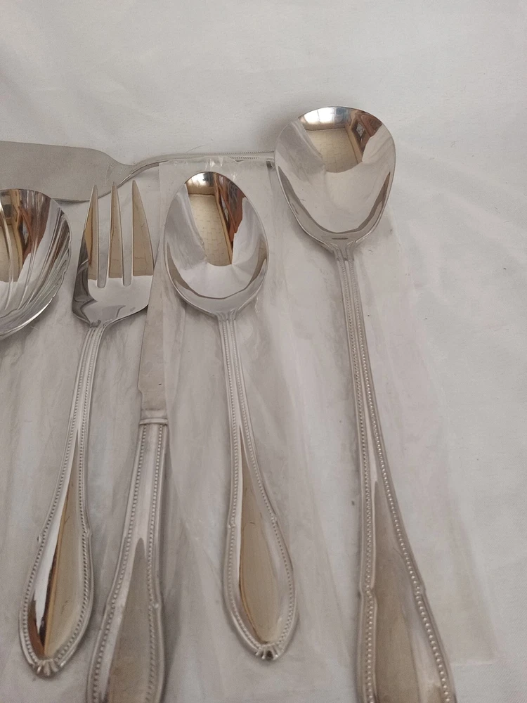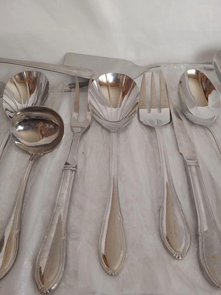 Excellent condition versatile pattern set of 15 stainless serving pieces. Bead pattern Isaac Mizrahi Live product line. I would list all of the pieces but honestly don't know what some of them are for. Picture is the description of each piece. There is pretty much an equal amount still in plastic as there is not in plastic. appears to have little use. This pattern is a very simple versatile pattern that could be coordinated with other dinnerware. These are a nice weight not thin or flimsy or too heavy.