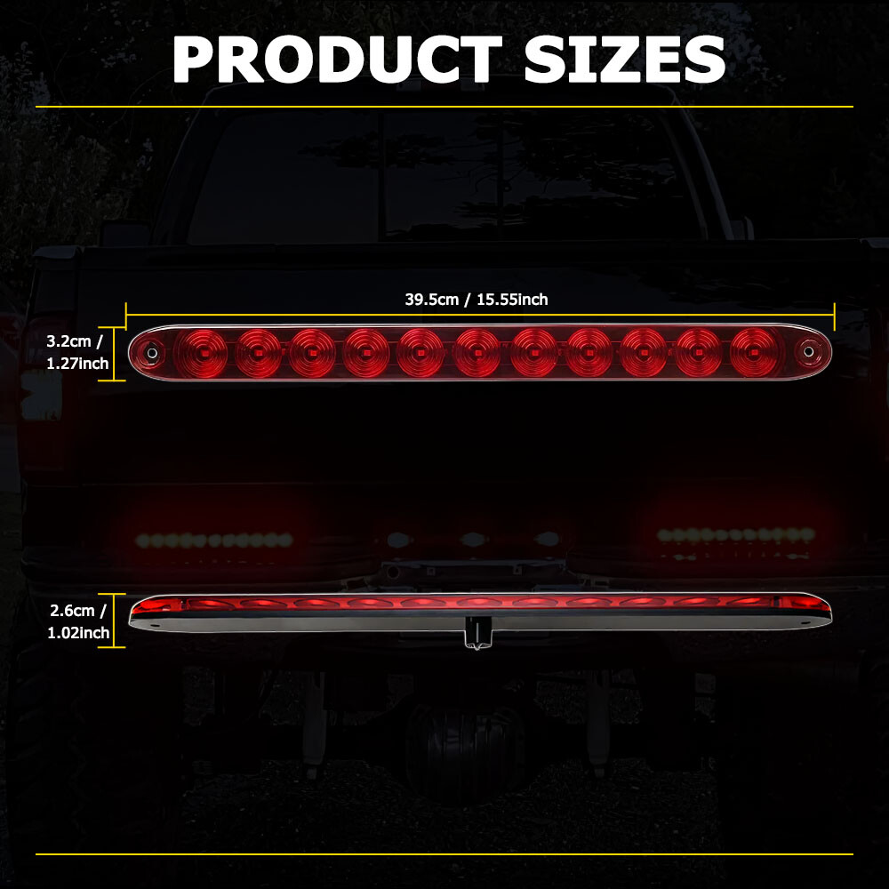 15" Red LED Tail Brake Light Strip for Heavy-Duty Trucks 2-Pack