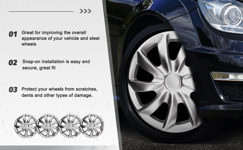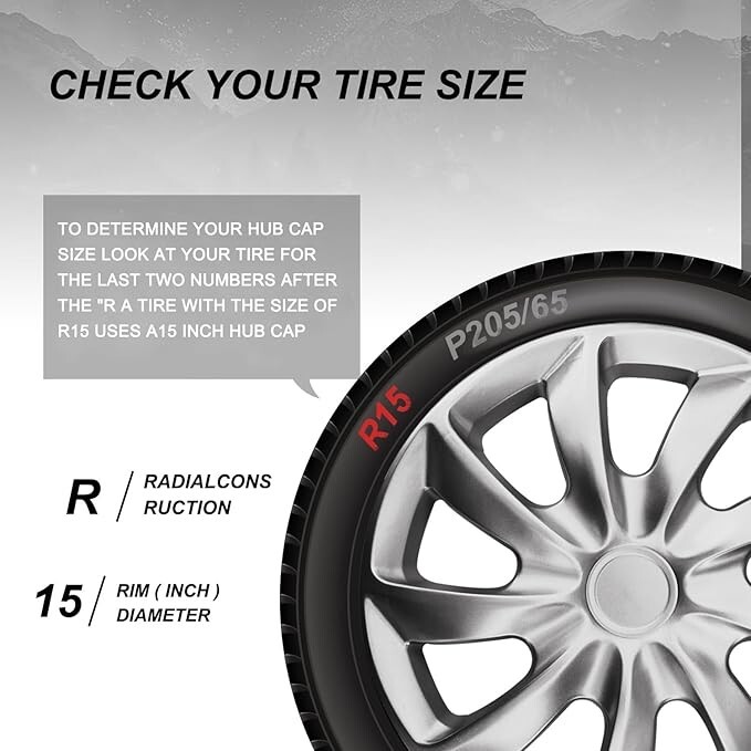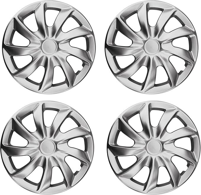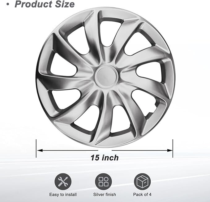 15" Silver Universal Wheel Covers 4-Piece Set Easy Snap-On Hubcaps for R15 Rims