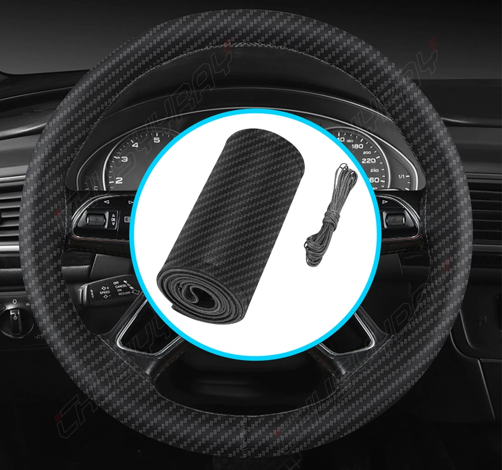 Type: Steering Wheel Cover Application: All of the flaws can be nicely covered Items Included: Steering Wheel Cover Package Content: Steering wheel cover *1, Thread and needle set *1 Brand: CHUSYYRAY Fitment Type: direct replacement Item Diameter: 15"/38cm UPC: 579903433067 Special Features: With surface coating design, durable and long span life Application 2: Protect your car steering wheel cover, Anti-slip Manufacturer Warranty: 1 Year Outer Diameter: Approx 15 in / 38 cm Features: Easy Installation Compatibility: only fit 38CM Steering Wheel Car models Manufacturer Part Number: Car Steering Wheel Cover Material: Carbon Fiber, Leather gtin13: 579903433067 Placement on Vehicle: front