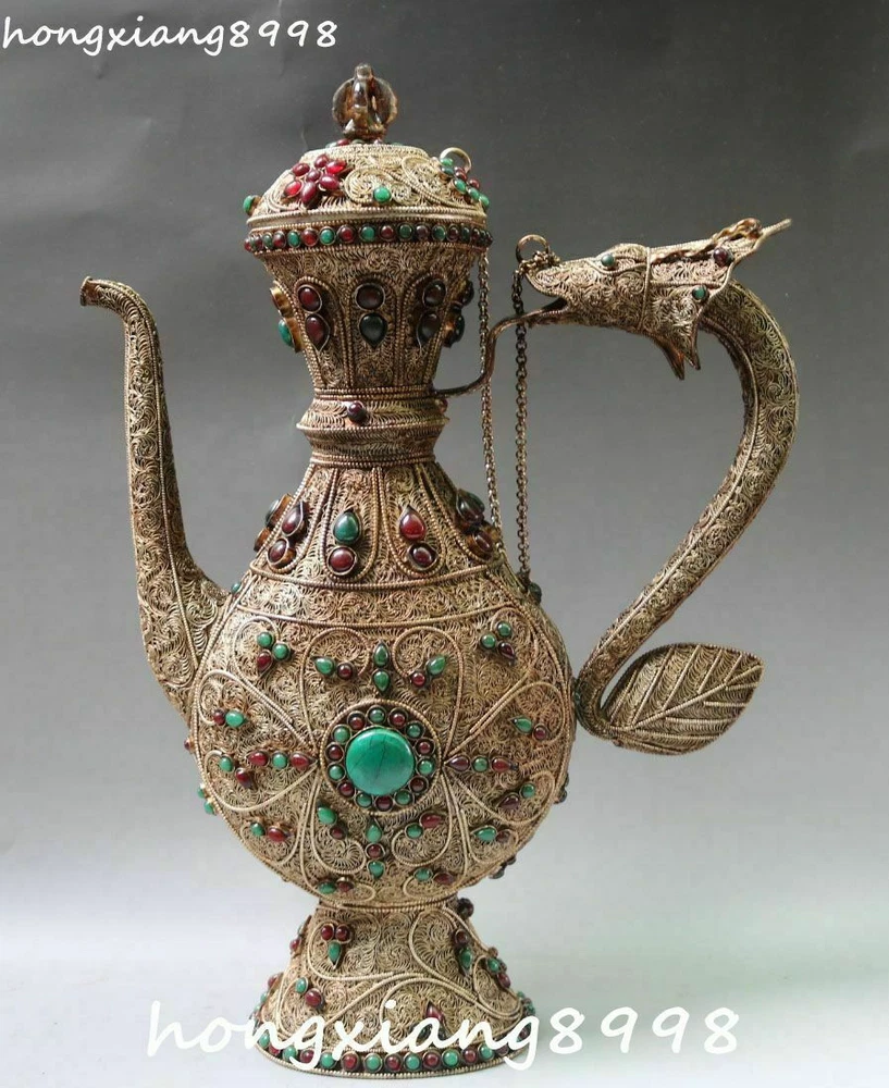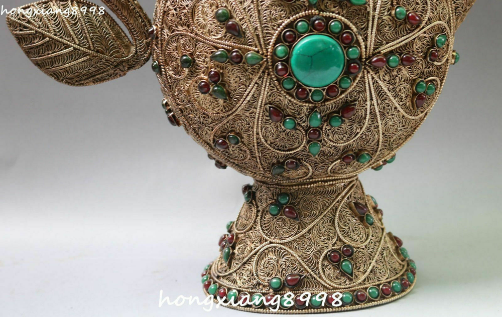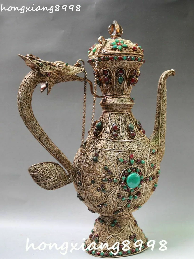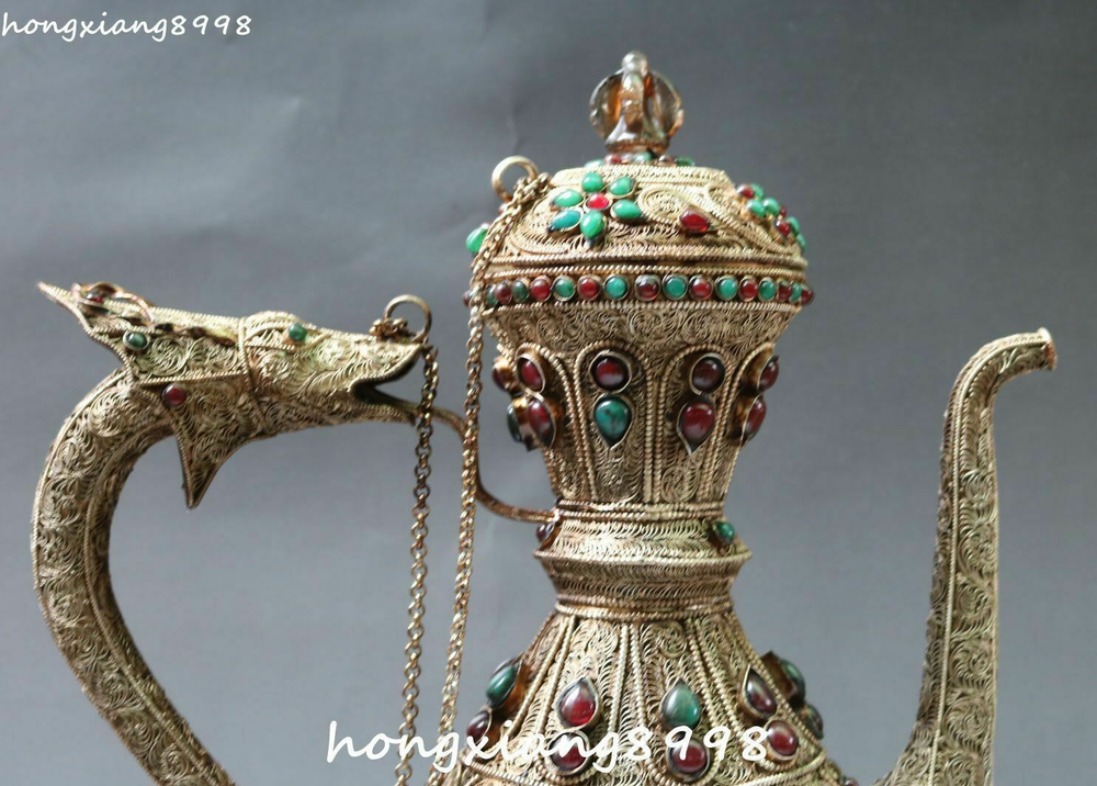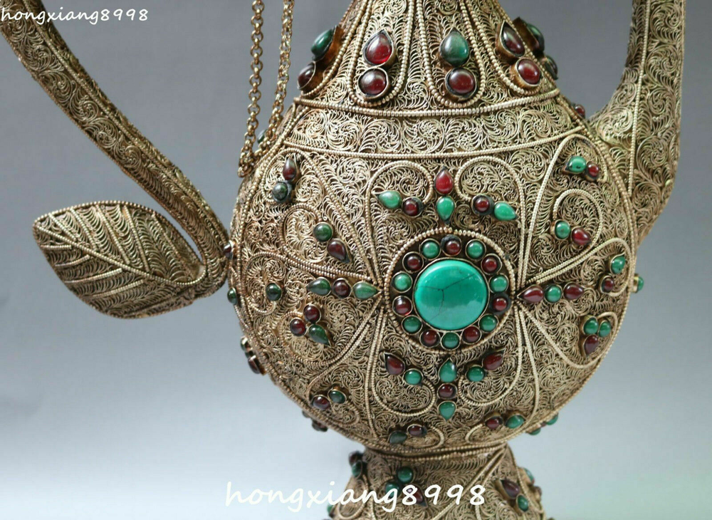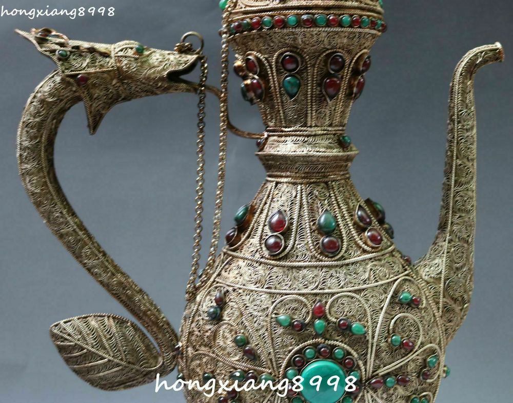 Welcome to my Ebay store: Hongxiang8998. I believe my shop can bring you enough shock and surprise. Chinese antique culture enjoy worldwide reputation because of its unique. We have always been cooperated with Chinese Museum and many of our antiques are exhibited in Chinese Museum and I have been always making efforts to find antiques for Chinese Museum. My grandfather who enjoys a good reputation in Tibet was a chief Lama in a Tibetan Buddhist Temple. We mainly sell China collections and Tibetan Buddhist products. We recommend the combine shipping ,If you won more items once that we will give you a 5 -25% discount off the shipping cost also price discount , Here the discount standard as follow : Buy 2-3 items once we can offer you the 15% discount on shipping, Buy 4-6 items once we can offer you the 20% discount on shipping, Buy 7-10 items able to get 25% discount on shipping and 5% discount on price. Over 10 items please feel free to email us request for especially price ! Here is an 15"Tibet Buddhist Silver Filigree Inlay Turquoise Gem Dragon Wine Tea Pot Flagon , As you can see the image, It is in good condition, and was created by skilled craftsmen in traditional style with fine handcrafts . This is a great piece of valuable collection, a valuable personal alter or a very good present. the handwork is very fine with incredible detailing. Don't miss out this chance to get it .Wish you good luck! Materia l: Silver Filigree Inlay Turquoise Gem Size: Height 14.9 inch .Long 10.2 inch . breadth 4.7 inch Weight: 5.2 KG----included the weight of packing materials Condition: Good condition Origin: China hipping cost by EMS / UPS / TNT / Fedex / (7-13 days):Free Paypal and bank transfer ( highly recommended ) We can accept the payment through PayPal or other way. But if you have problem on this method please contact me and If you are the final winner of this item, please pay within 7 days. However, if you are still bidding on our other items and want to combine shipping, just let us know, we will send a combined invoice to you We provide two options for shipping : DHL & EMS ( Express Mail Service) Since we get the agreement with the both shipping company. they are all fast and safe worldwide ways that easy to tracking online any time also arrive home directly. Mostly items will be using by EMS that only Very Larger items we will using by DHL. When you purchase is completed, we will immediately the customs inspection, this may take a few days time, because it is antique products, customs need to strict inspection, when we send, will immediately tell you tracking number. All the item will be packed by specialty with strong packing for shipping and High quality items for arrive to let you 100% happy. if for whatever reason you are not completely satisfied, simply cancel within 30 days of application for a full refund. the item must be in it's original condition. CONDITION OF RETURNED ITEMS: As received. ORIGINAL ARE RETURNS ALLOWED: Only if different from description or larger broken. TIMING OF RETURNS :Items can be returned within 30 days. NOTICE SELLER BEFORE RETURNING : We will trying to make your 100% Happy. RETURNED FEES: 10% 0ffered by Us. My Profile Check out my other listings View More... About Us: We guarantee 100% satisfaction on all of our auction Items. Our ultimate goal is providing 100% satisfaction to every customers, customers' repeated business and good positive feedbacks. If you do experience any problem with your items purchased from us , Kindly inform us in order to provide us a chance to resolve the unsatisfaction. So if you are not satisfied with the item you've purchased, you can contact me within 2 weeks or 10 business days after the end of auction and we will give you a full refund upon the receipt of the item. (S&H fees are not refundable). Please do not leave a negative feedback before connect me. We will strive to fulfill bidders' satisfaction. We encourage you to contact us in all cases, we always try to help our clients and ensure that you are happy with the transaction.