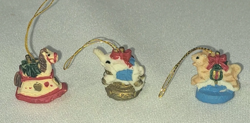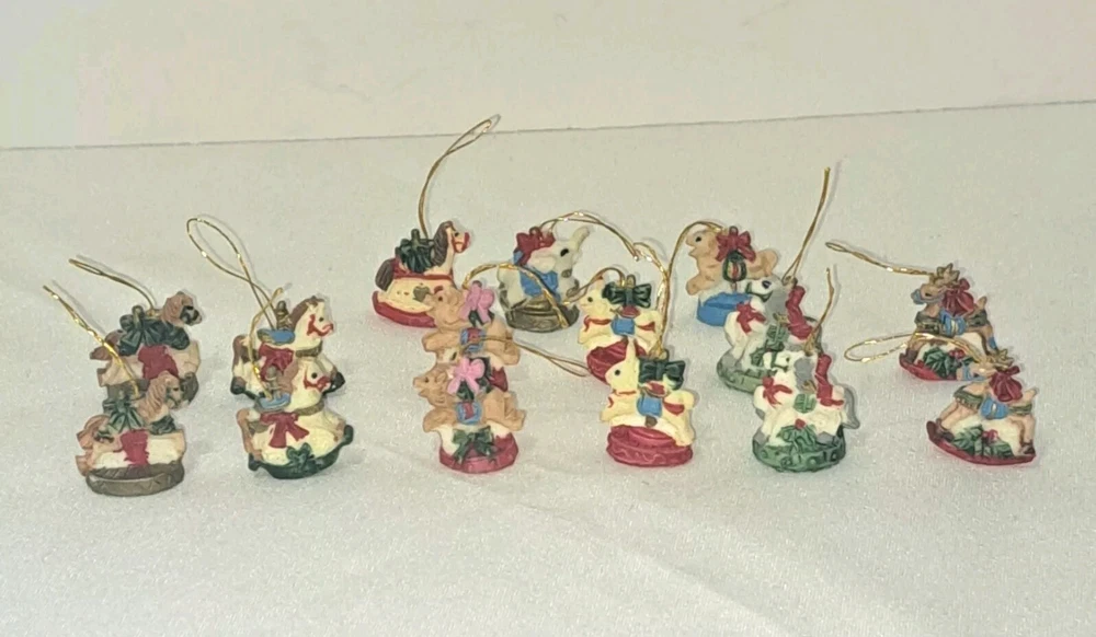 15 Vintage Miniature Christmas Ornaments Carousel Animals Horse Rabbit Lion.... Condition is Used. Shipped with USPS Ground Advantage.