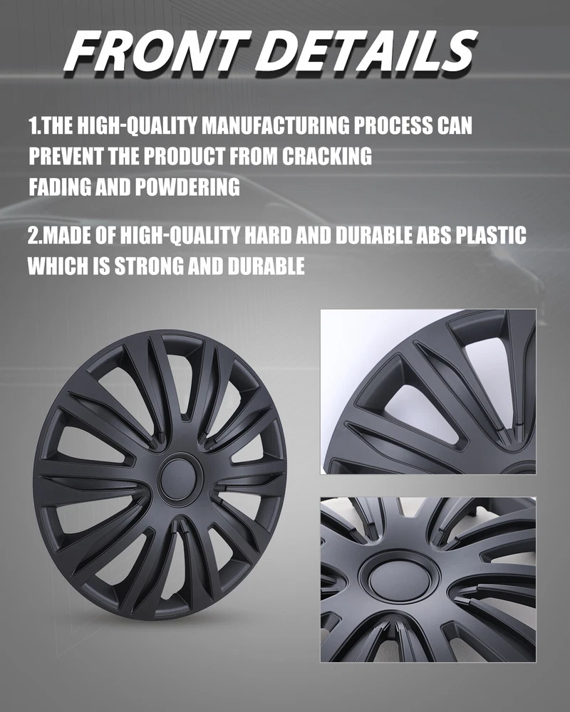 Home Payment Shipping Return Policy About Us Contact Us Feedback Title Other Car Refrigerator Front Bumper Rear Bumper Fender Flares Inner Fenders Side Steps Running Board A-Pillar Light Mount Brackets Headlights For Ford For Dodge For Chevrolet For Toyota For Mitsubishi Taillights For Chevrolet For Toyota For Ford For Jeep For Dodge For Honda For Nissan For Cadillac Fog Lights For Jeep For Dodge For Chrysler For Ford For Toyota For Chevrolet For Nissan For Lexus For GMC For Cadillac For BMW For Mercedes Benz LED Headlights For Ford For Dodge For Chevrolet For Toyota LED Taillights For Toyota For Chevrolet For Ford For Jeep For GMC For Honda For Cadillac LED Fog Lights For Toyota For Ford For Chevrolet For Mercedes Benz Jeep Headlights Tail Lights Fog Lights Refrigerator Bumper Fender Flares Inner Fenders A Pillar Light Mount Brackets Side Step More Chevrolet Headlights Tail Lights Fog Lights Refrigerator Bumper Ford Headlights Tail Lights Fog Lights Refrigerator Bumper Toyota Headlights Tail Lights Fog Lights Refrigerator Bumper Dodge Headlights Tail Lights Fog Lights Refrigerator Bumper GMC Headlights Tail Lights Fog Lights Refrigerator Bumper About this item: ✴ Universal Fit - Design for 15" iron hubs,NOT for aluminum alloy hubs. Please know that and check your wheel before purchase to ensure fitment. ✴ Protect Your Wheels - Keep your vehicle looking sleek and new with these universal-fit hubcaps that offer reliable protection against scratches, dings, and other types of damage. ✴ Easy to Install - Designed to fit most standard wheel size, these hubcaps can be quickly and easily snap on your wheels without the need for special tools, making them a great choice for busy vehicle owners. ✴ Durable - Made from high-quality ABS materials, these hubcaps are built to withstand the rigors of daily use, keep your vehicle looking great for years. ✴ Stylish - Upgrade the look of your car or truck with these sleek hubcaps to enhance the appearance of your vehicle. Specification: ✴ Type: Hub caps ✴ Number in Pack: 4 ✴ Color: Matte Black ✴ Material: ABS ✴ Compatible Wheel Diameter: 15 in ✴ Finish: Matte ✴ Installation Type: Snap-On ✴ Model: Universal Hubcap for Iron Wheels Package: ✴ One set of 4 Hub caps and 4 retention rings Payment Delivery details Terms of sales About us Contact us Payment We accept PayPal, credit card , Apple Pay & Google Pay etc. Delivery details All items will be shipped within 1-3 business days after payment received, we will try our best to ship out as soon as we can, hope for your understanding. Please double confirm your address and contact information, which will help the delivery faster and more accurately. Note :buyers who purchase international products need to pay import tariffs!!! Terms of sales Professional installation is highly recommended. Any problem of the item please feel free to contact us first , please D o Not leave negative feedback before that, or simply return it within 60 Days in original condition. We will resolve it for you ASAP. About us Any questions please do not hesitate to contact us directly by eBay message . We will reply you within 24 hours asap, thanks for your understanding. Contact us Should you have any problem or require any further information please feel free to contact us . If you are satisfied with our product and service, please kindly leave us a positive feedback. On Feb 8, 2025 at 01:45:28 PST, seller added the following information: