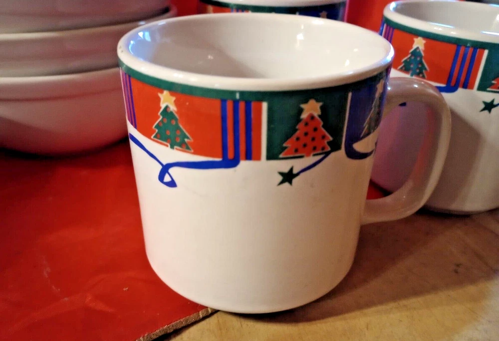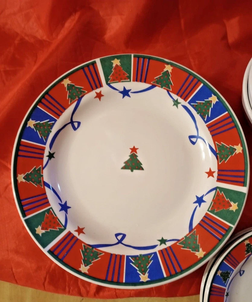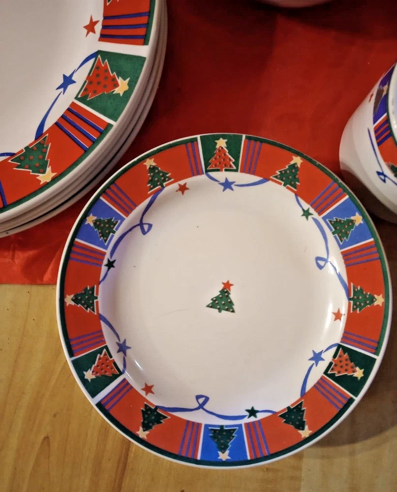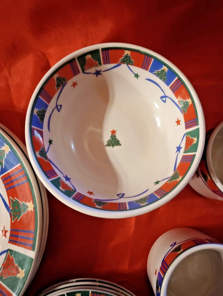 Celebrate the holiday season with the Trend Basics 15-piece Christmas Tree Dinnerware Set, a festive addition to any dining table. The set includes four 9 3/4" dinner plates, four 6 3/4" salad plates, four 5 1/2" bowls, and three 3 1/4" tall mugs, each adorned with a vibrant Christmas tree pattern that captures the spirit of the occasion. Crafted from high-quality ceramic, these pieces are designed for both functionality and durability. With the convenience of a printed backstamp, this multicolor collection is a blend of elegance and practicality, perfect for adult gatherings during the most wonderful time of the year. Whether enjoying a hearty meal or sipping on holiday beverages, this complete set serves up every course in style. Please look at pictures as they are part of the description. Please contact us directly for any questions, concerns or issues with condition, shipper/carrier delays, etc. and we will work to resolve. Opening a case will only delay our ability to quickly resolve any issues you might have. We strive for 100% customer satisfaction and have an excellent track record. Purchase with confidence. For USA buyers outside the continental USA there may be an additional cost for shipping. Please contact us for the estimated shipping cost. For international buyers our estimated shipping cost is to EBAY's National Shipping Center on the American east coast. EBAY will provide you the additional cost to ship to your location. We sell "used" items in most cases, sometimes new. There are however some items manufactured in previous years that were never used. If such an item is in excellent condition and still has an original price tag, original packaging and in some cases the original box we will show it as a new item but describe it as "new old stock". We obtain our items through yard sales, storage sales, individuals, pickers that we use, auctions and various other means and we do consign items for sale on occasion. We do not know the history of the items we obtain as to how it was stored, who previously owned it, etc. Items are generally unique but we do buy multiples in some cases. We do research every item but are not experts on every item obtained. We do our best to describe each item accurately. NOTE: I describe and post photos of my items as best as possible and do not try to represent myself as an expert on anything that I sell. I am an honest seller and if I see a flaw, I will point it out and try to post a photo for your review and consideration. Used items are not perfect, not mint or near mint and can have scratches, marks, crazing, glaze flaws, trim wear, stains and general wear. Some items we sell have general wear consistent with age and other items do not show their age nearly as much. Please review our pictures as they are an important part of our condition description. If you receive an item that is damaged in some way let us know right away as shippers can be very rough on items shipped. Depending on the type of item we try to "double box" sensitive items to prevent damage. In many cases carefully wrapping the item in bubble wrap or other wrapping is enough protection. IF ANY SHIPPING DAMAGE OCCURS WHEN MULITIPLE ITEMS ARE SHIPPED TOGETHER, INCLUDING SETS, INSURANCE ONLY PAYS FOR THE DAMAGED ITEM ONLY.. NOT THE ENTIRE SET. YOU WILL ONLY BE REFUNDED FOR THE DAMAGED PIECE ONLY. I ship in recycled packaging when possible to reduce waste. If there is a problem, please contact me before leaving feedback. SHIPPING: I SHIP GLASS, CHINA AND OTHER FRAGILE ITEMS VIA FEDEX.