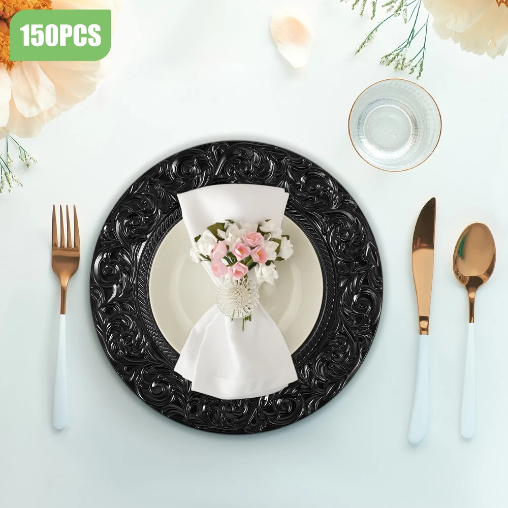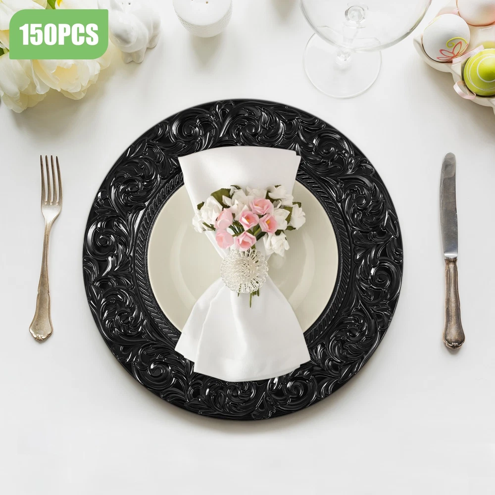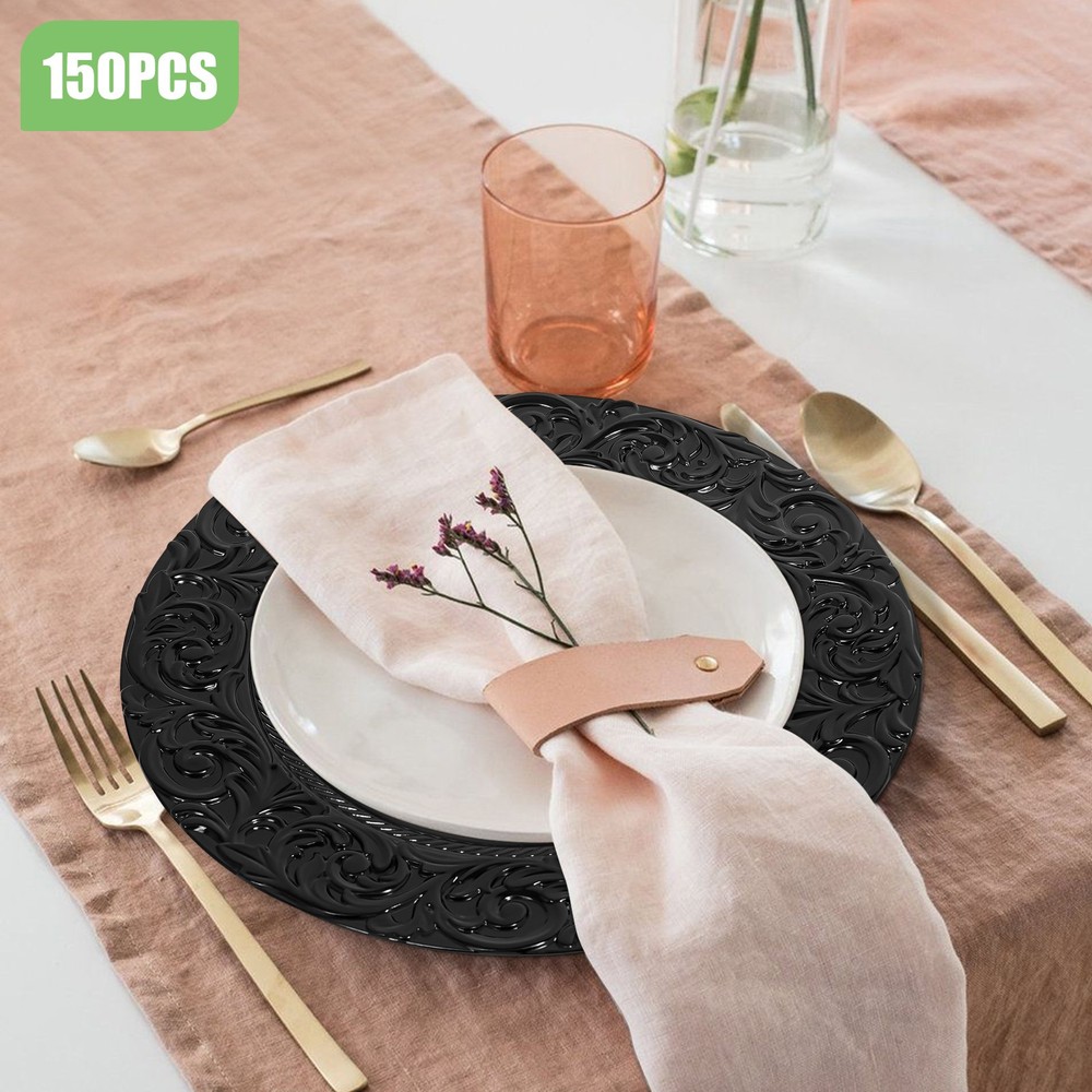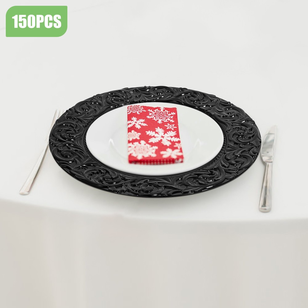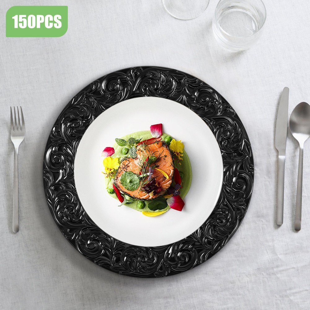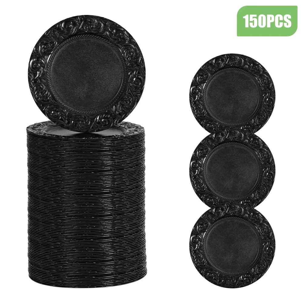 150 Black Plastic Plates Set - Disposable Dinner Plates Bulk Pack for Par Description Description This set of plates can add elegant decorations to your banquet table for weddings, family gatherings, and holiday celebrations. The premium PP and the beautiful texture on the surface make each plate sturdy and durable and give it a beautiful and glossy appearance to be a great addition to your table. Key Features Long Service Life: Made of PP with the spraying paint process, the product is waterproof and resistant to impact, wear, and fade, so you can use it for long periods with confidence. 150 Pieces a Set: This large quantity set of plates is not only suitable for home use, but also for large events, hotels, restaurants, and other commercial venues. In addition, its 12.99-inch diameter is large enough to accommodate small to regular-sized plates and bowls. Charming Appearance: The simple round shape, elegant black color, and beautifully embossed rim make these products premium decorations for your table, especially when matching with other dinnerware sets. Reusable: This is not a disposable item, you can use it many times without losing the color or affecting the aesthetics, superior quality, so it is economical. Easy to Move: The weight of each plate is approximately 0.37 lbs , allowing you to easily pick it up and move it to where you want to place it. Ideal Gift: This beautiful and premium set is an ideal housewarming or holiday gift for your friends, families, and colleagues. Customer Service: We aim to provide quality products and services. If you have any problems, please feel free to contact us. We will reply and solve the problem for you as soon as possible. Details Smooth Edges: They provide you with a smooth touch feeling while protecting your hands from getting scratched during daily use. Application The product is suitable for birthday parties, weddings, banquets, baby showers, family gatherings, restaurants, hotels, traveling, camping, picnics, BBQ, daily life, Halloween, Thanksgiving, Christmas celebrations , or other events. Specifications Color: Black Style: European Retro Shape: Round Material: PP Process: Spraying Paint Assembly Required: No Number of Pieces: 150 Each Product Size(D*H): 33*2cm/12.99*0.79in Packaging Size: 71*35.3*36.3cm/27.95*13.9*14.29in Gross Weight: 26.25kg/57.87lbs Net Weight: 24.94kg/54.98lbs Package Included 150* Plates Notes Please check the style and size carefully before ordering. These plates are not suitable for microwave or dishwasher, please wash them in cold water and wipe them with a dry cloth, take care of them for long time use. It is not recommended that the product comes into direct contact with food. Please allow the slight color difference caused by the shooting light and 1-3cm error due to manual measurement, and make sure you do not mind before you order. Payment Delivery details Terms of sales About us Contact us Payment We accept ebay payment 。 Fees such as import duties, taxes are not included in the item price or shipping costs. These charges are the buyer's responsibility. Delivery details Shipping: 2-9 working days to: USA Terms of sales We maintain high standards of excellence and strive for hundred percent customer satisfaction. Feedback is very important to us. We hope that you contact us immediately before you give neutral or negative feedback, so that we can address your concerns. It is impossible to address issues if we do not know about them! About us Your satis faction is our ultimate goal. We work hard to earn your trust and future business. Our certified technicians have tested each item before shipping. The unit comes with 1 year limited warranty on all manufacturing defects. a) If you receive a defective item, you may return it or ask for a discount. Please contact us within 14 days after you receive the package. b) What you returned must be intact and in its original packaging as re? u. Customer is responsible for shipping costs of the returned item. c) We will cover the cost of shipping back t with the shipping rate indicated in the registration page. We will send you a new unit or refund the full payment you paid. Thank you. Contact us Business Hour Business Hour: Monday To Friday: 8:30 AM to 5:00 PM (Beijing China time) Due to time zones, our reply to your questions may not be immediately. But within above working time, we will reply your email within 24 hours. If it's non-workdays, please kindly be patient and wait till Monday. Please contact us with ebay message. Please feel free to contact us if you have any questions. Monday To Friday: 8:30 AM to 5:00 PM (Beijing China time) Due to time zones, our reply to your questions may not be immediately. But within above working time, we will reply your email within 24 hours. If it's non-workdays, please kindly be patient and wait till Monday. Please contact us with ebay message. Please feel free to contact us if you have any questions.