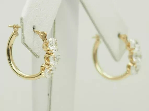 1.50 CT Round 3-Stone Moissanite Hoop Earrings in 14K Yellow Gold Plated Leverback