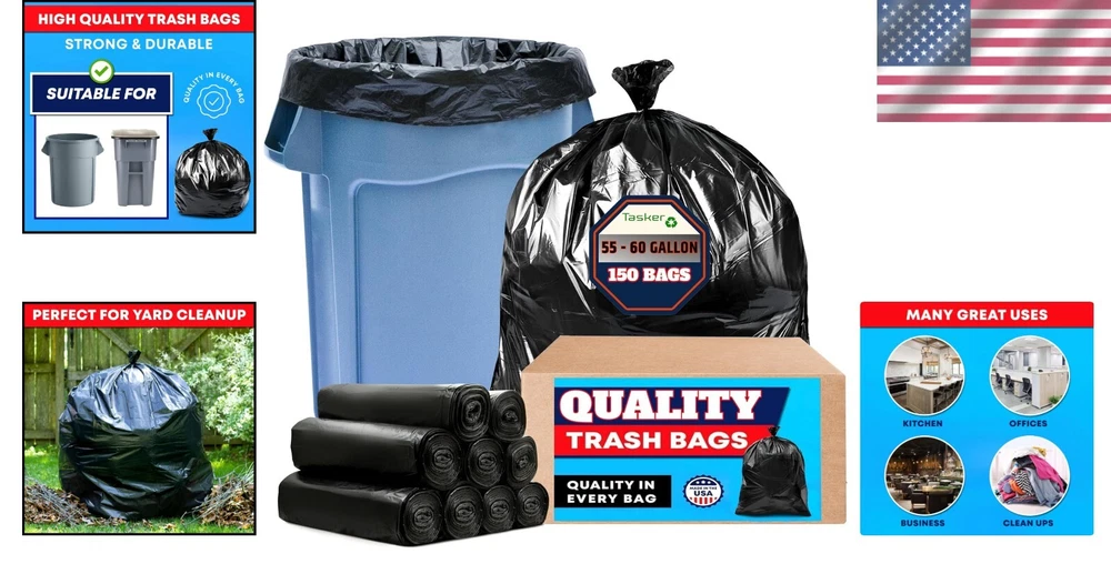150 Count Heavy-Duty Trash Bags - 55-60 Gallon Liners for Recycling & Lawn Care ‹ › ‹ › ‹ › ‹ › ‹ › ‹ › ‹ › ‹ › ‹ › ‹ › ‹ › 150 Count Heavy-Duty Trash Bags -55-60 Gallon Liners for Recycling & Lawn Care Features: High capacity: Double as rollaway bin liners and drum liners. Durable: Crafted with heavy-duty materials, ensuring a robust design that resists tearing. Versatile Use: Ideal for recycling, lawn care, leaf collection, and more. USA Made quality: Proudly crafted in the USA, supporting local economy and sustainability efforts. Convenient Pack: 150 bags included for daily use and all waste disposal tasks. Benefits: Efficient waste management solutions for homes, offices, and commercial spaces. Reliable performance, even under tough conditions. Multifunctional convenience for various disposal needs. Eco-friendly construction that contributes to environmental responsibility. Always prepared for waste disposal tasks. Why choose our Heavy-Duty Trash Bags? Revamp your waste management strategy with our premium 55-60 gallon contractor garbage bags! These high-capacity black bags are meticulously crafted to handle all your waste disposal needs. Whether you’re tidying up at home, managing outdoor debris, or decluttering your office, these bags offer superior durability and reliability, ensuring they won't tear under pressure. With 150 bags included, you're always prepared to tackle spills or major clean-up efforts, making these bags a must-have for your waste disposal arsenal. Their versatility extends beyond waste disposal; they are great for recycling initiatives, lawn care, and leaf collection as well. Need a liner for rollaway bins or drum containers? Look no further – our heavy-duty bags have you covered. Choose quality you can trust and make waste disposal effortless. Say goodbye to flimsy alternatives and embrace the unmatched performance and convenience of our premium contractor garbage bags – your ultimate partner in maintaining a clean and orderly environment! Shipping Free & Fast Shipping - We offer free shipping to most of the USA with a normal delivery time of 3-10 businessdays. However, due to various situations, additional delivery time (up to 3 weeks) may be required for some items. Alternative Carriers - We may use alternative carriers (e.g. USPS, FedEx, UPS, etc.) to ensure your package arrives safely and on time. Due to the use of multiple carriers, we are unable to provide a tracking number automatically. Handling Time - Orders are processed and shipped within 1-5 business days of receiving cleared payment. Shipping Restrictions - Shipping to Alaska, Hawaii, Puerto Rico, Guam, and other US territories may incur shipping charges or delivery restrictions. Please contact us before ordering, or your order can be refunded/cancelled. State Restrictions - There may be restrictions based on your state of purchase. For example, certain items may not be shipped to California due to state regulations. Contact for Tracking Updates - If you require tracking updates or have any concerns about the delivery of your order, please feel free to contact us, and we will be happy to assist you. Return Please see our ebay return policy. We do not accept return on most products. This is to avoid customers mis-using ebay returns. All sales are final. Please be sure to check the return policy listed at the top of the listing. In rare cases, we may accept returns, if the buyer pays both ways shipping and 20% restocking fee. If you are un-sure of return policy of a particular item, please ask before buying. Payment We accept all major credit cards, PayPal, and Apple Pay for your convenience. Your payment information is secure and encrypted to ensure a safe and seamless transaction. Please complete your payment within 3 days of purchase to avoid any delays in shipping. Feedback Your feedback is extremely important to us. We strive to provide the best products and customer service possible. If you are satisfied with your purchase, please take a moment to leave us a positive review. If you have any concerns or issues with your order, please contact us before leaving negative feedback. We are committed to resolving any problems and ensuring your satisfaction. Contact Us If you have any questions or concerns, please feel free to reach out to our customer support team. You can contact us through the eBay messaging system. We are available Monday to Friday, 9:00 am to 5:00 pm EST, and we will do our best to respond to your inquiry within 24 hours. Buy it now and enjoy a pleasant shopping experience! UPC: Not Set Unit Quantity: 150 Room: Bathroom,Bedroom,Entryway,Garage,Home Office/Study,Kitchen,Living Room,Sunroom,Utility/Laundry Room Material: Plastic Features: Heavy Duty,Scent Free,Unscented Suitable For: Food Waste,General Waste,Indoor,Outdoor,Paper Waste,Plastic Waste,Vehicle Brand: Unbranded Item Height: Large Trash Bags Item Length: Large Trash Bags Item Width: Large Trash Bags Type: Trash Bag Color: Black Capacity: 60 gal Size: Large Number of Compartments: 1 Item Weight: 18.74 pounds Model: Not Set MPN: Not Set Shape: Rectangle Style: Modern Pattern: Not Set Country/Region of Manufacture: Not Set Finish: Matte Unit Type: Unit Personalize: Not Set