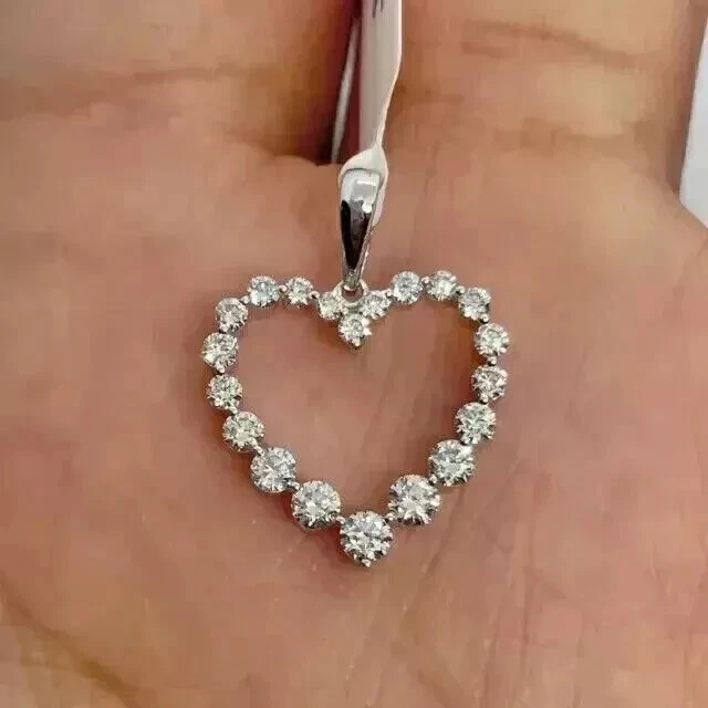 1.50 Ct Round Cut Moissanite Open Heart Pendant Necklace 14k White Gold Plated Customization: Want to add your personal touch to this piece? Contact us and we will create one just for you. Most customization requests include: 1) Ring Resizing 2) Redesign 3) Engraving (Name or any message - no of characters subject to size of jewelry) 4) Anything under the sun that catches your fancy, we will give it a try :) Payment: We accept payment via PayPal only. You can also pay using your credit card, via paypal, by using paypal as a guest. Payment is required within 3 days of the sale of an item. Shipping: International shipments are usually delivered within 2 to 6 weeks, depending on the time taken to clear customs. We are not responsible for any delays due to customs. Please note that all countries charge a duty on imported goods. A customs clearing charge is also imposed in many countries. We are not responsible for the amount of duty or any other related charges. Terms & Sale: We want to ensure that you are completely satisfied with your purchase. If not, then please let us know before leaving any feedback and allow us to work with you to completely resolve any issues that you might be facing. You can return the item for a full refund LESS shipping, within 14 days of item(s) receipt date. There is no restocking fee. 100% Satisfaction Guaranteed. All returns must reach us within 14 days after the item was delivered to you the item must be in the original condition and with the original tags attached. Contact Us: You can contact us by clicking on 'ask seller a question'