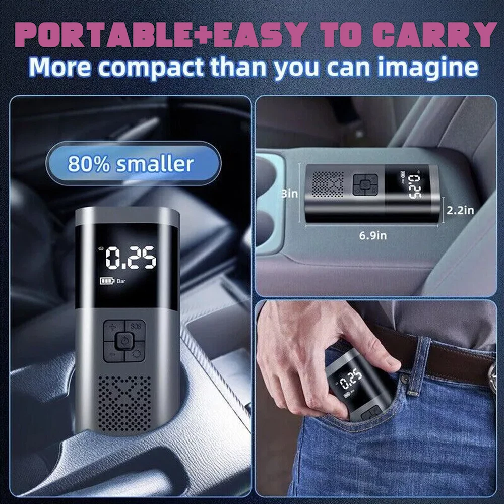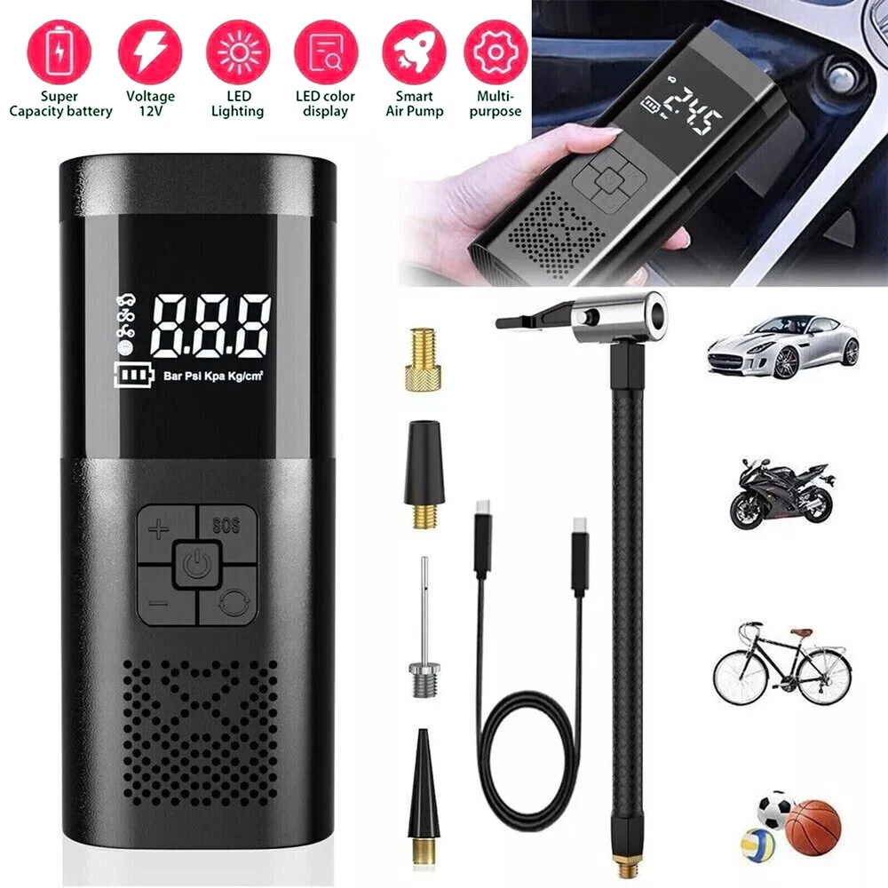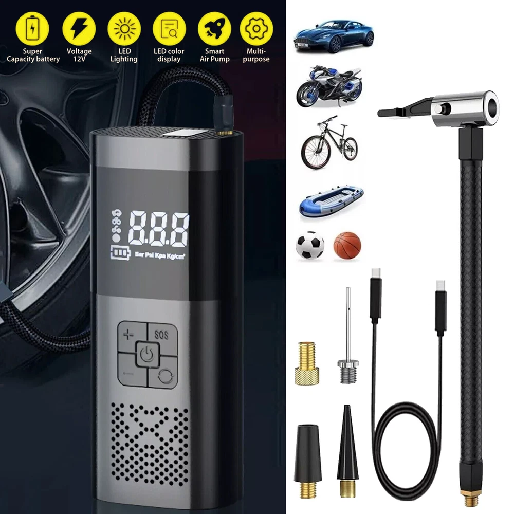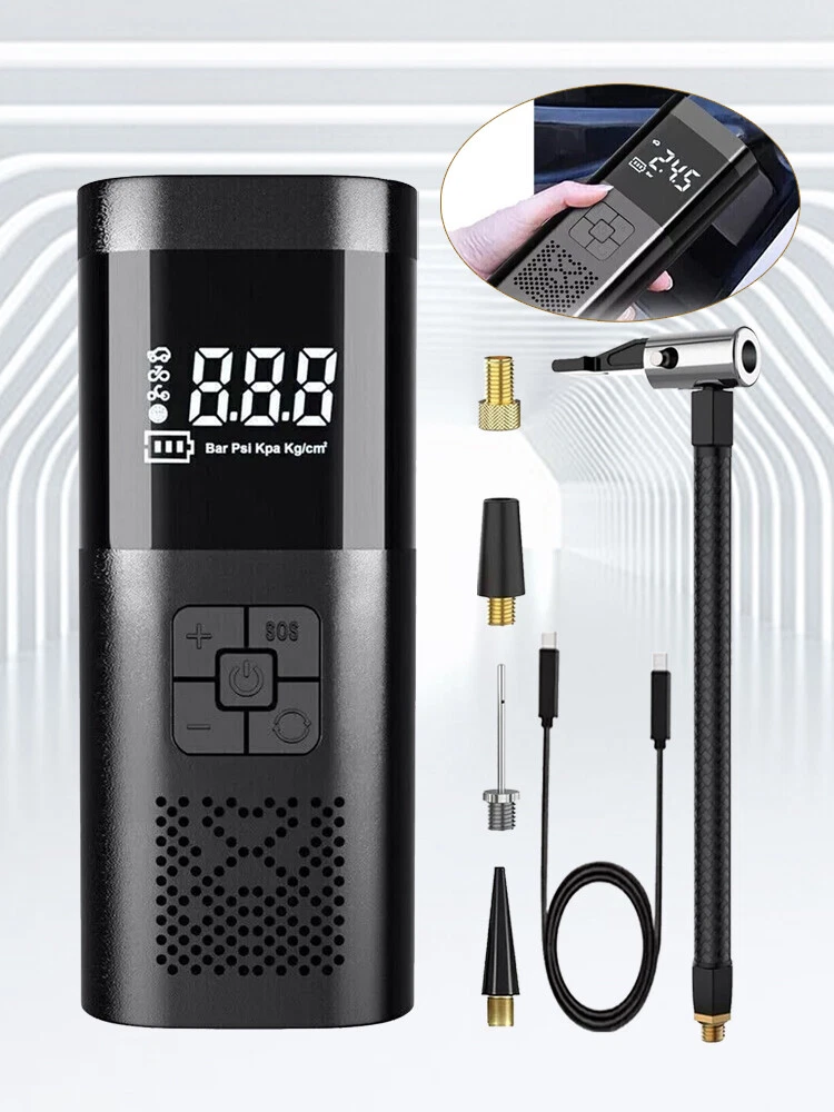 Description Features. 150PSI Smart Air Pump: This practical electric air pump mini inflator has a 150PSI maximum inflation pressure. Plug it into the 12V power outlet in your car and attach the stem to the tire valve. One simple press on the car air compressor and it will do all the work for you. 4 Inflation Modes & Power Prompt: The LCD digital display panel will display 4 kinds of air pressure units "PSI", "BAR", "KPA", "Kg/m²". The digital display panel will have icons such as motorcycles, cars, and balls for selection. The corresponding safety air pressure has been set by default for the type of product. Multipurpose Nozzles: Comes with four different aeration nozzles that can be replaced to charge bicycles, motorcycles, automobiles, air cushions, basketballs, and other products, simple and very convenient. The wired air pump is connected to the power supply through the attached car power cord. LED Lighting For Night Time: Power tire compressor has 3 LED lighting modes (Ordinary White light & Slow frequency warning light& Hazard warning light) for you to use as an outdoor lighting source. It is a helpful companion for emergency or daily use. Easy to operate: After connecting the tire valve, the current tire pressure is displayed, and the tire pressure can be monitored at any time. When the inflation reaches the preset value, the air pump will automatically stop inflation to avoid over-inflation. Portable & Easy To Carry: Portable tire pump comes with a carrying bag and a well-made mini electric tire inflator is designed to be easily stored in your car. Multipurpose Nozzles: Comes with four different aeration nozzles that can be replaced to charge bicycles, motorcycles, automobiles, air cushions, basketballs, and other products, simple and very convenient. The wired air pump is connected to the power supply through the attached car power cord. Specifications. ▪️ Name: Electric handheld inflatable pump ▪️ Material: poly carbon (pc) ▪️ Color: black ▪️ Display: LCD display ▪️ Maximum working pressure 150 PSI ▪️ Product Size: 175*75*55mm ▪️ Cylinder: 19 single cylinder ▪️ Power: 120W ▪️ Rated voltage: 12V ▪️ Function: Inflatable pump, lighting, warning light, mobile power ▪️ Application: cars, bicycles, electric cars, motorcycles, balls, etc. Package includes. ▪️ 1 x Inflator ▪️ 1 x USB Cable ▪️ 1 x Inflator Tube ▪️ 4 x Inflator Adapter ▪️ 1 x Storage Bag Friendly Tips: 1.Due to the light and screen difference, the item's color maybe slightly different from the pictures. Please understand. 2.Please allow 1-2cm differences because of the manual measurement. Payment 1. We only accept payment through Payoneer. 2. Please make sure you have a valid account prior bidding. 3. Please pay for your item within 7 days after you order. Shipping 1. Buyer take responsibility in import / tax cost (not included in item price) 2. Pls contact with us to confirm extra cost if you need to upgrade the shipping option 3. If there's any concern about shipping, pls contact with us for further confirmation Return Policy 1. Refund or Replacement request is available within 30 days after parcel received and returning the item as the same condition as received. Please contact us to request a return authorization. Your name, auction number, and reason for return should be included in the message. 2. All items returned must contain all original packaging materials. Please repack the item carefully. Items returned will be tested and a new replacement will be shipping to buyer punctually. 3. In the event that a suitable replacement is not available then a refund will be issued. Shipping, handling and insurance fees are non-refundable. 4.If the item was found non-defective, the item will be sent back to buyer at buyer's expense. Items returned without authorization will be refused and returned to sender/buyer. 5. Buyer pay the shipping cost if the item damaged artificially, or buyer say "not like it", "size/color was different per they imaginary", etc. Contact us Please contact us via ebay message any time, all questions will be replied within 12 working hours. Customer Support Online : 9:00am - 22:00pm (GMT +8) Everyday