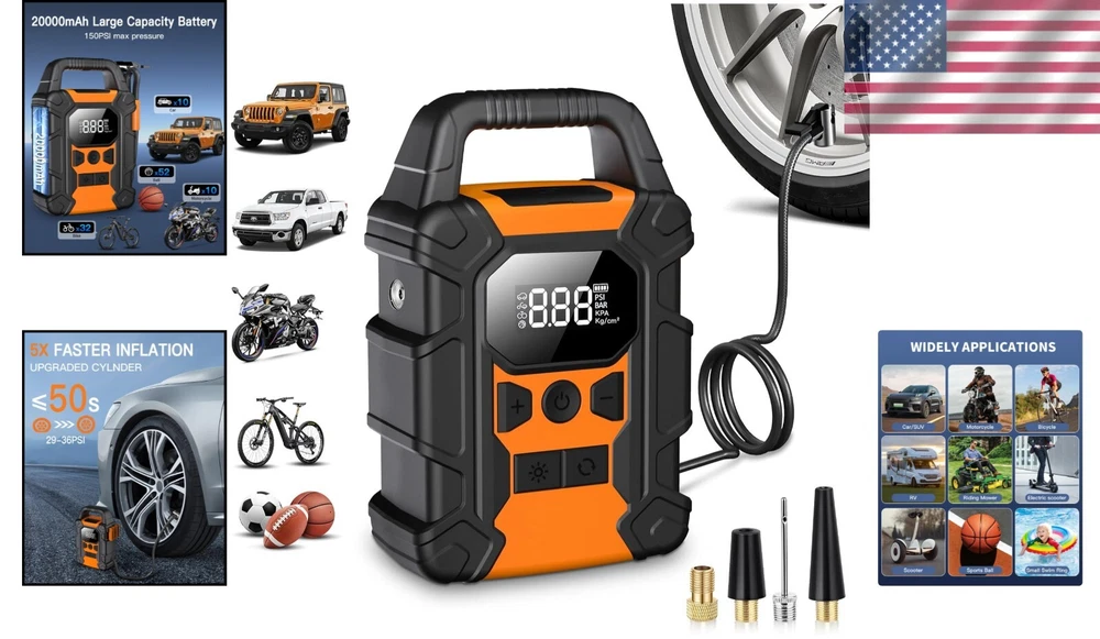 150 PSI Cordless Tire Inflator with LED Light, Portable Air Compressor for Cars ‹ › ‹ › ‹ › ‹ › ‹ › ‹ › ‹ › ‹ › ‹ › ‹ › ‹ › 150 PSI Cordless Tire Inflator with LED Light -Portable Air Compressor for Cars Features: High-performance chip reaches up to 150 PSI. Inflate a 185/65/R15 car tire from 0 PSI to 36 PSI in just 5 minutes. Quick inflation from 29 PSI to 36 PSI in 50 seconds. Large LED display for real-time pressure values and preset pressure notifications. 5 inflation modes including presets for car, bike, motorcycle, and ball. Custom mode allows user to set pressure values for various inflation needs. Built-in pressure gauge and LCD screen for monitoring tire pressure accurately. Bright LED light for use in low-light conditions. 20000mAh rechargeable battery for extended usage; also doubles as a power bank. Benefits: Faster inflation saves time and gives you peace of mind. Easy-to-read display helps you monitor inflation progress effortlessly. Versatile usability for different types of vehicles and equipment. Portable and compact design makes it travel-friendly. Gives extra functionality as a power bank for electronic devices. Perfect gift for drivers, cyclists, and adventure seekers. Why choose our Cordless Tire Inflator? Are you tired of struggling with traditional tire pumps? Our 150 PSI Cordless Tire Inflator is designed to deliver high performance and convenience right at your fingertips. With an impressive inflation speed and multiple modes, it caters to all your inflation needs. The bright LED light and powerful rechargeable battery ensure you're ready for any situation, day or night. Invest in peace of mind and efficiency. Make our portable air compressor your go-to companion for all your inflation needs. Order now and experience the difference! Shipping Free & Fast Shipping - We offer free shipping to most of the USA with a normal delivery time of 3-7 days. However, due to the current situation, additional delivery time (up to 3 weeks) may be required for some items. Alternative Carriers - We may use alternative carriers (e.g. USPS, FedEx, UPS, etc.) to ensure your package arrives safely and on time. Due to the use of multiple carriers, we are unable to provide a tracking number automatically. Handling Time - Orders are processed and shipped within 1-2 business days of receiving cleared payment. Shipping Restrictions - Shipping to Alaska, Hawaii, Puerto Rico, Guam, and other US territories may incur shipping charges or delivery restrictions. Please contact us before ordering, or your order can be refunded/cancelled. State Restrictions - There may be restrictions based on your state of purchase. For example, certain items may not be shipped to California due to state regulations. Contact for Tracking Updates - If you require tracking updates or have any concerns about the delivery of your order, please feel free to contact us, and we will be happy to assist you. Return 30-Day Hassle-Free Returns - We want you to be completely satisfied with your purchase. If you are not, you can return the item within 30 days of receiving it for a full refund or exchange. Easy Return Process - To start a return, simply contact us and we will provide you with a prepaid return shipping label and detailed instructions. Restocking Fee - There are no restocking fees for returns. However, the buyer is responsible for return shipping costs if the return is not due to a seller's error. Refund Processing Time - Refunds will be processed within 5 business days of receiving the returned item in its original condition. Payment We accept all major credit cards, PayPal, and Apple Pay for your convenience. Your payment information is secure and encrypted to ensure a safe and seamless transaction. Please complete your payment within 3 days of purchase to avoid any delays in shipping. Feedback Your feedback is extremely important to us. We strive to provide the best products and customer service possible. If you are satisfied with your purchase, please take a moment to leave us a positive review. If you have any concerns or issues with your order, please contact us before leaving negative feedback. We are committed to resolving any problems and ensuring your satisfaction. Contact Us If you have any questions or concerns, please feel free to reach out to our customer support team. You can contact us through the eBay messaging system. We are available Monday to Friday, 9:00 am to 5:00 pm EST, and we will do our best to respond to your inquiry within 24 hours. Buy it now and enjoy a pleasant shopping experience! UPC: Not Set Model: Not Set Item Width: Not Set Item Length: Not Set Item Height: Not Set Item Diameter: Not Set Item Weight: Not Set Unit Quantity: Not Set Set Includes: Not Set Brand: Unbranded Type: Air Compressor Portability: Portable Voltage: 12 V Power Source: Battery Powered Maximum Working Pressure: 150 Psi Tank Capacity: Not Set Lubrication Type: Not Set Horse Power: Not Set Tank Material: Not Set Flow Rate: Not Set MPN: Not Set Color: Black Country/Region of Manufacture: Not Set Manufacturer Warranty: Not Set Unit Type: Not Set