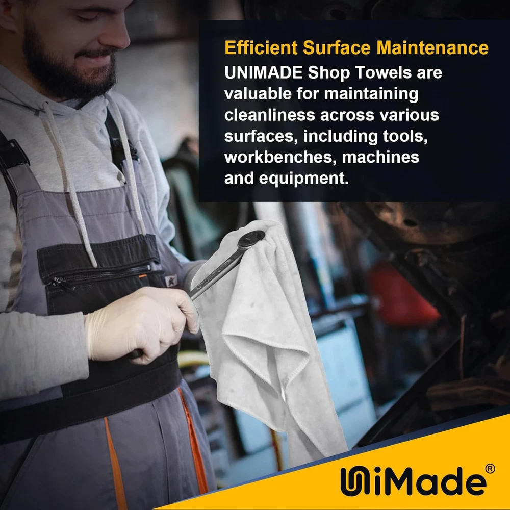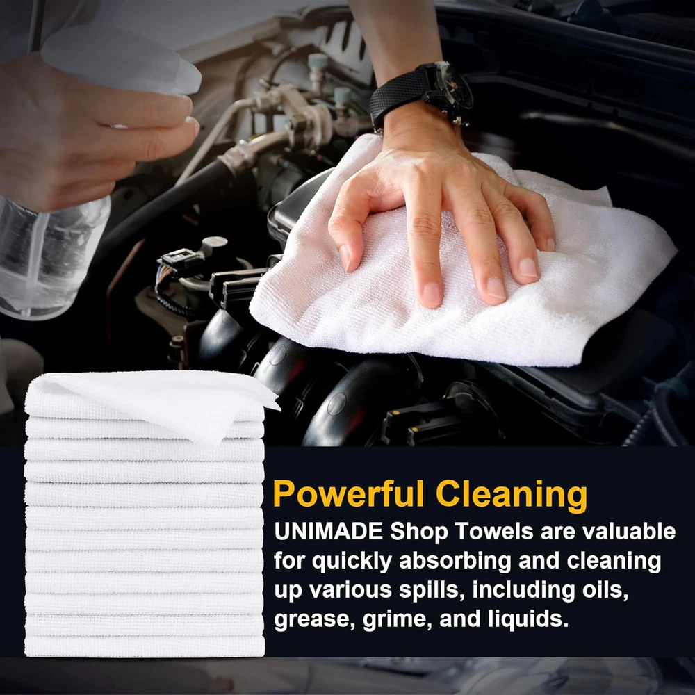 Powerful Cleaning: Unimade commercial grade microfiber cleaning cloths boast exceptional cleaning power, tackling messes with ease. From spills to stains, they deliver a thorough clean every time. Say goodbye to stubborn stains and spills with our shop towels No Scratching& Lint-Free: Our shop towels are luxuriously soft and designed to pamper without a trace. These microfiber towels for car are lint-free and can prevent residue or fibers from clinging to surfaces. Ideal for multiple tasks including car care, cleaning machinery, surface wiping, hand drying, and spill absorption Super Absorbent& Quick Dry: Crafted from premium microfiber, UNIMADE cleaning rags excel in soaking up oils, liquids, and workshop spills. Their highly absorbent qualities enhance their effectiveness in removing stubborn grime and grease Versatile Workshop Essential: UNIMADE shop rags find widespread use in automotive, workshops, garages, manufacturing facilities, housekeeping, Restaurant and diverse industrial settings, adeptly handling tasks like polishing, detailing, and various cleaning applications. Our cleaning towels are able to efficiently clean grease, oil, grime, fluid spills, tools, and parts, offering versatile and effective cleaning capabilities for various workshop needs Reusable& Cost-Efficient: Compared to paper towels, our shop towel cleaning rags are machine washable and reusable, reducing waste and ensuring long-lasting performance, making them a cost-efficient choice for your everyday routine Product Description