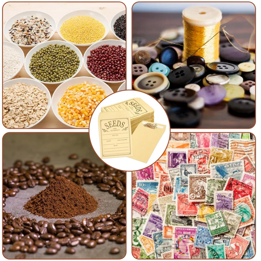 Features: ----Our seed envelopes are made of high-quality brown paper, trustworthy and sturdy, and not easy to break. The seed packets can keep the seeds in a dry and tidy environment. ----The front of these seed packet envelopes is designed with the seed type, type, collection date, and note slogans. You can write the seed information when placing the seeds. It can help you find the corresponding flower and vegetable seeds clearly and quickly. ----In addition to seed storage, these seed envelopes resealable can also help you store coins, coffee beans, nuts, buttons, stickers, and other small items. Specifications: Material: High-quality brown paper Color: Brown Size: 3.1 x 4.7 inches Package Includes: 150 x Seed envelopes 【Thoughtful Design】 The front of these seed packets envelopes is designed with the seed type, type, collection date, and note slogans. You can write the seed information when placing the seeds. The next time you use it, it can help you find the corresponding flower and vegetable seeds clearly and quickly. 【High Quality Material】 Our seed envelopes resealable are made of high-quality brown paper, trustworthy and sturdy, and not easy to break, the seed packets can keep the seeds in a dry and tidy environment, and you can use them for a long time. 【Easy To Use】 Our seed saving envelopes have a self-adhesive closure, put the seeds into the seed-saving envelopes, peel off the double-sided adhesive paper, fold and press to seal. There is enough space for you to write the seed information and complete the sealed storage of seeds. 【Wide Applications】 In addition to seed storage, these seed envelopes resealable can also help you store coins, coffee beans, nuts, buttons, stickers, and other small items. Seed packets can always keep your beloved thing clean and tidy it is a great storage tool. 【What You Will Get】 The package contains 150 brown paper seed envelopes. Seed bags measure approximately 3.1 x 4.7 inches. There is enough quantity for you to store seeds. If you are Unsatisfied with the product you received, please tell us, and we will solve the problem for you as soon as possible.