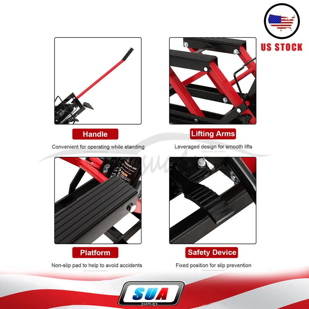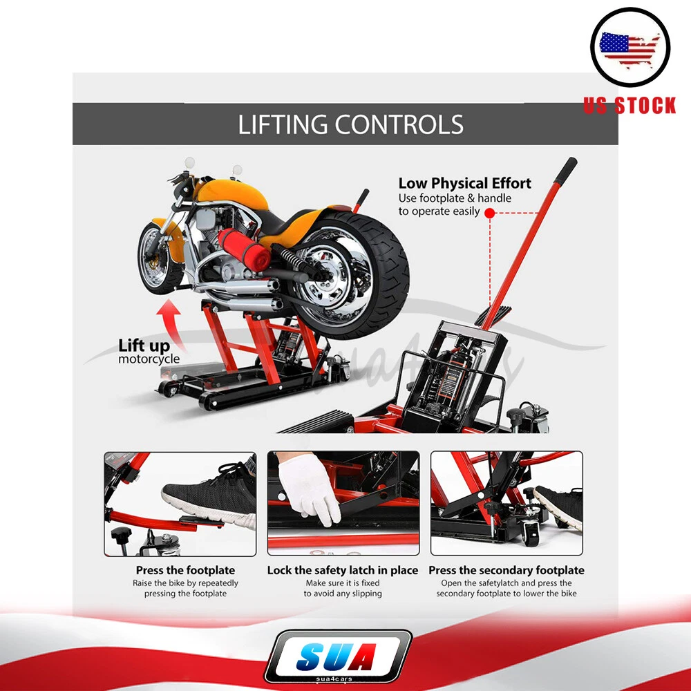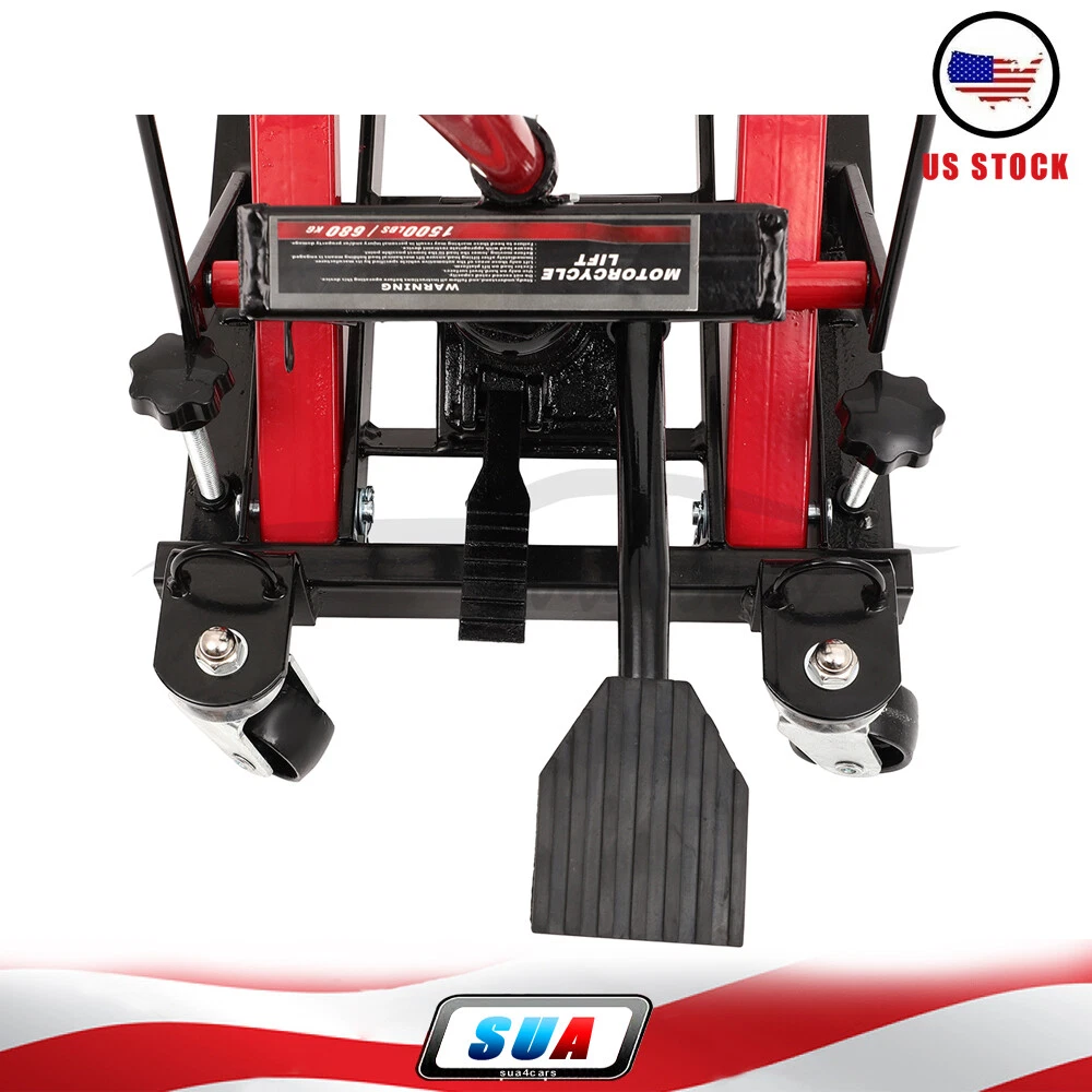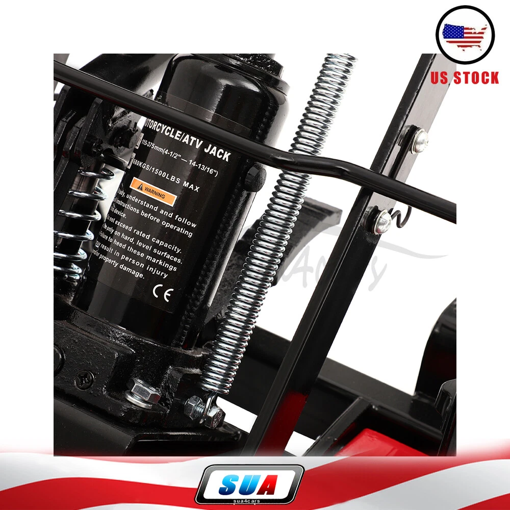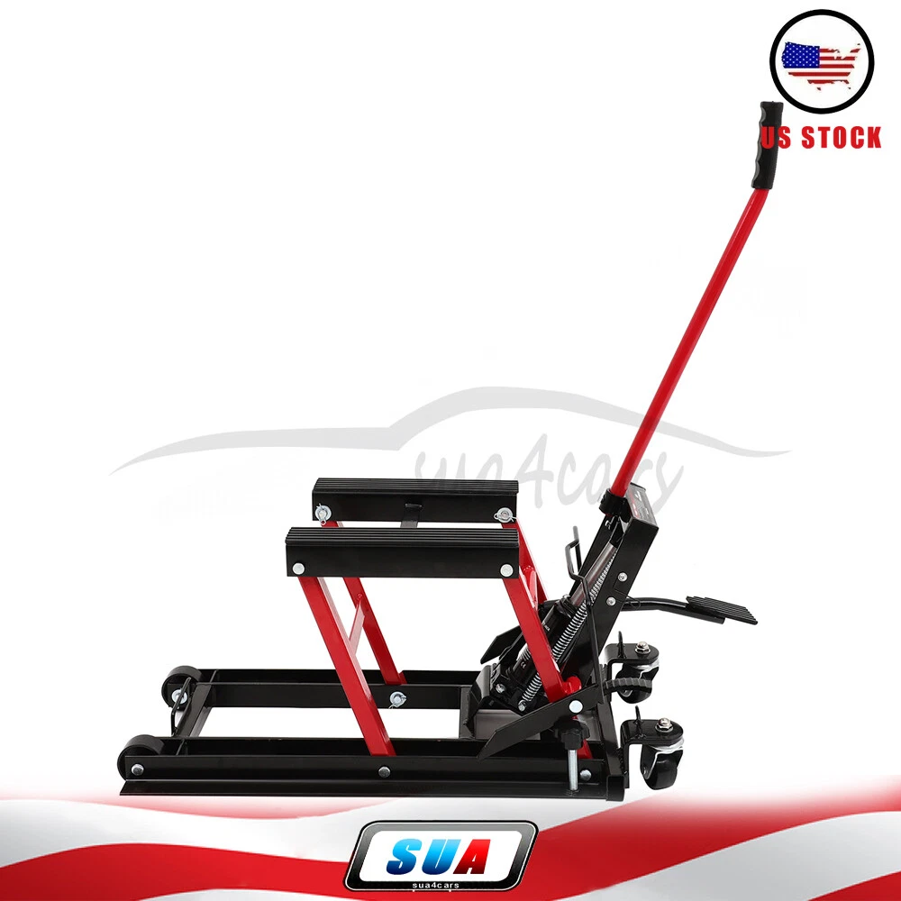Description: Our 1500 LBS motorcycle/ ATV lifts is Made from high strength steel. We offer the best motorcycle/ ATV lifts for the hobbyist as well as the professional motorcycle shop. When loaded, the adjustable locking screws and wheels improve stability and safety. But it will also roll easily on four durable casters, making it easy to position, easy to adjust and easy to store. It can be used alone or with almost any motorcycle lift. It has a 1500 lb. capacity, made of solid steel and it's easy to use, and so strong it'll easily handle small vehicles like dirt bikes, jet skis and ATVs. Features: 1500 LBS ATV Motorcycle Hydraulic Lift Jack Hoist Stand Drit Bike Adjustable Description: Our 1500 LBS motorcycle/ ATV lifts is Made from high strength steel. We offer the best motorcycle/ ATV lifts for the hobbyist as well as the professional motorcycle shop. When loaded, the adjustable locking screws and wheels improve stability and safety. But it will also roll easily on four durable casters, making it easy to position, easy to adjust and easy to store. It can be used alone or with almost any motorcycle lift. It has a 1500 lb. capacity, made of solid steel and it's easy to use, and so strong it'll easily handle small vehicles like dirt bikes, jet skis and ATVs. Features: Brand new and good quality Heavy duty steel construction is built to last. Designed to ideal lift for motorcycles, ATVs, tractors, personal watercraft and snowmobiles Swivel casters make it easy to move, position and transport Includes jack, handle, two adapter bars and manual lift capacity of 1,500 pounds Safety lock with multiple locking positions. T-Handle provides secure grip and can be removed. Can lift small vehicles up to up to 15" high Assembly required Specifications: Color: red /black Material: Steel Maximum lift height:15" Minimum height:4.5" Product size:32.3"(L)X 16.4"(W)X5.4"(H) Platform size:12.2"(L) X 11.8"(W) Lift & Jack Type: Floor jacks Lift Capacity: 1500 lbs Package weight:56.37lbs Package Content: 1 x Lift Jack 1 x Handle Item Specifics Manufacturer Part Number SUA16556304CAR Brand SUA4cars Condition New Weight 56.37 LB Drive Hydraulic Type Motorcycle ATV Jack Other Part Number Dirt Bikes, Motorcycles, Jet Skis, Snow Mobiles, and ATVs Maximum Lift Height 15 inch Minimum Height 4.5 inch Lifting Capacity 1100LB Custom Bundle No Return Policy 30 Days Material Carbon Steel Features Adjustable, Heavy Duty Ship from Ontraio, California Color Red Within User Manual Yes Modified Item No Product Type Automotive Lifts & Stands Style 1500 LB Motorcycle Hoist Jack Payment 1.We only accept PayPal. 2.Please do not use the PayPal note field to indicate us to ship to other address. The note there will NOT be read. If you want to change the shipping address, please contact us by eBay messages. 3.(if you want cancel orders or change address pls contact us within 6 hours after payment,or we are not responsible for shipping a replacement.) Shipping 1. Orders processed within 24 hours of payment verification. 2. We only ship to confirmed PAYPAL addresses. Your PAYPAL address must match your Shipping address. 3. The images shown are not the actual item and are for your reference only. 4. If you have not received your shipment within 15 days from payment , please contact us. We will track the shipment and get back to you as soon as possible with a reply. Our goal is customer satisfaction! Returns 1. You have 30 days to contact us and 10 days to return it from the date it was received. If this item is in your possession more than 7 day s, it is considered used and we will not issue you a refund or replacement. There are NO EXCEPTIONS! 2. All returned items must be in the original packaging and you must vide us with the shipping tracking number, specific reason for the return, and item custom lable. 3. We will refund your full winning bid amount, upon receipt of the item in its original condition and packaging with all components and accessories included, AFTER both Buyer and Seller cancel the transaction from eBay. OR, you may choose to have a replacement. 4. Return shipping is to be paid by the Buyer. Custome Services Q: How do I pay for my purchase? A: MY store accepts PayPal. Q: When will the item be shipped out? A: This item will be shipped with 2 business day once payment completed. Q: Where is my tracking number? A: Please log on your account, click "my eBay"-->"my summary", or open your email box and find the shipping notification email. Q: How do I return an item? A: My tore accepts returns. Items must be returned within 60 days. Refunds will be given as money back. Please contact our customer service before you return an item. Feedback 1. We will leave a feedback once we get your payment. 2. If you are dissatisfied for any reason, please do contact us a feedback. We will work hard to make sure EVERY CUSTOMER 100% SATISFIED and resolve any problem for you and always leave a feedback to all our customers. 3. If you are satisfied with the product you received, wish you can leave us a feedback. DESCRIPTION PAYMENT SHIPPING RETURN POLICY CONTACT US 1500 LBS ATV Motorcycle Hydraulic Lift Jack Hoist Stand Drit Bike Adjustable Description: Our 1500 LBS motorcycle/ ATV lifts is Made from high strength steel. We offer the best motorcycle/ ATV lifts for the hobbyist as well as the professional motorcycle shop. When loaded, the adjustable locking screws and wheels improve stability and safety. But it will also roll easily on four durable casters, making it easy to position, easy to adjust and easy to store. It can be used alone or with almost any motorcycle lift. It has a 1500 lb. capacity, made of solid steel and it's easy to use, and so strong it'll easily handle small vehicles like dirt bikes, jet skis and ATVs. Features: Brand new and good quality Heavy duty steel construction is built to last. Designed to ideal lift for motorcycles, ATVs, tractors, personal watercraft and snowmobiles Swivel casters make it easy to move, pos