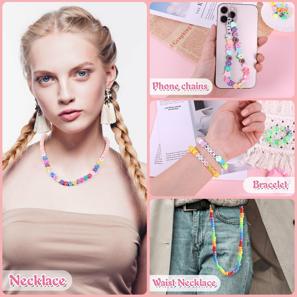 🌈【Upgraded Bracelet Making Kit】Pony beads kit including 2 boxs contains 600pcs about pony beads in 24 colors, 870pcs letter beads in 5 types, about 40pcs polymer clay beads in 2 types(fruit beads and flower beads), 70pcs heart beads in 2 types, 40pcs plastic beads in 2 types (star beads and heart beads), 1 roll of 10m elastic string, 6 colors nylon strings, 1 scissor and tweezer. More quantity pony beads and more types of letter beads allow you to create more interesting DIY jewelry projects! 🍭【Premium Safe Materials】Our pony beads for bracelets made of healthy and environmentally friendly materials with smooth surfaces and exquisite appearance. non-toxic and durable, not easy to fade, comfortable to wear, uniformly shaped, lightweight. This pony bead bracelet making kit is safe for adults ! Great for beginner bracelet makers, this will be hours of fun. 👑【Comfortable Size】Our kandi beads measure approximately 6x9mm, the letter beads and heart beads are 6x6mm, and both of them have a diameter of the hole is 3.5mm. The bead set has 7 rolls of elastic thread and 870pcs of 5 different types of letter beads, which are perfectly suited to spell out the phrase you want. Every color bead is separately stored in each grid plastic box, which is convenient to store and carry. It's so nicely packaged too to give someone an easy gift. 🎀【Wide Application】These different kinds of beads are very suitable for making kandi necklaces, bracelets, hair braids, pendants, etc. Not just bracelet making kit, you can also create fun keychains, You can also use your imagination to create frogs, turtles, dolphins, and so many more! Attach your bead pets to the included key rings, to decorate your backpack, keys. 🎁【Great Gift Choice】If you and your friends are interested in kandi and bracelet making, get this beads kit ! Our bracelet making kit will not only enhance your friendship but also exercise your hands-on skills! This kandi beads bracelet kit is A meaningful and cheerful gift choice for birthdays, Christmas, Thanksgiving Day, etc. ❤️【Quality Promise】We are committed to providing high-quality and reasonably priced bead kits for all our customers and value your thoughts and satisfaction, If you find any problem with our beads, please feel free to contact us. We promise to give you a satisfactory solution within 24 hours. Product Description