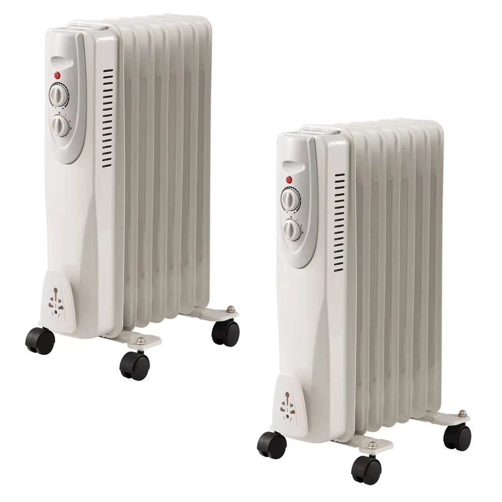 Stay warm and cozy with this powerful 1500-watt oil-filled radiator heater. Featuring 7 fins for optimal heat distribution, this portable heater offers three versatile electric settings to match your comfort needs. The sleek white design includes convenient castor wheels for easy mobility between rooms, while the user-friendly control panel features adjustable temperature settings and a power indicator light. Perfect for supplemental heating in bedrooms, offices, or any living space up to 150 square feet. The oil-filled design provides consistent, long-lasting warmth even after powering off, making it an efficient heating solution. Built with safety in mind, this radiator heater maintains a relatively cool exterior while operating. Its compact yet effective design makes it an ideal choice for those seeking reliable portable heating during colder months. About this item