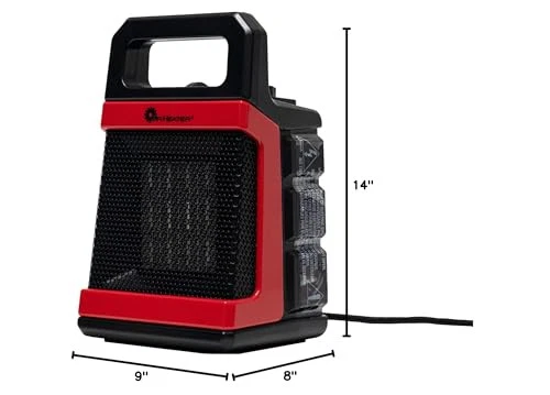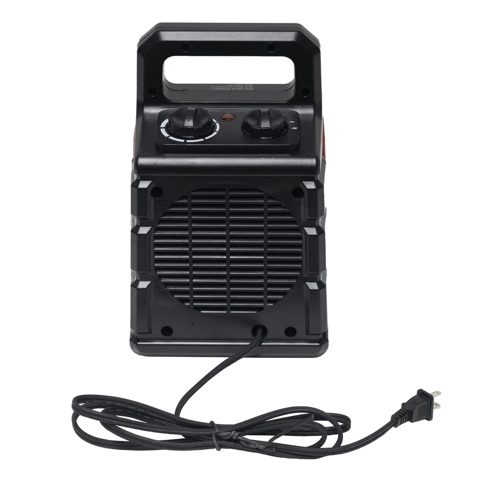 For a little extra heat, the Portable Forced Air Heater will fit your needs. Its heat settings provide up to 5,118 BTUs. Powered by a quiet fan, the warmth spreads to cover 170 sq ft. A small footprint and built-in handle keeps the heater portable. It is controlled with a thermostat so your space will stay comfortable at your desired temperature. Whether it is drafty at the office or you want some extra warmth while relaxing on the couch, the Portable Forced Air Heater is your indoor heat source solution. 1500 Watts / 120 Volts 5,118 BTU per hour Heats up to 170 sq ft Instant, whisper quiet heat Thermostatically controlled