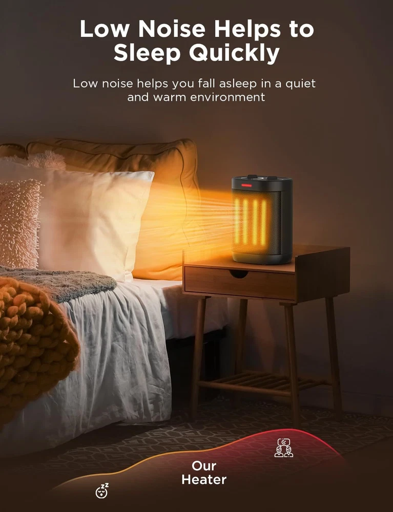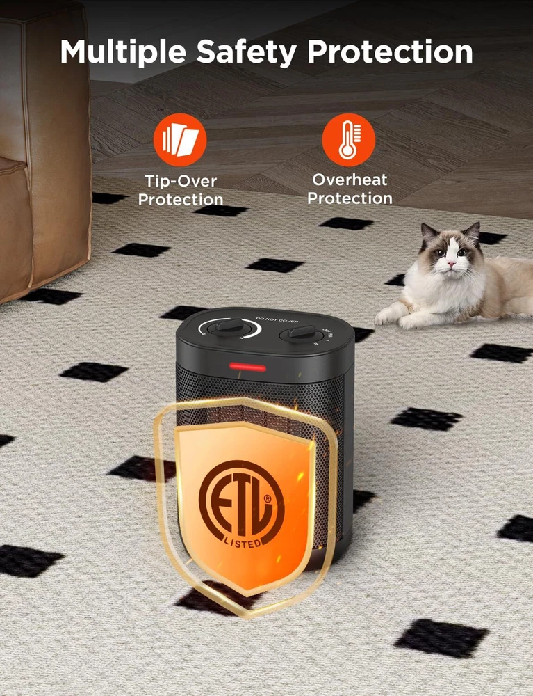 Powerful Heating Technology: The electric heater adopts advanced PTC ceramic heating technology, which can make you feel warm in two seconds, and if you feel overheated you can use the adjustable thermostat, which is convenient for you to feel the most suitable temperature. Reliable Safety Protection System: ETL certified ceramic electric heater is safer in use, when the heater is overheated, it will automatically cut off the power, and if the electric heater is knocked over accidentally it will immediately turn off the electric heater to eliminate safety hazards. Multiple Mode Selection: The space heater has three different function modes: Ⅰ 1500 watt high heat, Ⅱ 900 watt low heat, Ⅲ fan only, you can choose the corresponding mode according to your needs and enjoy the comfortable experience it brings to you. The Best Size for You: Heater for indoor use size is 6.29x4.72x8.78 inch, you can put it on your desk without taking up space. There is a handle on the back of the heater, so you can easily lift the heater with one hand and change its position to bring warmth to all corners of your home. Winter Essential: This powerful portable heater is ideal for every family in winter. Compared with the traditional heating system, it is more environmentally friendly and energy-saving in the heating process. It's also a great gift to give to family and friends.