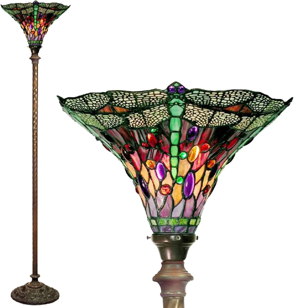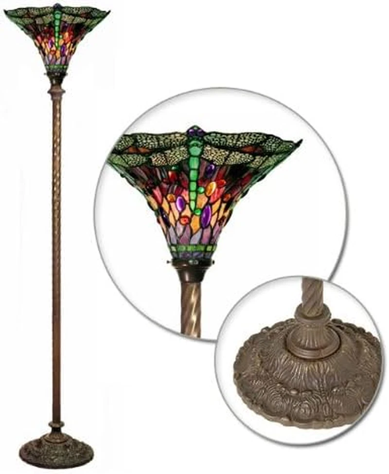 1509+BB75B Tiffany-Style Dragonfly Torchiere Floor Lamp, Purple