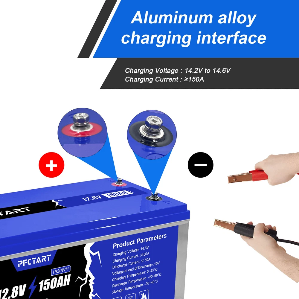 Chemical Composition: Lithium Iron Phosphate (LiFePO4) Operating Temperature (Discharge): -4°F~140°F Country/Region of Manufacture: China System Configuration: Off-Grid Type: Rechargeable battery Life Cycles: More than 4500 With 80% DOD UPC: Does not apply Voltage: 12 V Size: 20.94*8.14*8.26 inch Weight: 17.2 KG Application: Campers, Off-grid applications., RV, Camping/Hiking, Home/Garden, Solar Battery Size: 12V gtin13: Does not apply Life Time: 10 Years Amp Hours: 150 AH Brand: PFCTART Operating Temperature (Charge): 32°F~122°F