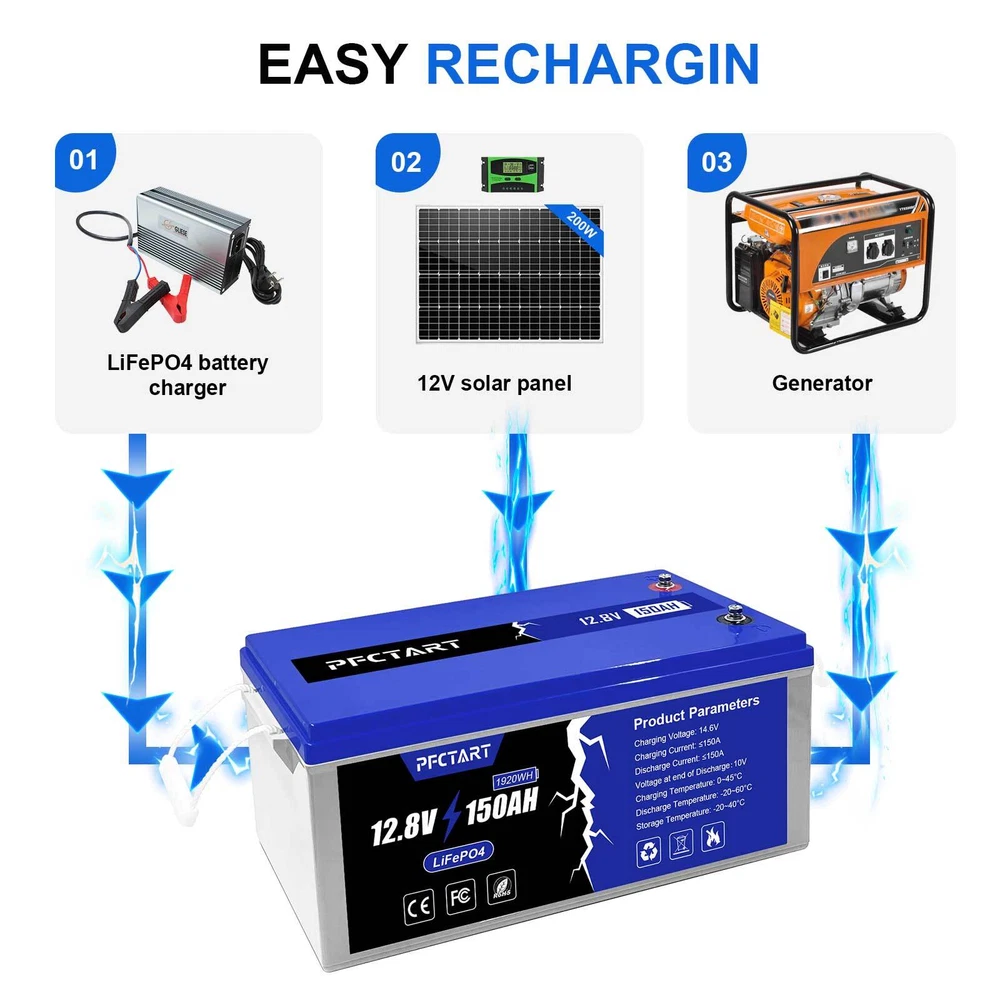 150Ah LiFePO4 Deep Cycle Battery for RV Motor Carts by PFCTART