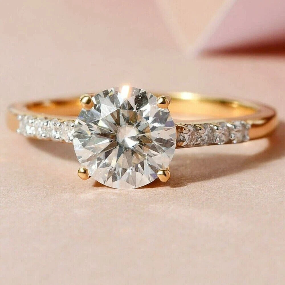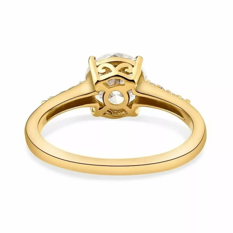 Elevate your special moments with this exquisite 1.50CT Round Cut Lab Created Diamond Women's Wedding Ring, elegantly crafted in 14K Yellow Gold Plated. The ring showcases a stunning solitaire with accents style, featuring a brilliant round-cut diamond that captures the light with every movement. Complemented by additional diamonds along the band, each stone is meticulously set in a prong setting, ensuring secure placement and maximum brilliance. Designed for versatility, this wedding ring is available in all sizes and can be personalized to fit your unique preference. The thoughtful details, including a floral pattern and engraved features, add a touch of romance and sophistication to this timeless piece. Whether celebrating an anniversary, birthday, Christmas, engagement, or Valentine's Day, this ring is an enduring symbol of love and commitment.