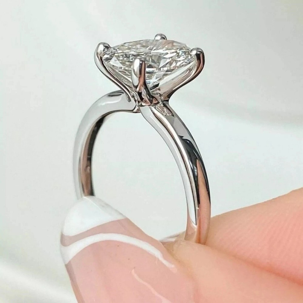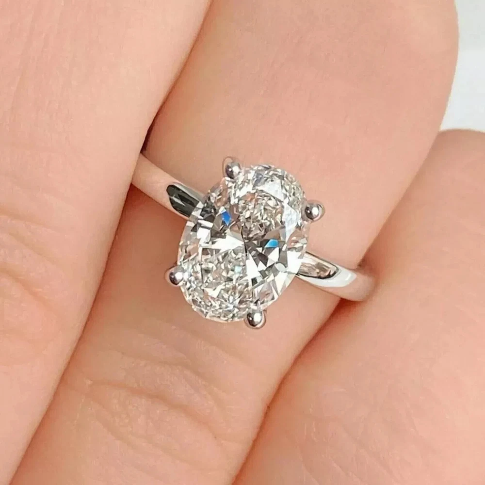 Elegant in its simplicity, this women's engagement ring features a striking 1.50CT oval-cut lab-created diamond set in a prong setting. The gleaming white Lab-Created diamond's clarity grade of VVS1 and excellent cut grade ensure a sparkling display of light and color. With a metal purity of 14k white gold plating over sterling silver, the ring offers both durability and a touch of luxury. Crafted for versatility, the ring is suitable for a range of occasions from anniversaries and birthdays to engagements and milestones. The ring is available in all sizes, and customers are encouraged to share their preferred size for a perfect fit. The piece is proudly made in the United States, ensuring quality craftsmanship and attention to detail.