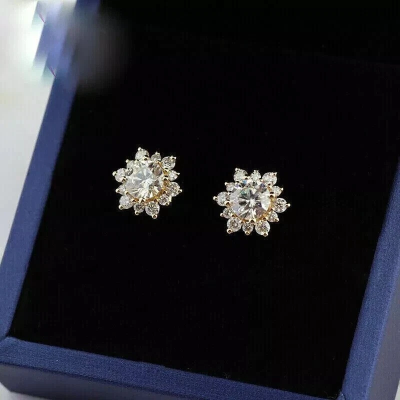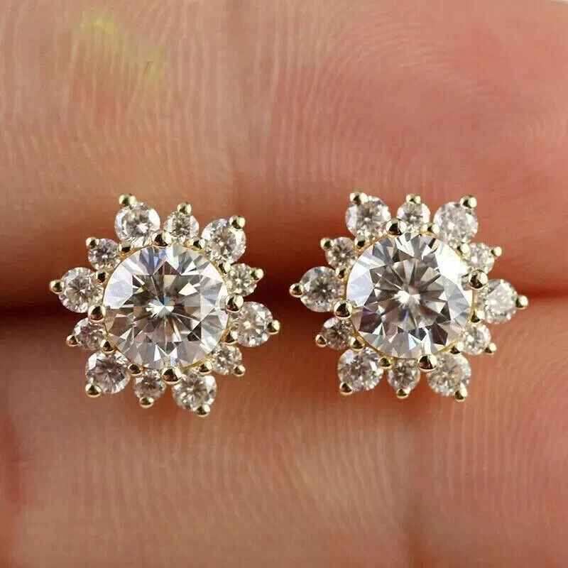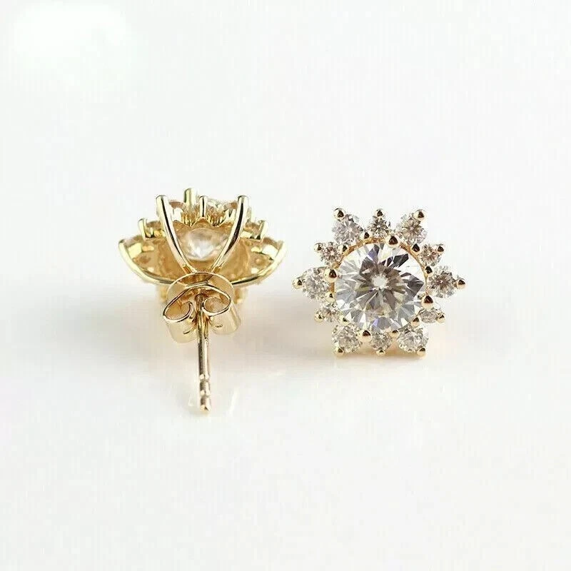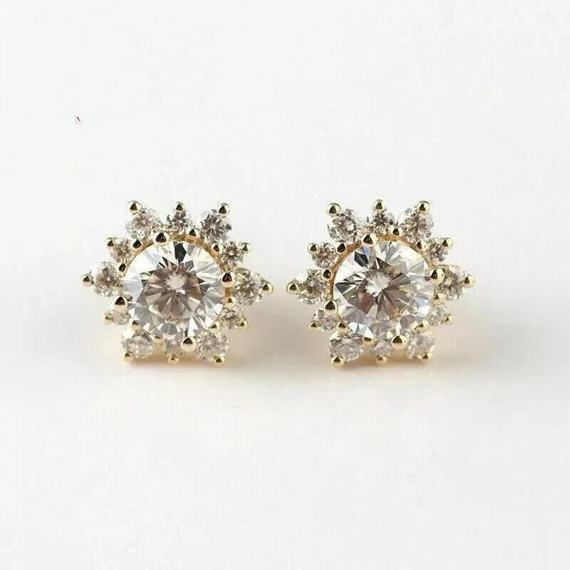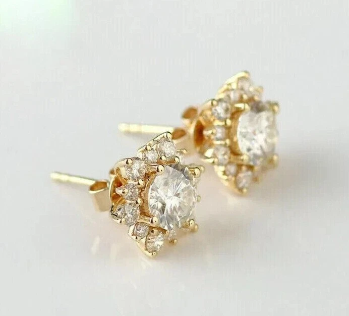 1.50Ct Round Cut Simulated Diamond Fancy Stud Earrings In 14K Yellow Gold Plated