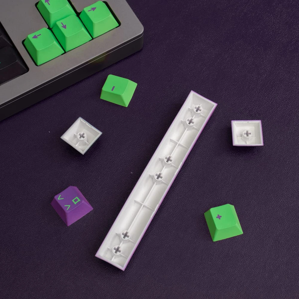 PBT Dye Sub-These keycaps are dye sub keycaps made of PBT material, so these keycaps are tichk without backlighting and the patterns on the keycaps without fading Wide Compatibility-This set of keycaps has a total of 150 keys. It contains various sizes of keycaps that are suitable for most 61/64/87/104/108 cherry mx switches mechanical keyboards. If you are unsure if it is suitable for your keyboard, please consult customer service for compatibility Cherry Profile-These keycaps are cherry keycaps with ergonomic design, which can bring you a comfortable typing experience and are suitable for office work and games Easy To Install-This product comes with a key puller, which can help you remove the keycap from the keyboard, very convenient Warm Tips-This product is a set of keycaps, not a keyboard. If the keycaps missing or broken, we will send you replacement keycaps