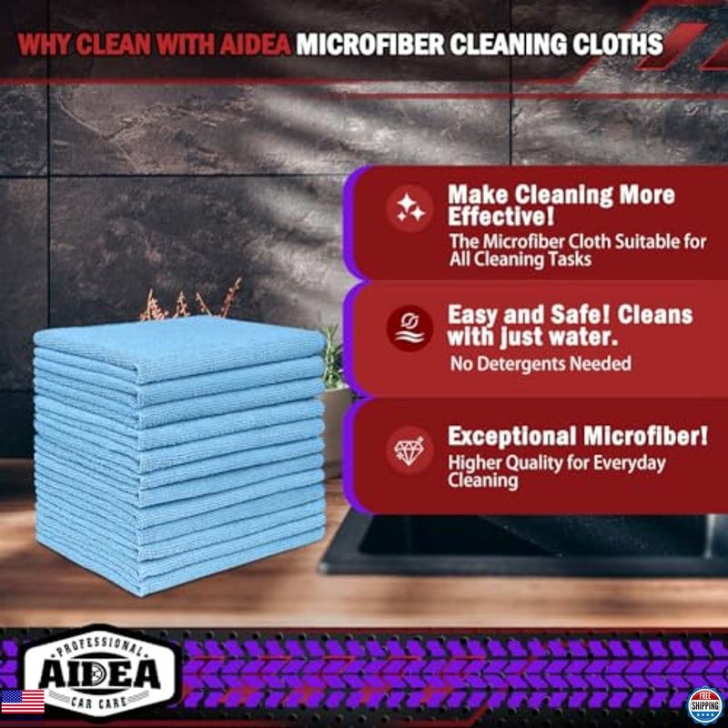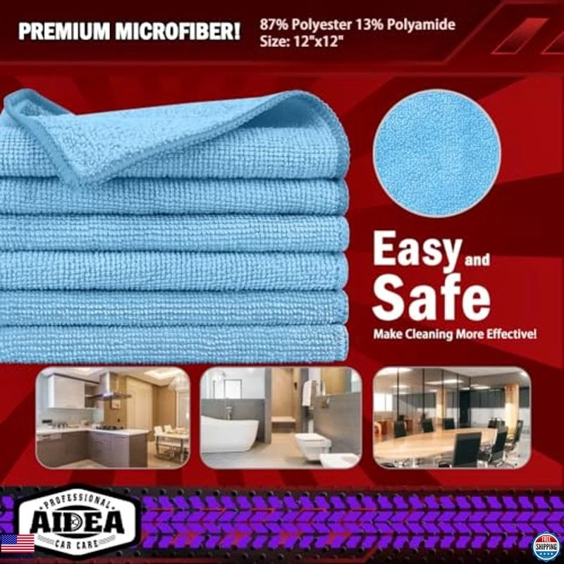 AIDEA Microfiber Cleaning Cloth Blue,150PK, Shop Rags, Microfiber Towels for Cars, Dusting Cloth Lint Free Rags, Absorbent Towels for SUVs, House, Kitchen, Mechanic, Workshops, 12"×12" Description Discover the ultimate cleaning solution with our versatile Microfiber Cleaning Cloths, available in convenient packs of 50, 100, or even 600! Perfect for tackling dust, spills, and surfaces with ease, these eco-friendly cloths offer exceptional absorbency and durability. Join thousands of satisfied customers who have rated our products 4.4 stars and above, and elevate your cleaning routine today! Product reference: B0DHVFVWBH. Features Super Absorbent: Experience the excellent quality of AIDEA all-purpose microfiber cleaning cloths; made from 87% polyester and 13% polyamide; offering exceptional absorbency and quickly wicking away water to keep you dry; ideal for swiftly and safely removing dirt, grime, and liquids Soft & Lint-Free: Our ultra-soft and non-abrasive microfiber towels ensure a scratch-free cleaning experience on surfaces, paint, glass, and coatings; effective in tackling the toughest grease, grime, and dirt; suitable for cleaning kitchens or cars; leaving surfaces shiny and pristine Remarkable Durability and Reusability: These microfiber dusting cloths can be washed and reused hundreds of times; resistant to shrinking, falling apart, or losing cleaning power; designed for long-term use Easy Care and Use: Available in five different colors for easy color coding of cleaning tasks; designed with premium fabrics that prevent scratching; ideal for polishing and drying without damaging surfaces; keeps your car shiny and intact Versatile: AIDEA cleaning rags are perfect for a variety of tasks; effective with just plain water; suitable for use in kitchens, bathrooms, and for dusting; an essential tool for any cleaning routine Shipping Free & Fast Shipping: We offer free shipping to most of the USA with a normal delivery time of 3-7 days. However, due to the current situation, additional delivery time (up to 3 weeks) may be required for some items. Alternative Carriers: We may use alternative carriers (e.g., USPS, FedEx, UPS) to ensure your package arrives safely and on time. Due to the use of multiple carriers, we are unable to provide a tracking number automatically. Handling Time: Orders are processed and shipped within 1-2 business days of receiving cleared payment. Shipping Restrictions: Shipping to Alaska, Hawaii, Puerto Rico, Guam, and other US territories may incur shipping charges or delivery restrictions. Please contact us before ordering, or your order can be refunded/cancelled. State Restrictions: Certain items may not be shipped to California due to state regulations. Contact for Tracking Updates: If you require tracking updates or have any concerns about the delivery of your order, please feel free to contact us, and we will be happy to assist you. Return Policy 30-Day Hassle-Free Returns: If you are not completely satisfied with your purchase, you can return the item for free within 30 days of receiving it for a full refund or exchange. Easy Return Process: Contact us, and we will provide you with a prepaid return shipping label and detailed instructions. No Restocking Fee: There are no restocking fees for returns. However, the buyer is responsible for return shipping costs if the return is not due to a seller's error. Refund Processing: Refunds will be processed within 1 business day of receiving the returned item in its original condition. Payment We accept all major credit cards, PayPal, and Pay for your convenience...