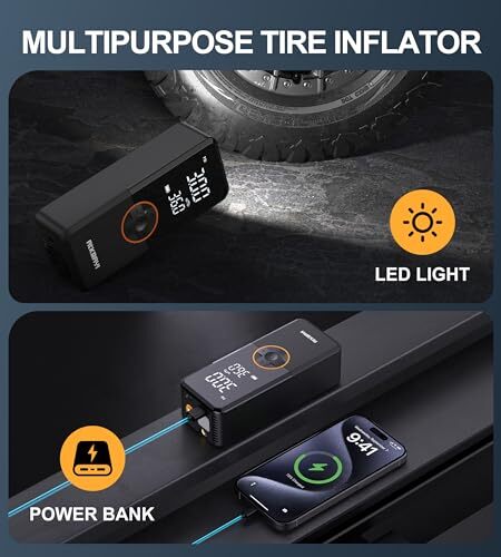 This portable tire inflator is a game-changer! It pumps up car, bike, and even sports balls in seconds with its powerful 150PSI output. The cordless design makes it super convenient, and the LED light is perfect for nighttime emergencies. Love the deflation mode for quick pressure adjustments. Super fast delivery and reliable seller—highly recommend for anyone who needs quick, hassle-free inflation on the go!