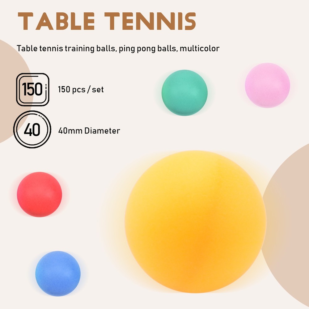 150Pcs/Pack Colored Balls 40mm Entertainment Table Tennis Balls Mixed3147 Material: 100% new environmentally friendly material-PP no odor, no harm to the body Level: Entertainment Table Tennis Applicable to: group entertainment games, advertising Note: The colors of table tennis are random and cannot be . size:Diameter 40mm Material:PP colour:Random Color Package Contents: 150 * colorful table tennis