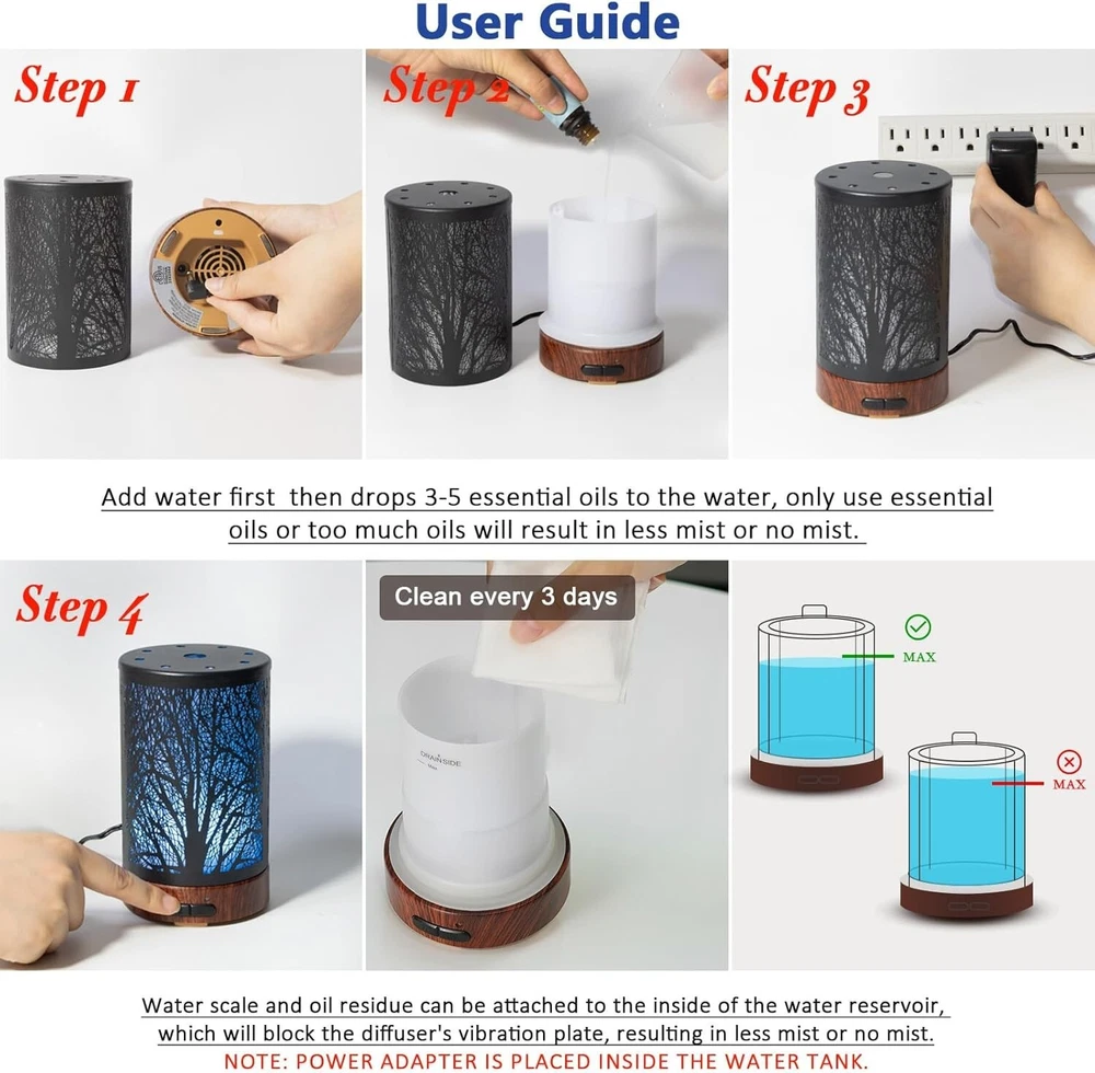 Aromatherapy Diffuser Set with 150ml Capacity & Auto Shut-Off Safety ‹ › ‹ › ‹ › ‹ › ‹ › ‹ › ‹ › ‹ › ‹ › Aromatherapy Diffuser Set Capacity: 150ml & Auto Shut-Off Safety 6 Essential Oils Included: Experience the soothing aromas of our top six essential oils: rose, lavender, eucalyptus, tea tree, peppermint, and lemongrass. Each packaged in a protective amber 10ml jar to maintain their integrity against sunlight. All-in-One Diffuser: This cool mist essential oil diffuser doubles as a night light. It features 7 soothing LED lights, allowing you to cycle through all colors or settle on a single hue for a calming ambiance. Whisper Quiet Ultrasonic Technology: Engineered with advanced ultrasonic technology, this diffuser operates quietly, ensuring a peaceful atmosphere for work or restful sleep. Safe for children and pets as it operates without heating. Safety Design & Auto Shut Off: Equipped with an automatic shut-off feature that activates when the water reservoir is empty, providing peace of mind when left unattended. Quality Assured: Our aromatherapy products are crafted from materials and undergo rigorous testing for safety and quality, ensuring you receive the best. Transform Your Space Infuse your home with tranquility and elegance. The Aromatherapy Diffuser Set not only enhances your space with enchanting aromas but also adds a touch of style through its sleek design and harmonious lighting. Whether gifting it to a loved one or treating yourself, this exquisite diffuser combines functionality with luxury. Why Choose Our Aromatherapy Diffuser? Don’t just mask odors or humidity—create an atmosphere that elevates your mood and well-being. With our comprehensive diffuser set, enjoy the therapeutic benefits of aromatherapy in a beautifully-designed device that seamlessly fits into any room decor. Perfect for bedrooms, offices, yoga studios, or any space that could use a gentle touch of relaxation. Order your Aromatherapy Diffuser Set today and embrace the art of tranquility! Shipping Free & Fast Shipping - We offer free shipping to most of the USA with a normal delivery time of 3-7 days. However, due to the current situation, additional delivery time (up to 3 weeks) may be required for some items. Alternative Carriers - We may use alternative carriers (e.g. USPS, FedEx, UPS, etc.) to ensure your package arrives safely and on time. Due to the use of multiple carriers, we are unable to provide a tracking number automatically. Handling Time - Orders are processed and shipped within 1-2 business days of receiving cleared payment. Shipping Restrictions - Shipping to Alaska, Hawaii, Puerto Rico, Guam, and other US territories may incur shipping charges or delivery restrictions. Please contact us before ordering, or your order can be refunded/cancelled. State Restrictions - There may be restrictions based on your state of purchase. For example, certain items may not be shipped to California due to state regulations. Contact for Tracking Updates - If you require tracking updates or have any concerns about the delivery of your order, please feel free to contact us, and we will be happy to assist you. Return 30-Day Hassle-Free Returns - We want you to be completely satisfied with your purchase. If you are not, you can return the item within 30 days of receiving it for a full refund or exchange. Easy Return Process - To start a return, simply contact us and we will provide you with a prepaid return shipping label and detailed instructions. Restocking Fee - There are no restocking fees for returns. However, the buyer is responsible for return shipping costs if the return is not due to a seller's error. Refund Processing Time - Refunds will be processed within 5 business days of receiving the returned item in its condition. Payment We accept all major credit cards, PayPal, and Apple Pay for your convenience. Your payment information is secure and encrypted to ensure a safe and seamless transaction. Please complete your payment within 3 days of purchase to avoid any delays in shipping. Feedback Your feedback is extremely important to us. We strive to provide the best products and customer service possible. If you are satisfied with your purchase, please take a moment to leave us a positive review. If you have any concerns or issues with your order, please contact us before leaving negative feedback. We are committed to resolving any problems and ensuring your satisfaction. Contact Us If you have any questions or concerns, please feel free to out to our customer support team. You can contact us through the eBay messaging system. We are available Monday to Friday, 9:00 am to 5:00 pm EST, and we will do our best to respond to your inquiry within 24 hours. Buy it now and enjoy a pleasant shopping experience! Manufacturer: Essential Oil Diffuser Pattern: Essential Oil Diffuser Product Line: Essential Oil Diffuser Unit Quantity: 1 Features: Diffuser,Multiple Mist Setting,Multiple Light Setting,Cool Mist,Sleep Mode,Long Lasting Aroma Material: Metal Scent: Assorted/Mixed,Eucalyptus,Lavender,Lemongrass,Peppermint,Rose,Tea Tree Department: Adults Type: Oil Diffuser Form: Container Color: Black Number in Pack: 1 Occasion: Housewarming Installation Area: Device Style: Modern Size: 150 ml Power Source: Corded Electric Intended Use: Aromatherapy Room: Office Humidity Control: Yes Item Weight: 20 oz Item Height: 6.69 inches Item Diameter: 4.43 in Volume: 150 ml Unit Type: Unit