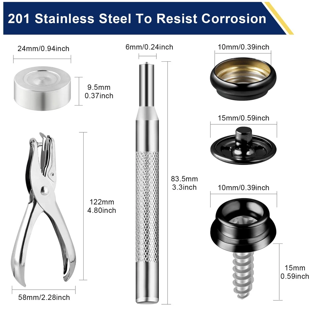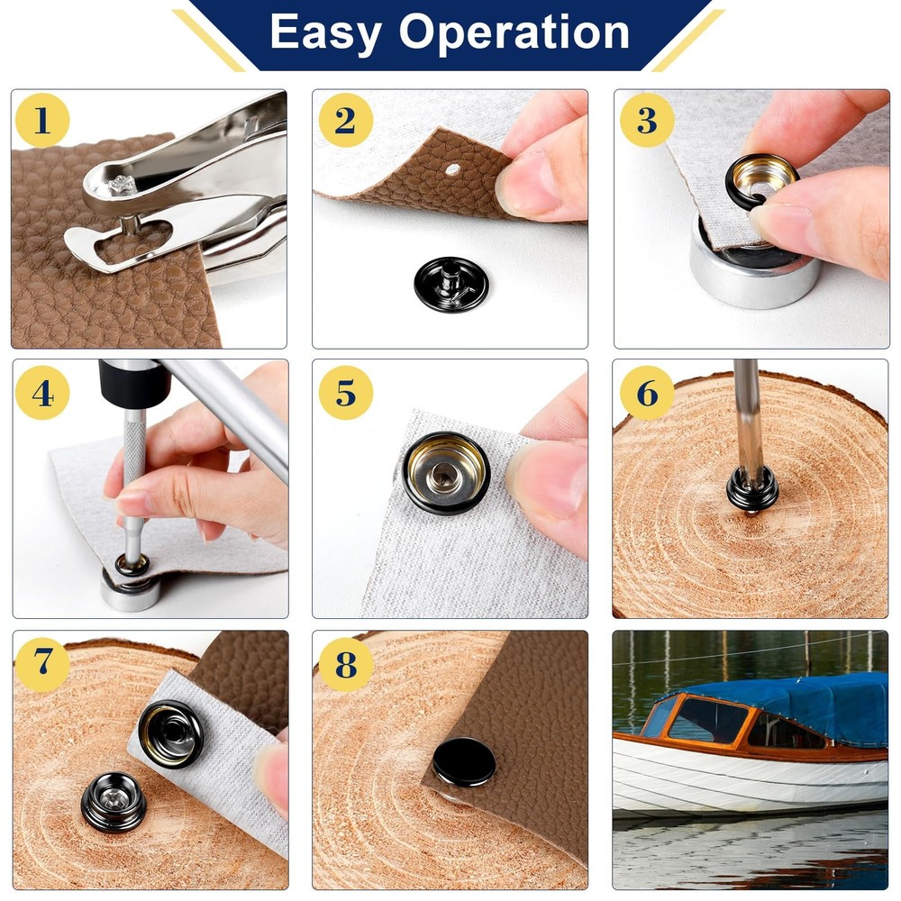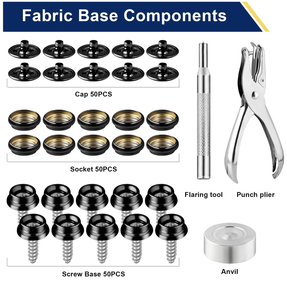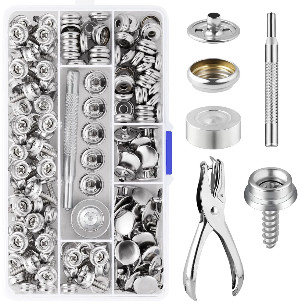 150pc Fastener Button Snap Press Stud Kit Stainless Steel Marine Boat Canvas Set 【Package Includes】: Convenient snap fasteners kit total 155 pieces, the kit comprises 50 screws, 50 sockets, 50 decorative caps, 1 hole puncher and 2 retainer tools, ensuring a safe and stylish snap application. Perfect for repairing or adding snaps to clothing, bags, and more. As well, lightweight design snap button repair kit come with a clear plastic case and on the go storage bag for easy sorting and carrying. 【Stellar Quality】: Our button snap kit crafted from 100% brand new marine grade materials for reliable performance in marine environments, these marine grade snaps are rust-resistant and built to last. These robust snaps are forged with marine grade stainless steel, offering exceptional rust and corrosion resistance. 【Smooth Operation】: The snap kit easy to install with fabric base components, no sewing required for a safe button snap. Simplify your sewing process with our easy-to-use button snap kit, perfect for beginners and experienced crafters alike. Can be easily attached to screws or cloths, ensuring a robust attachment suitable for hard apparent. The heavy-duty construction of the clips ensures that they remain securely fastened after years of use. 【Safe and Secure】: Easily attach and detach fabrics with our button snap kit, providing a convenient way to secure materials. Keep your belongings safe and secure with our snap fasteners kit. The heavy-duty construction of our snap fasteners guarantees a strong and steady hold, featuring metal snaps that exceptional action and retention. 【Widely Used】: These robust fasteners are in a kind of applications, including canvas, tarpaulins, tents, awnings, apparel, leather goods, and furniture. They provide a secure attachment that can be easily affixed to different surfaces, making them an ideal choice for both indoor and outdoor environments. The kit is particularly well-suited for snap tool users and fabric stores looking to add a touch of convenience and reliability to their projects. Hicdaw 155 PCS Snap Fasteners Kit Stainless Steel Snaps Marine Fabric Base Components Button Snap Kit With 2 Retainer Tools for DIY, Boat Canvas, Leather Shipping We offer FREE shipping on all orders! We ship within Three business days of payment, usually sooner. We use a selection of shipping services such as UPS, FedEx, USPS etc. We only ship to the lower 48 states, no APO/FPO addresses or PO Boxes allowed. Local pickups and combined shipping options are not provided at this time. Return You can return a product for up to 30 days from the date you purchased it. Any product you return must be in the same condition you received it and in the original packaging. Please keep the receipt. Payment We accept payment by any of the following methods: PayPal Please pay as soon as possible after winning an auction, as that will allow us to post your item to you sooner! Feedback Customer satisfaction is very important to us. If you have any problem with your order, please contact us and we will do our best to make you satisfied. Contact Us If you have any queries, please contact us via ebay. We usually respond within 24 hours on weekdays. Please visit our eBay store to check out other items for sale! Thank you for shopping at our store.
