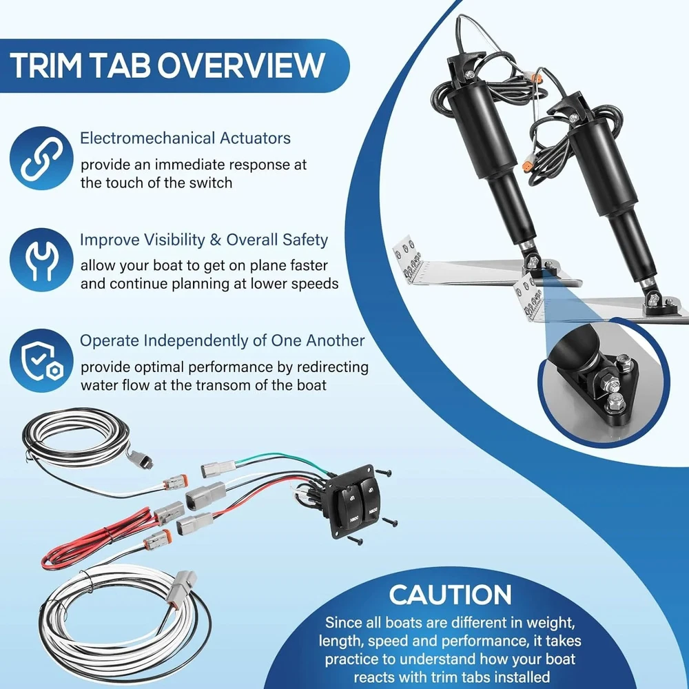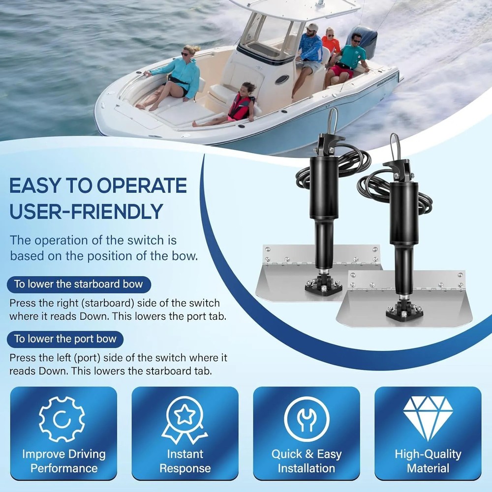 Description Feature 【Smoother, Drier, Faster, Safer】15101-104 Trim Tabs operate independently of each other to provide optimal performance by redirecting water flow at the transom of the boat. Designed to improve the overall attitude of the boat, which improved driving performance, reduced drag, increased speed and improved fuel efficiency. 15101-104 Standard Trim Tab Kit 9" x 12" 12V with Double Rocker Switch 16-25ft Description Feature 【Smoother, Drier, Faster, Safer】 15101-104 Trim Tabs operate independently of each other to provide optimal performance by redirecting water flow at the transom of the boat. Designed to improve the overall attitude of the boat, which improved driving performance, reduced drag, increased speed and improved fuel efficiency. 【Easy To Operate, Instant Response】 The actuators are electromechanical and respond immediately when the switch is touched, allowing for precise control. The switch is based on the bow position, the left side of the switch controls the starboard tab, and the right side of the switch controls the port tab. 【Safety Instruction】 Recommended boat size 16' - 25'. Since all boats have different weights, lengths, speeds, and performance, it takes practice to understand how a boat will react with a trim tab installed. When making adjustments with the trim tabs, use short momentary taps of the switch. 【Professionally Manufactured】 Size 9"L x 12"W, minimum transom height 14". Blades are constructed of 12 gauge, 304 stainless steel with a 5/8" flared trailing edge. 12-Volt actuators 2 with 6 ft leads. 20 ft actuator extension harnesses 2 with waterproof plug-and-play Deutsch connectors. Comes with stainless steel mounting hardware and installation instructions to help you install easily. 【Satisfaction Guarantee】 We committed to providing customers with a good product experience, if you are not satisfied with our products, simply return it for a full refund in 30 days. We support 12 months’ Warranty. Item Specifics Brand LUAUTO Type Standard Trim Tab Kit Unit Type ft Manufacturer Warranty 1 Year Compatible Model 16-25ft MPN YK-15101-104 OEM 15101-104 Size 9" x 12" Fitment Double Rocker Switch 16-25ft Custom Bundle No Volt 12V Non-Domestic Product No Payment 1. Payment methods accepted: Payoneer . Our Payoneer account allows you to pay by credit card, debit card and your paypal balance. 2. We ship items to Your Ebay address .Please make sure your Ebay address is correct before you pay, cause it cannot be changed once the order shipped out. 1. All major credit cards are accepted through our secure payment processor Paypal. 2. We ship items to Your Paypal address .Please make sure your Paypal address is correct before you pay, cause it cannot be changed once the order shipped out. 1. All major credit cards are accepted through our secure payment processor Paypal. 2. We ship items to Your Paypal address .Please make sure your Paypal address is correct before you pay, cause it cannot be changed once the order shipped out. 1. All major credit cards are accepted through our secure payment processor Paypal. 2. We ship items to Your Paypal address .Please make sure your Paypal address is correct before you pay, cause it cannot be changed once the order shipped out. 1. All major credit cards are accepted through our secure payment processor Paypal. 2. We ship items to Your Paypal address .Please make sure your Paypal address is correct before you pay, cause it cannot be changed once the order shipped out. 1. All major credit cards are accepted through our secure payment processor Paypal. 2. We ship items to Your Paypal address .Please make sure your Paypal address is correct before you pay, cause it cannot be changed once the order shipped out. 1. All major credit cards are accepted through our secure payment processor Paypal. 2. We ship items to Your Paypal address .Please make sure your Paypal address is correct before you pay, cause it cannot be changed once the order shipped out. 1. All major credit cards are accepted through our secure payment processor Paypal. 2. We ship items to Your Paypal address .Please make sure your Paypal address is correct before you pay, cause it cannot be changed once the order shipped out.v 1. All major credit cards are accepted through our secure payment processor Paypal. 2. We ship items to Your Paypal address .Please make sure your Paypal address is correct before you pay, cause it cannot be changed once the order shipped out. 1. All major credit cards are accepted through our secure payment processor Paypal. 2. We ship items to Your Paypal address .Please make sure your Paypal address is correct before you pay, cause it cannot be changed once the order shipped out. 1. All major credit cards are accepted through our secure payment processor Paypal. 2. We ship items to Your Paypal address .Please make sure your Paypal address is correct before you pay, cause it cannot be changed once the order shipped out. 1. All major credit cards are accepted through our secure payment processor Paypal. 2. We ship items to Your Paypal address .Please make sure your Paypal address is correct before you pay, cause it cannot be changed once the order shipped out. 1. All major credit cards are accepted through our secure payment processor Paypal. 2. We ship items to Your Paypal address .Please make sure your Paypal address is correct before you pay, cause it cannot be changed once the order shipped out. Shiping 1. Item will be shipped out within 1-2 business day after clear payment received. 2. Please make sure shipping address on your Ebay account is correct & up-to-date. 3. All of our items are shipped from our warehouse. 4. Please feel free to contact us by email if you cannot get your order in time. Please read the shipment and payment detail carefully before you bid. Return 1. Return to us within 60 days from the delivery date for exchange or refund. Refund will be given as Money back or item exchange (buyer's 